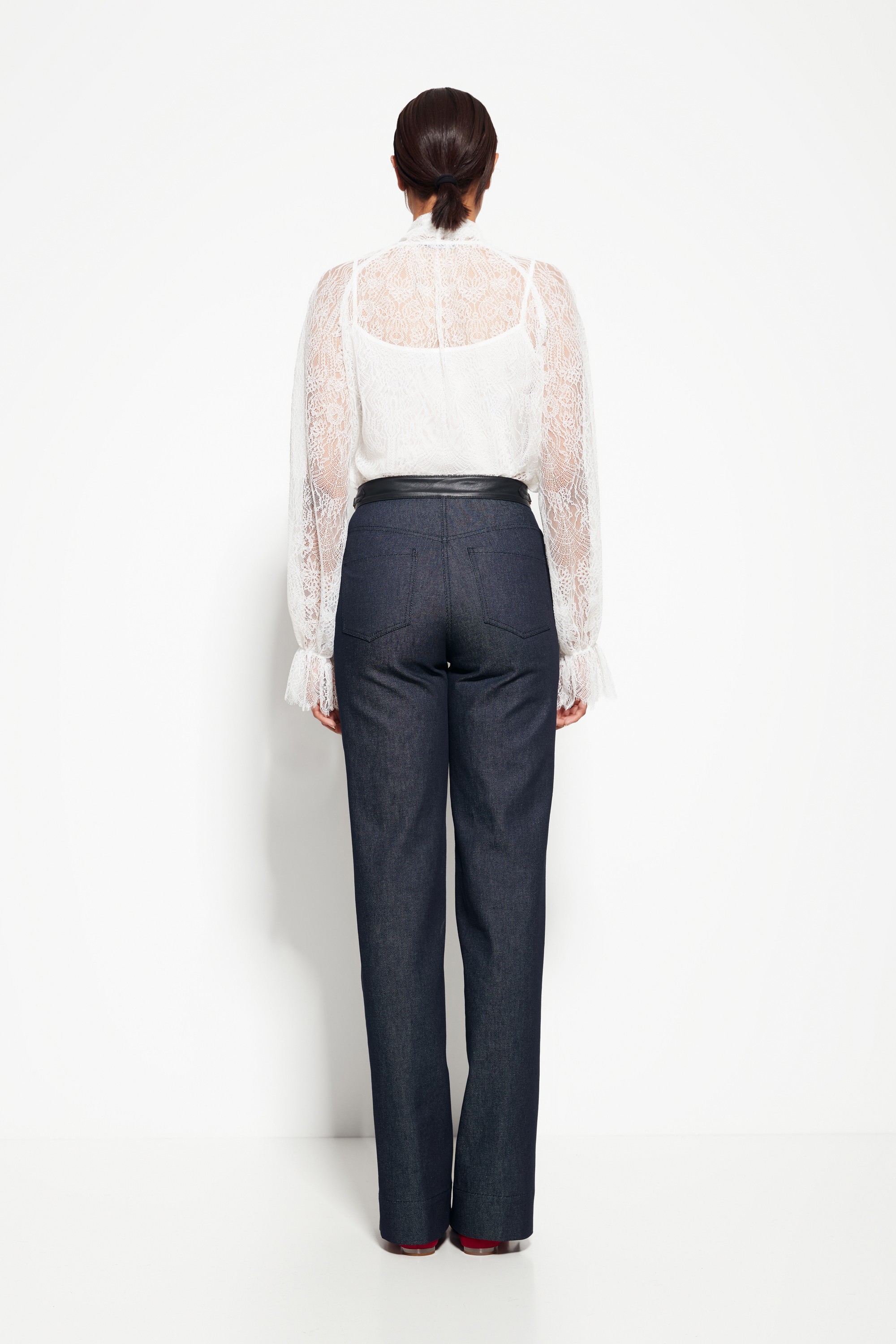 Модель из коллекции Party 2026 — джинсовые брюки с расклешёнными от колена штанинами и средней посадкой. Особое внимание привлекает декоративный пояс, который добавляет стильный акцент и подчёркивает талию. Брюки сочетают комфорт и элегантность, создавая эффектный образ для вечера или повседневного выхода.