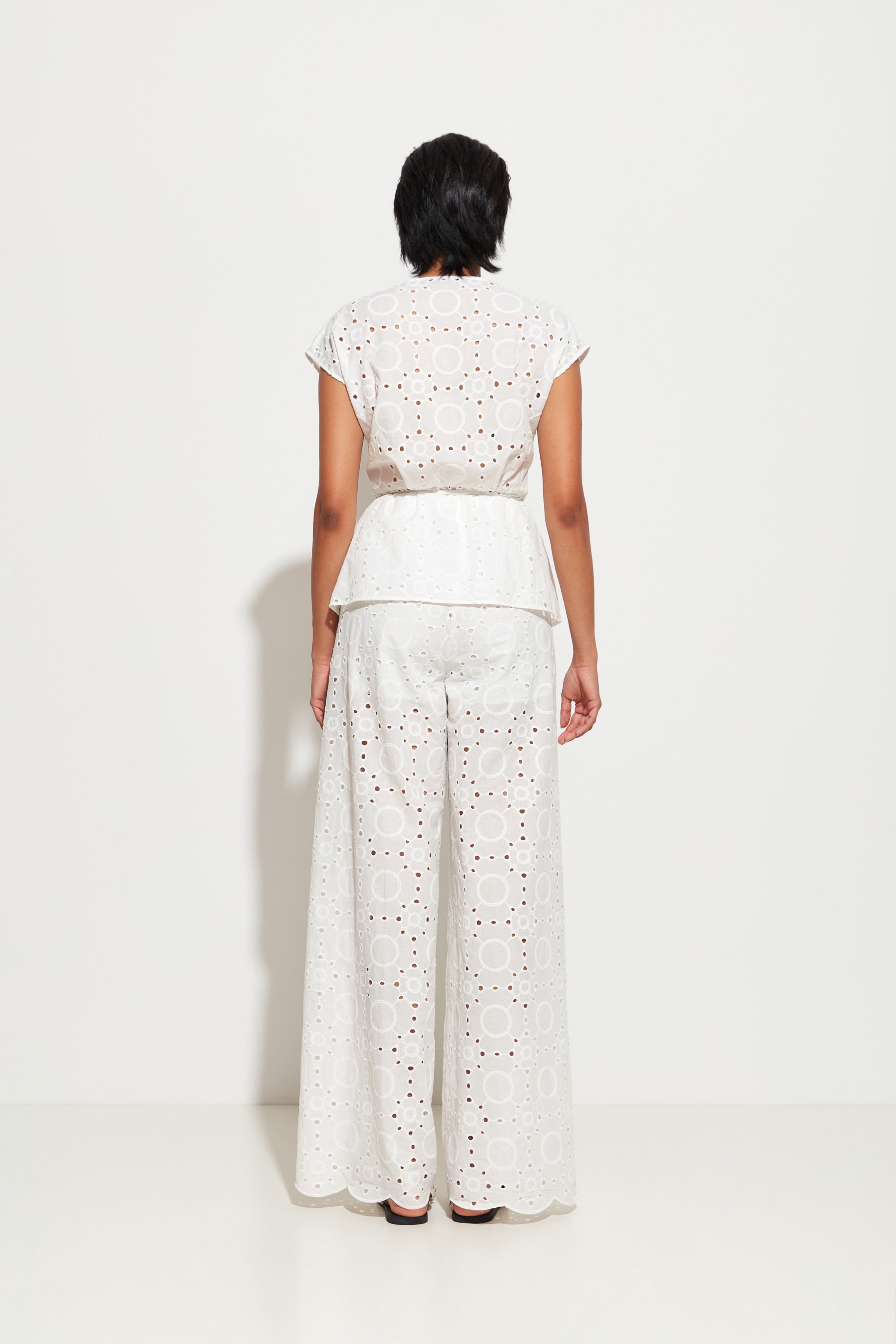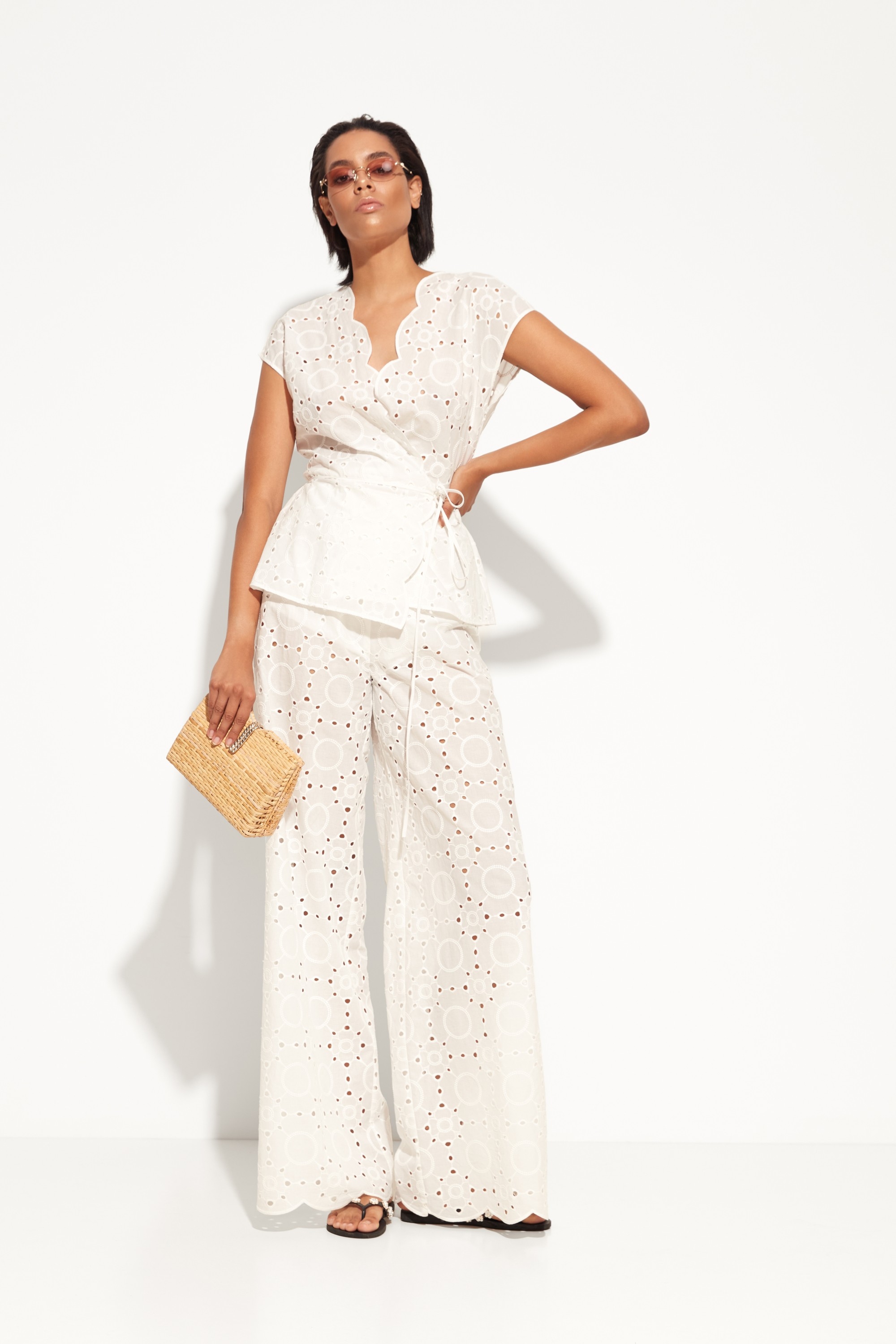 Брюки Lakbi 55596 с вышивкой ришелье и внутренними микро-шортиками — лёгкость, комфорт и уверенность в одном образе.