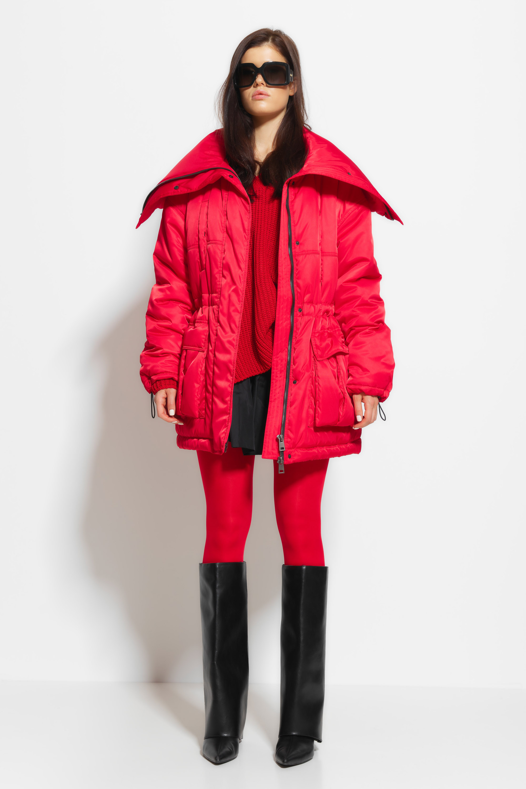 Состав: 100% полиэстер. Куртка на утепляющей прокладке Isosoft 150 г/м^2 (температурный режим от 0 градусов до -20 градусов). Широкий отложной воротник защищает от зимней непогоды. Объем талии регулируется при помощи резинки. Спереди накладные карманы с клапанами. Линия плеч спущена. Эффектная модель, которая идеально подойдет для создания образов и защитит от холода в зимний период.