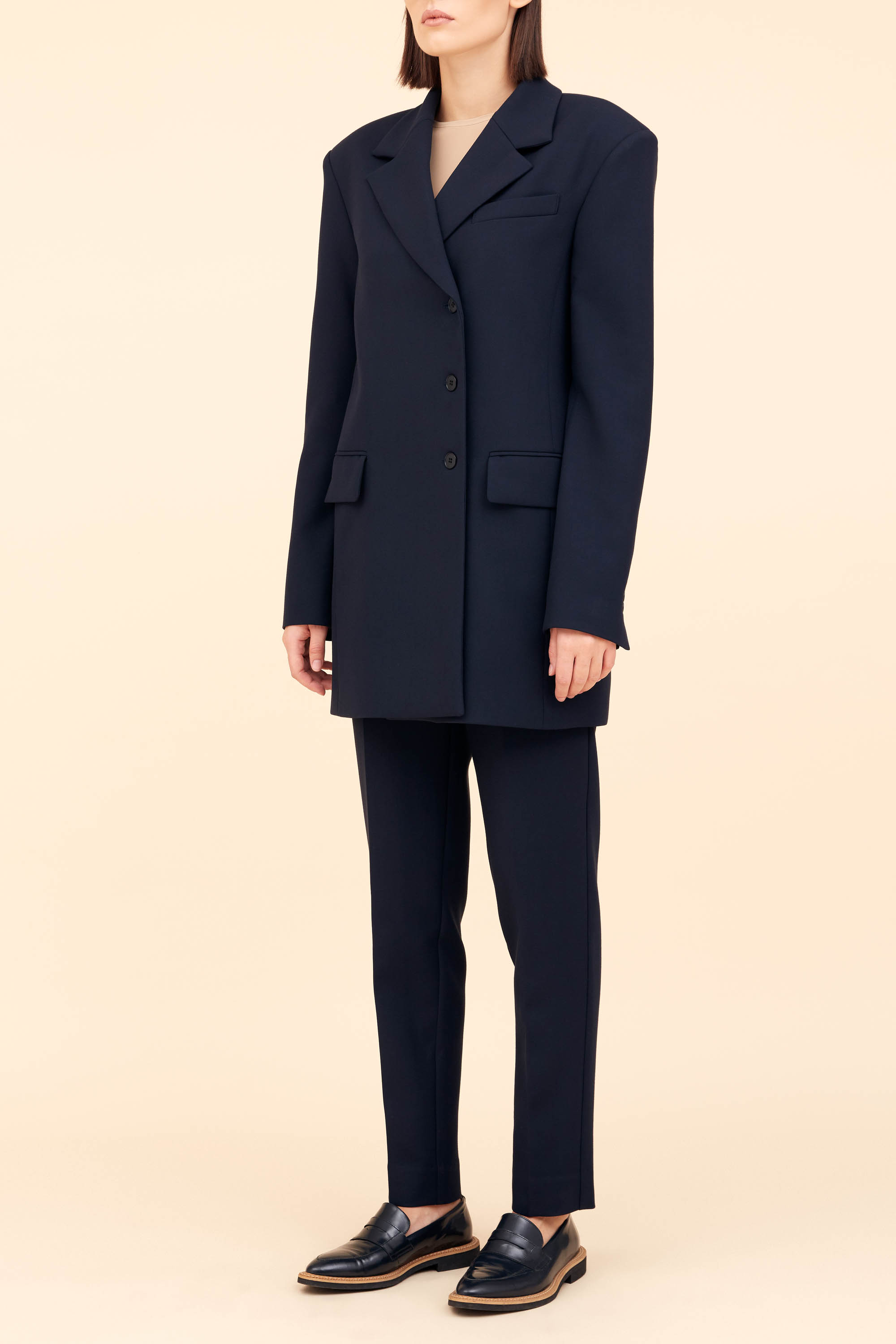 Жакет полуприлегающего силуэта из костюмной ткани длиной ниже линии бедер
