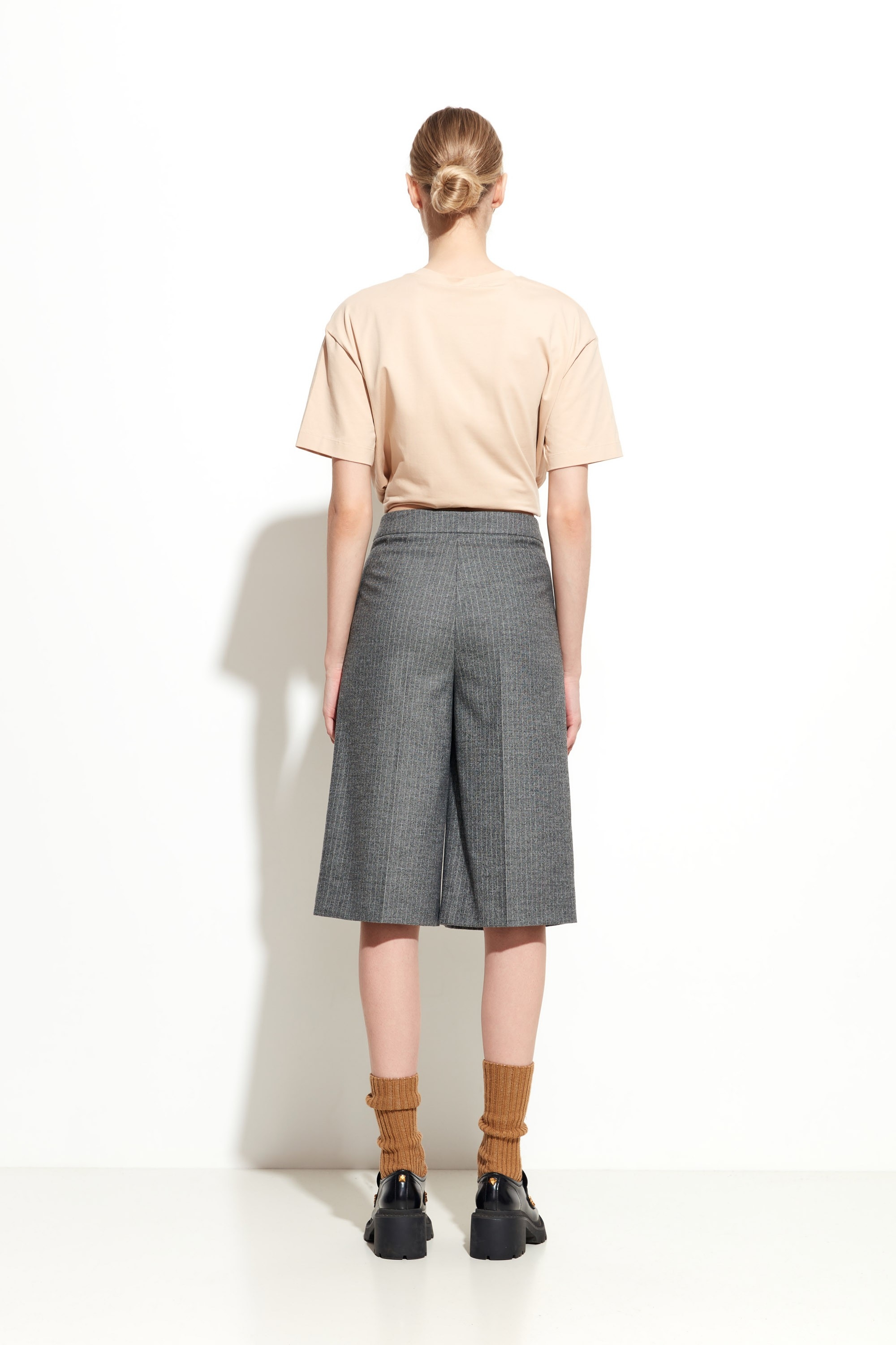Крой: классический средней длины бермудов — на уровне колена, прямой силуэт с аккуратной линией талии.