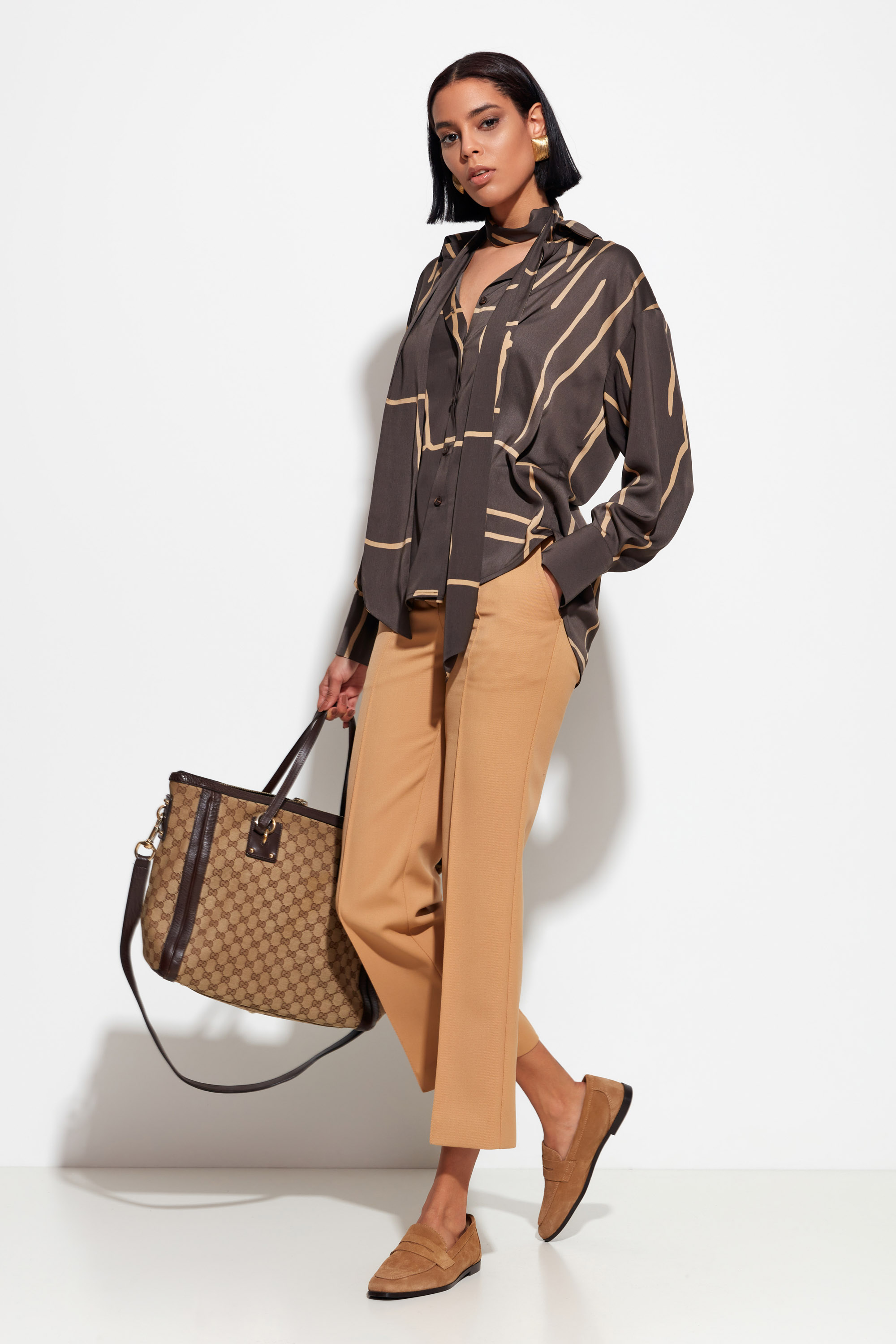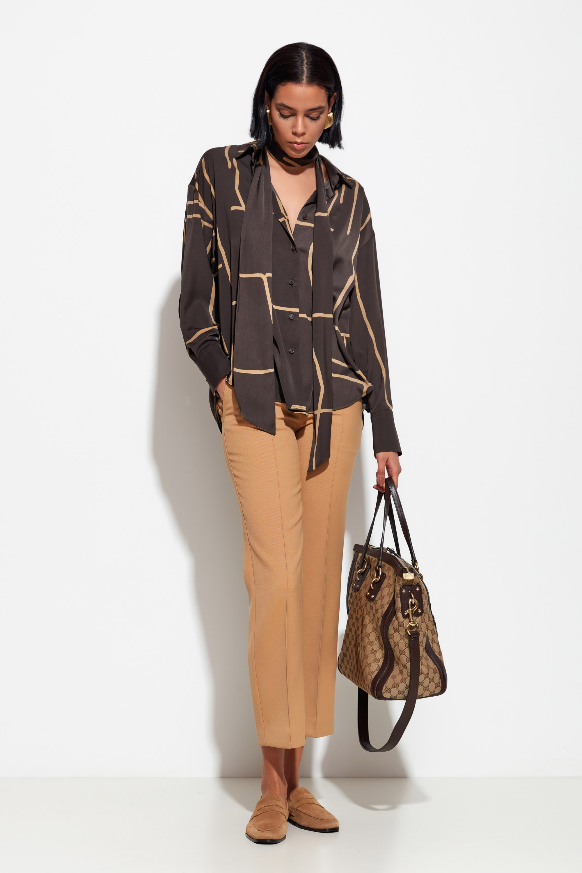 Принт: графичный геометрический узор — актуальный акцент, придающий образу ритм и характер.