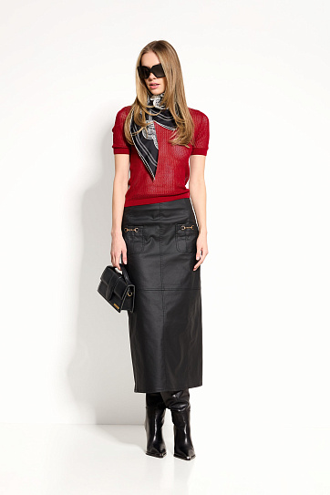 Блуза Lakbi 55305: эко-кожа, одно плечо — смелый акцент для вечернего образа.