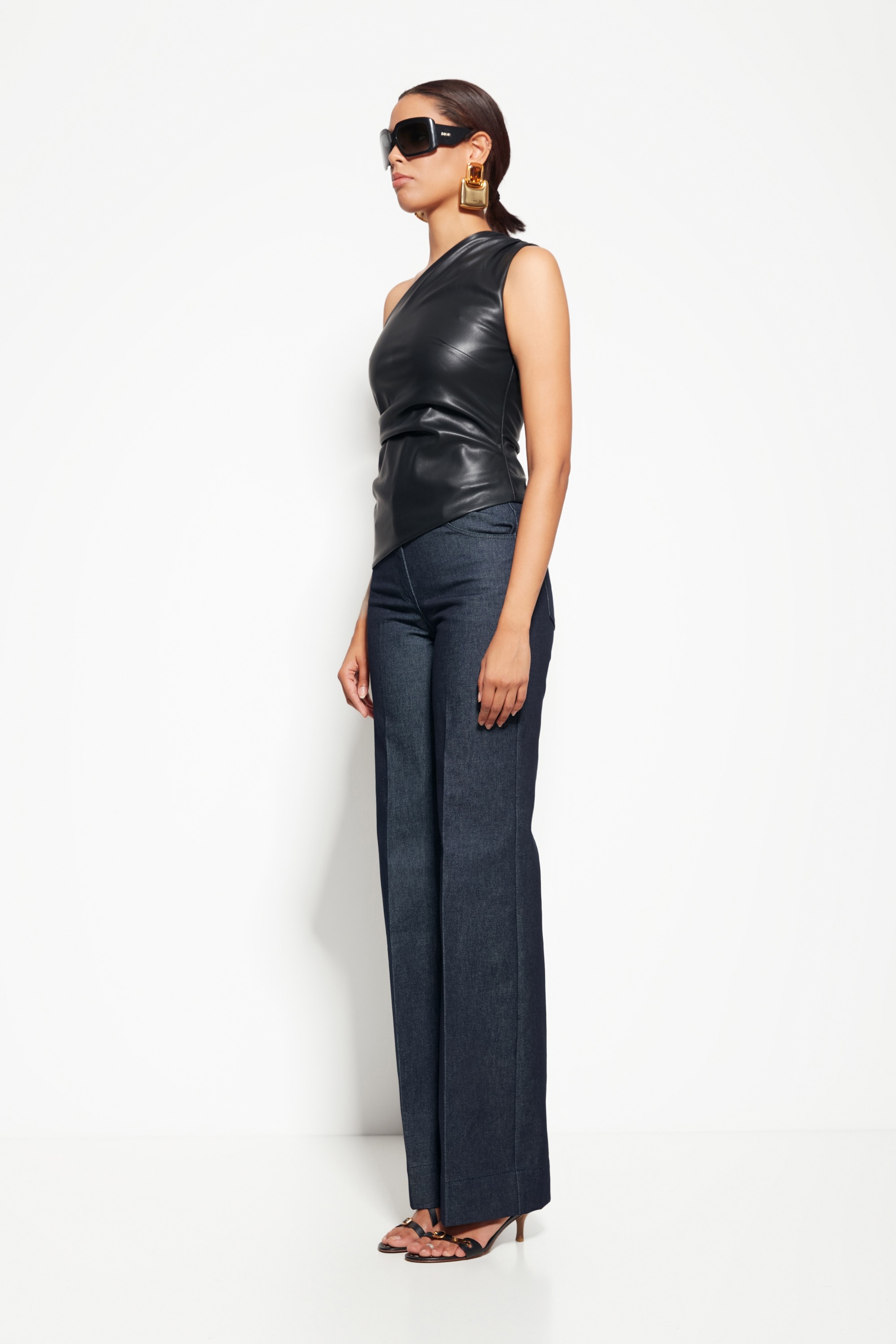 Блуза Lakbi 55305: эко-кожа, одно плечо — смелый акцент для вечернего образа.