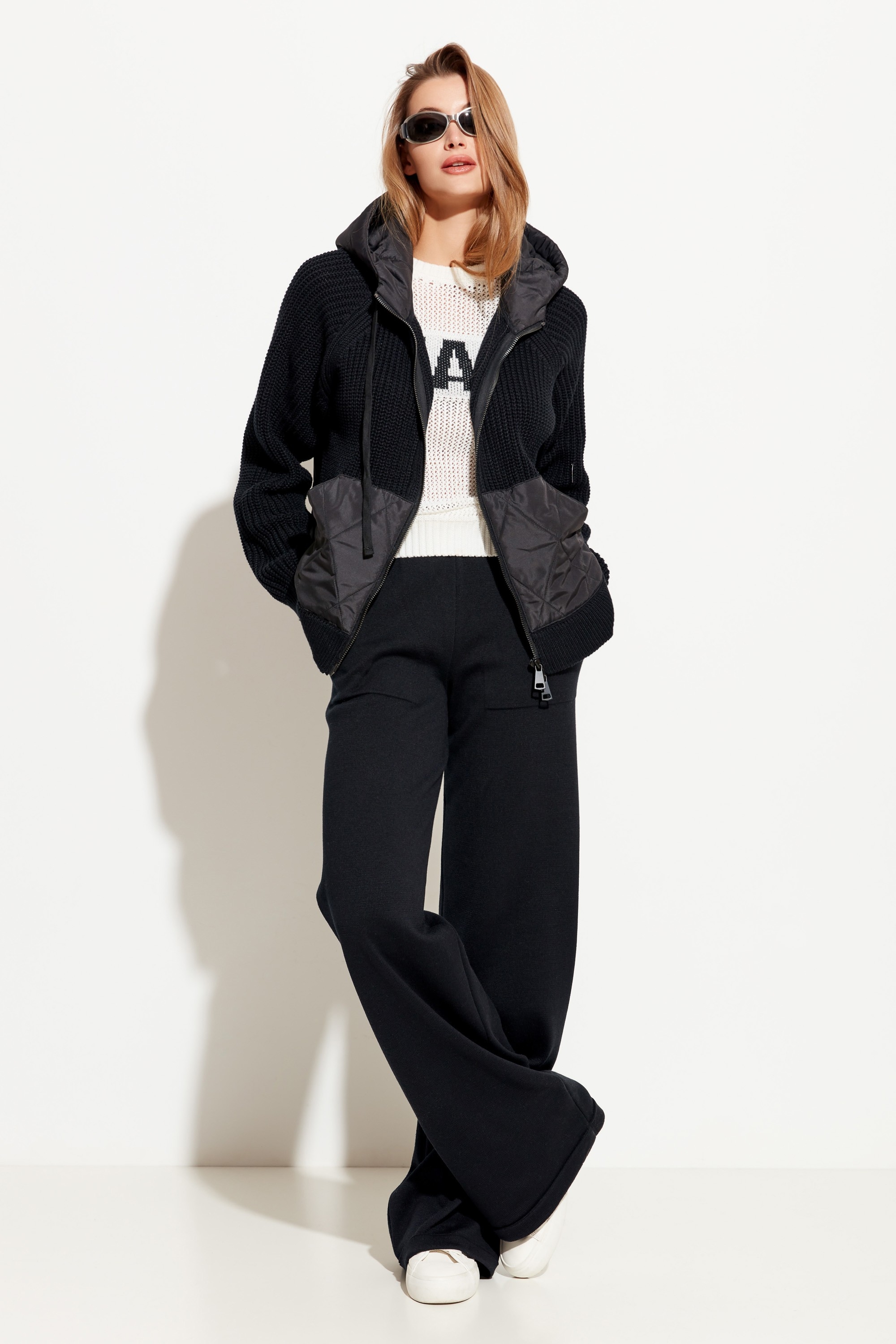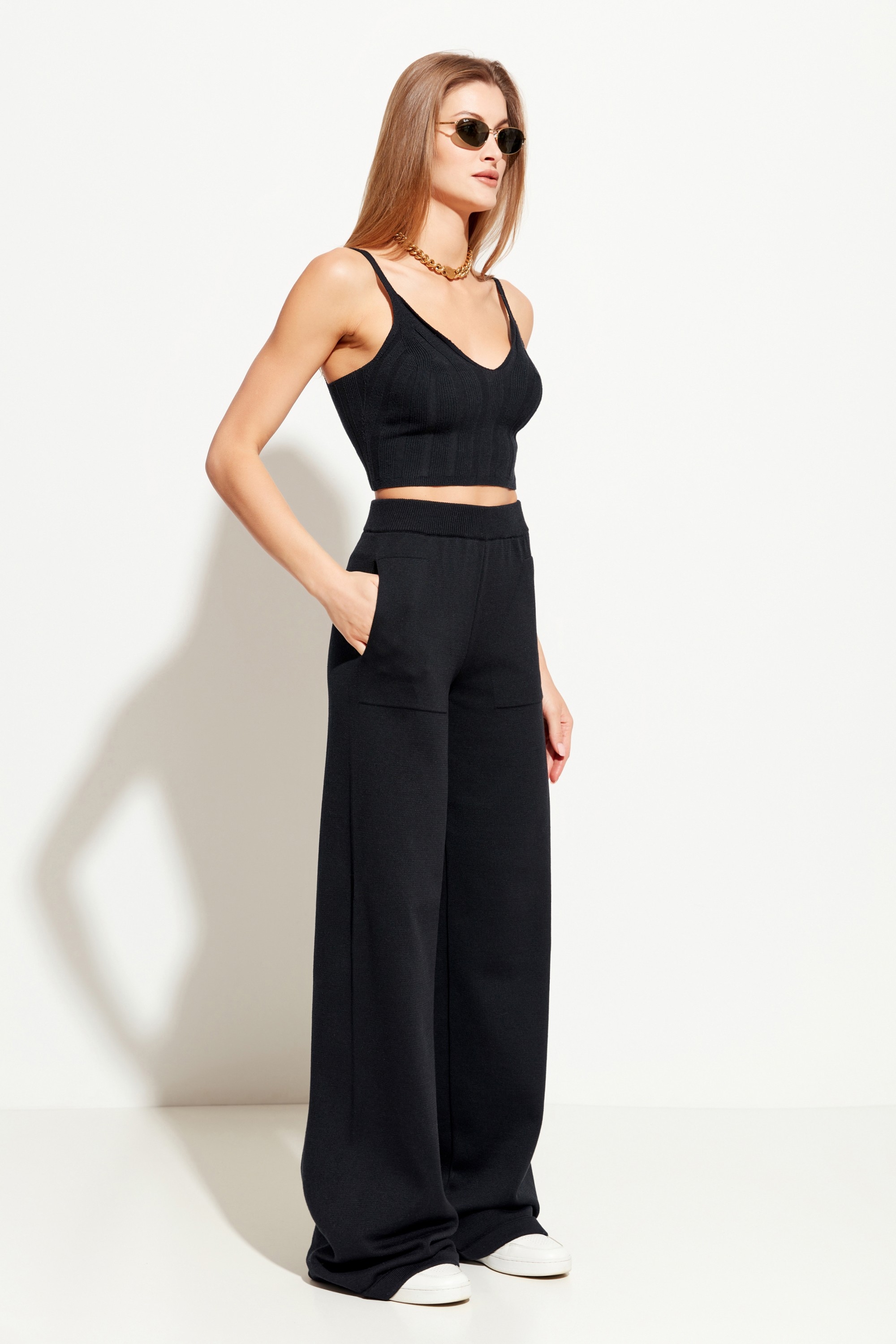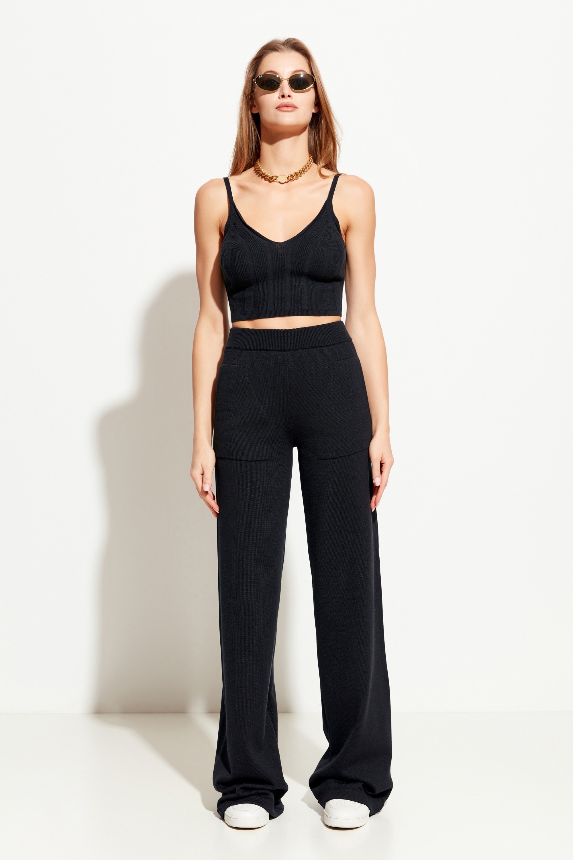 Состав: 50% хлопок, 50% ПАН. Брюки вязаные полуприлегающего силуэта, расширенные от линии бедер к низу. Посадка изделия высокая. Пояс на эластичной резинке, который обеспечивает комфортную посадку брюк. Спереди изделия удобные, вместительные карманы. Универсальная, теплая модель, которая подойдет к любому типу гардероба. Сочетается с обувью как на низкой платформе, так и на каблуке.