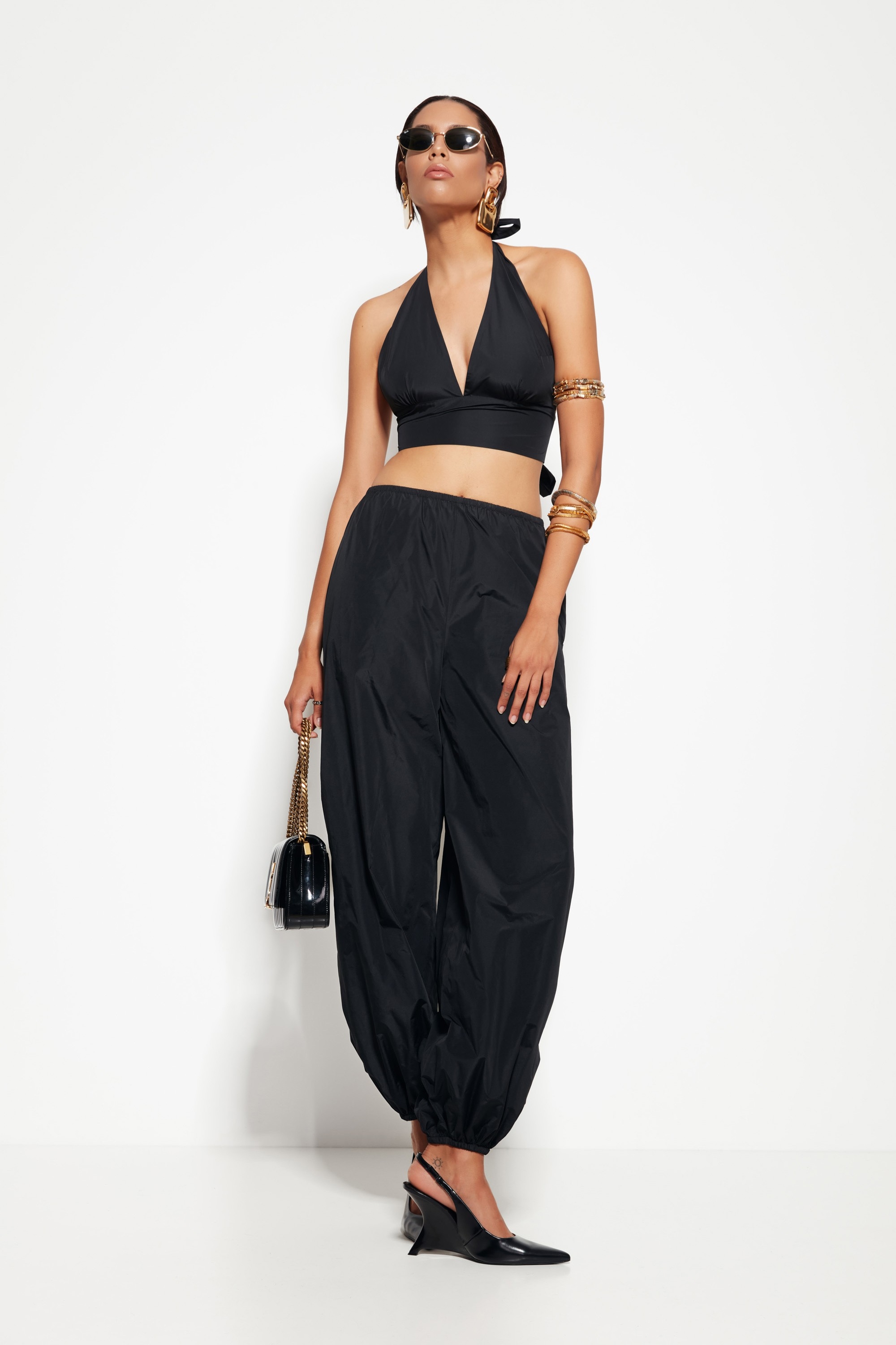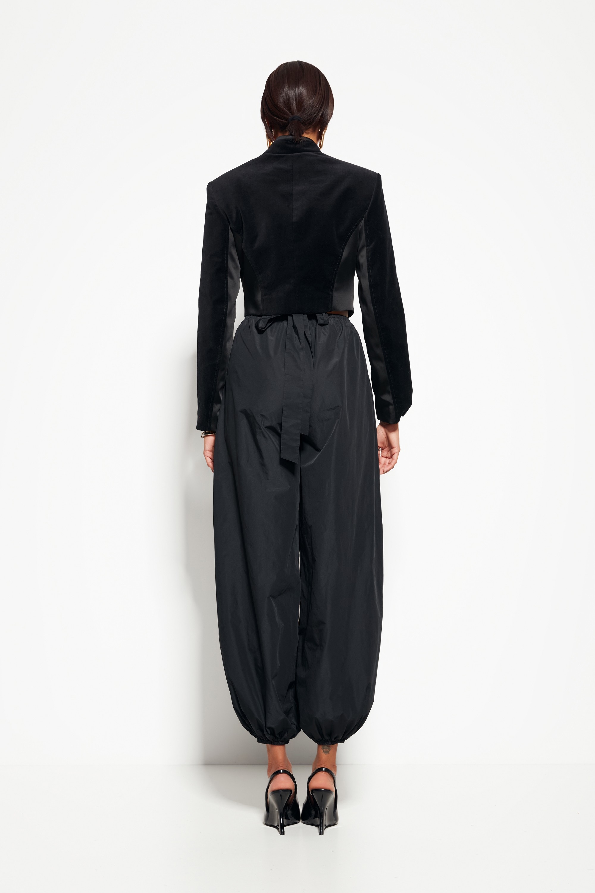 Фасон: «Аладины» — свободный верх и зауженные к низу брючины создают актуальный силуэт и ощущение лёгкости.