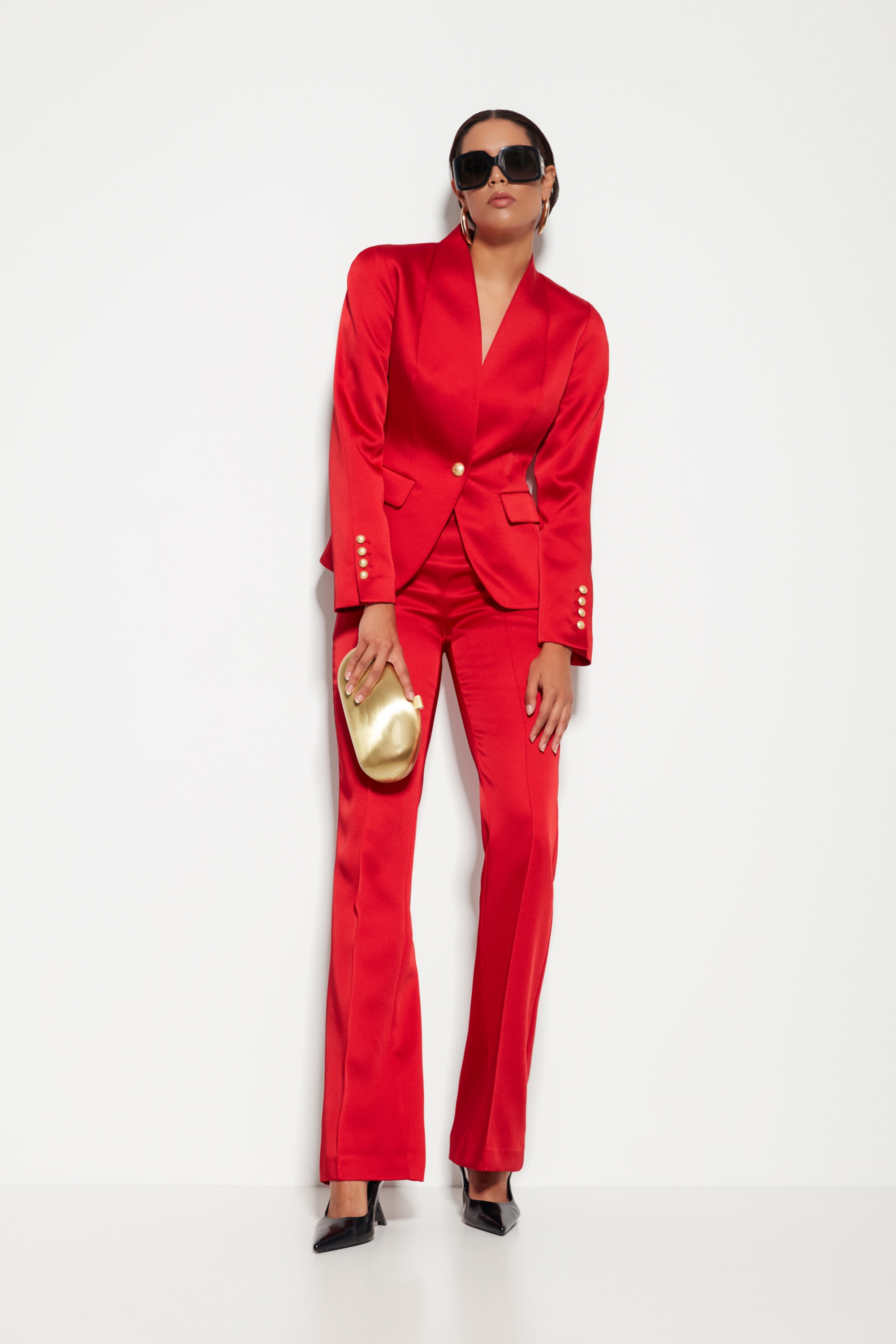 Модель из коллекции Party 2026 — брюки из ткани с лёгким блеском, создающие выразительный и современный образ.