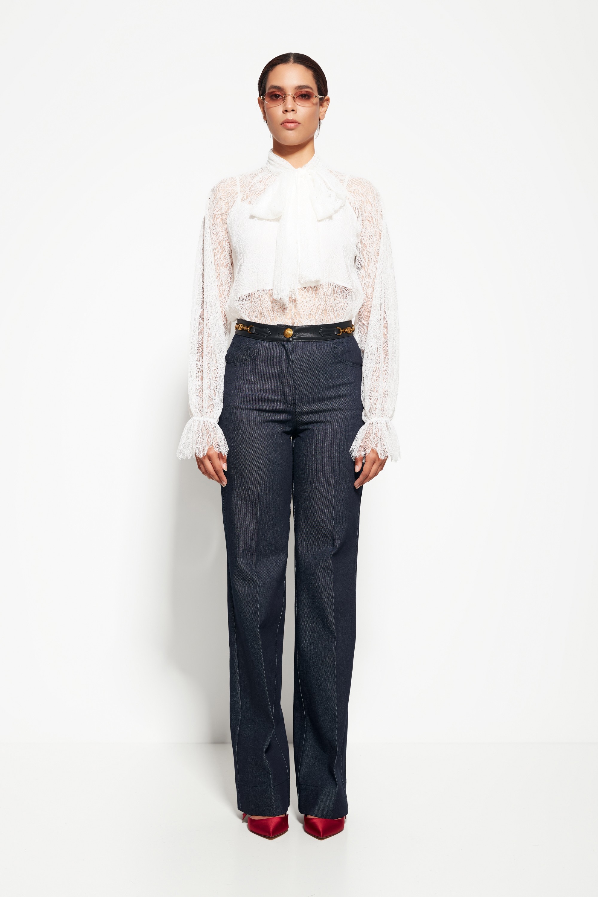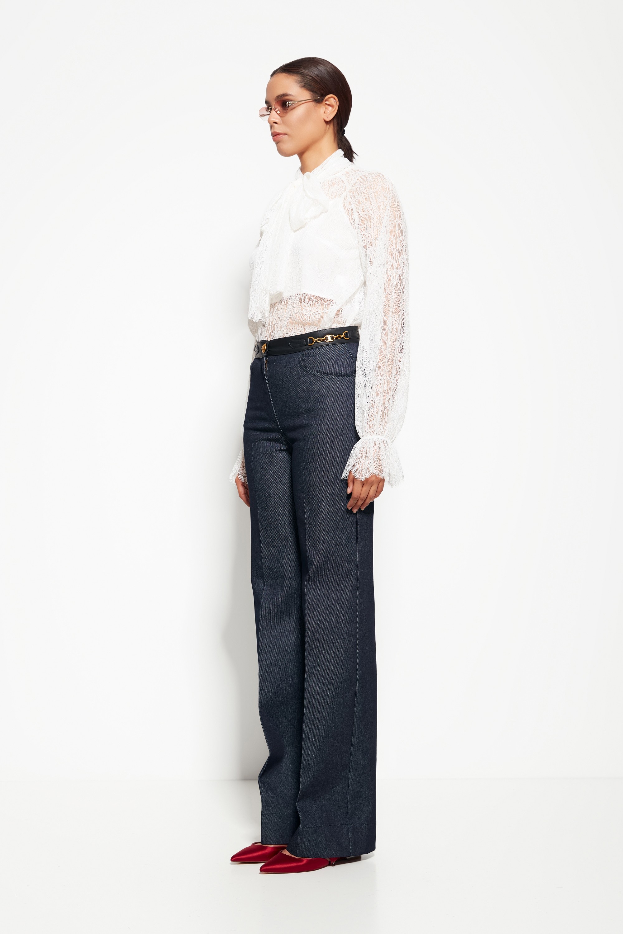 Модель из коллекции Party 2026 — джинсовые брюки с расклешёнными от колена штанинами и средней посадкой. Особое внимание привлекает декоративный пояс, который добавляет стильный акцент и подчёркивает талию. Брюки сочетают комфорт и элегантность, создавая эффектный образ для вечера или повседневного выхода.