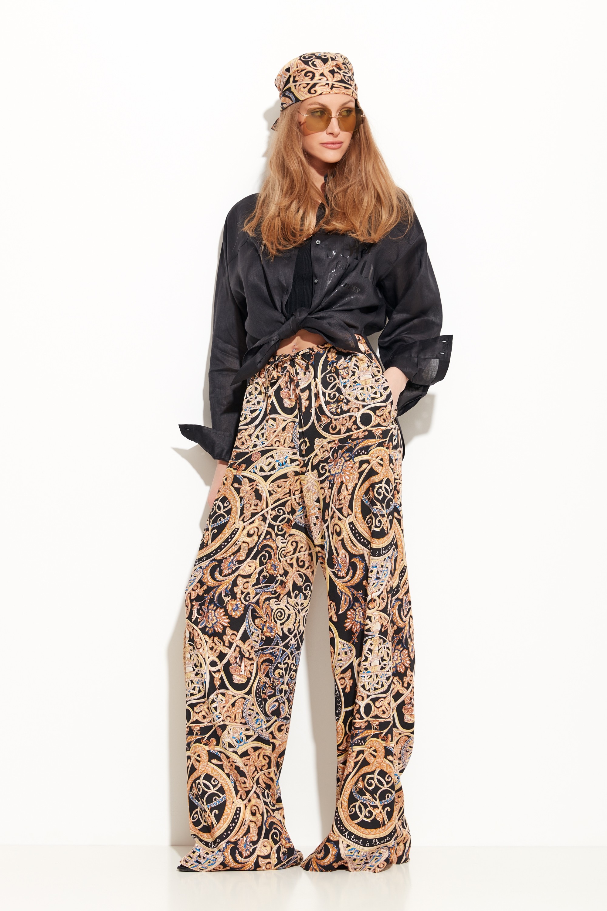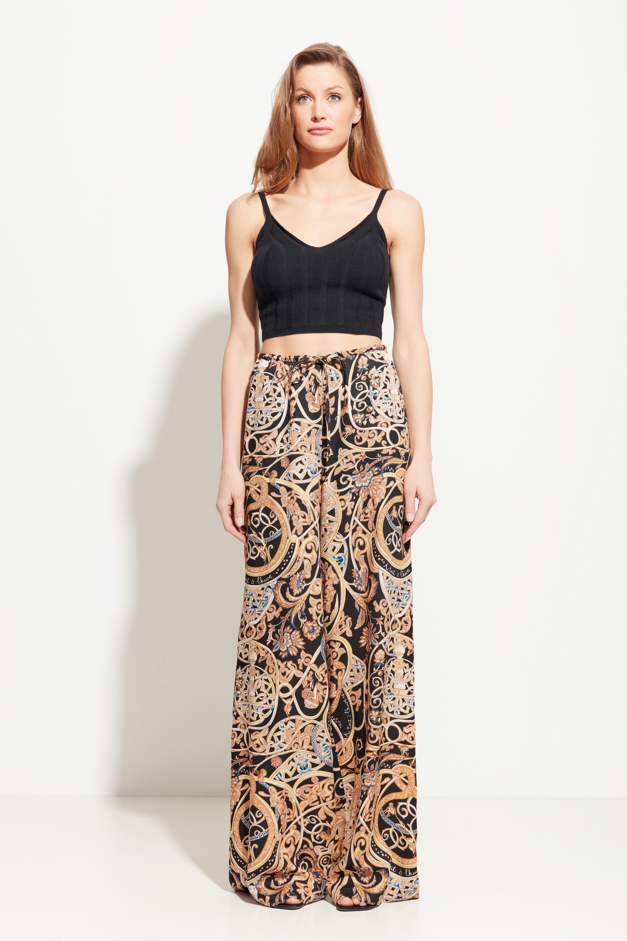 Брюки прямого кроя, расширенные от линии бедер к низу. Посадка изделия средняя. Пояс на эластичной резинке, которая обеспечивает комфортную посадку брюк. По бокам прорезные карманы. Трендовая расцветка и универсальный крой брюк позволяют создавать с ними образы в различных стилях и по любому случаю.