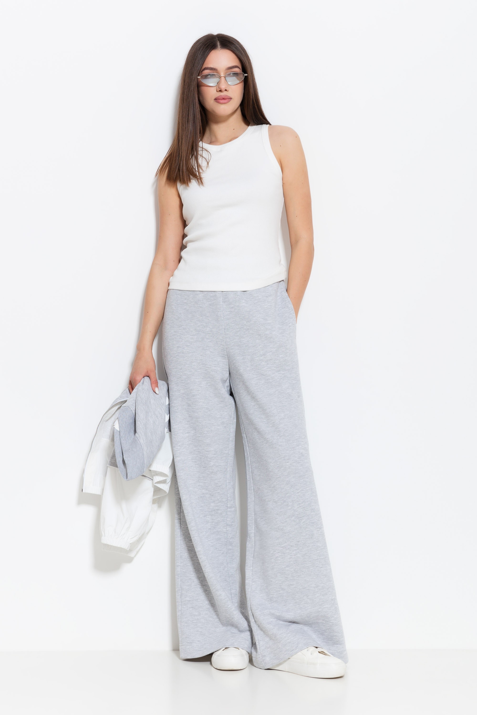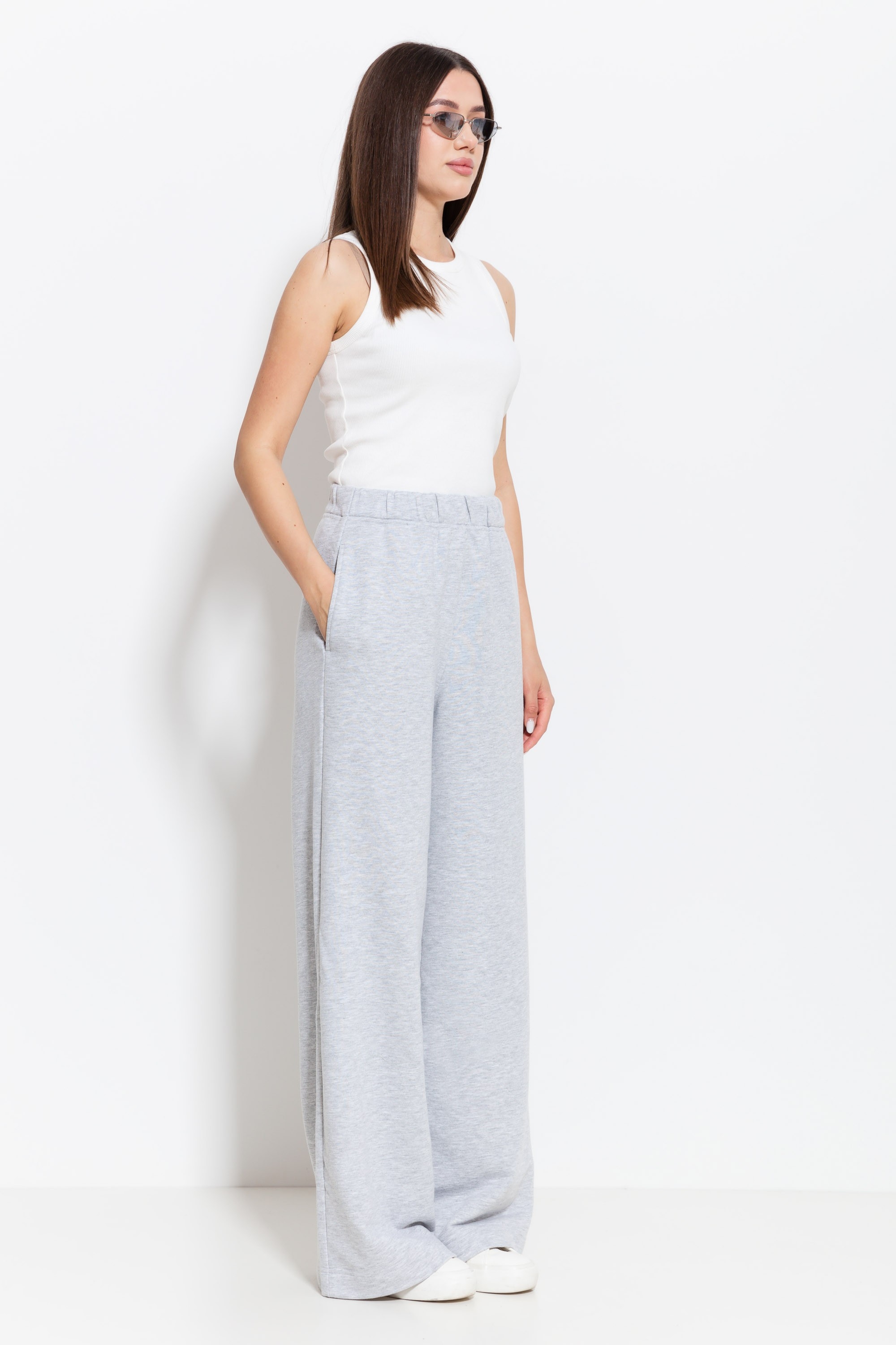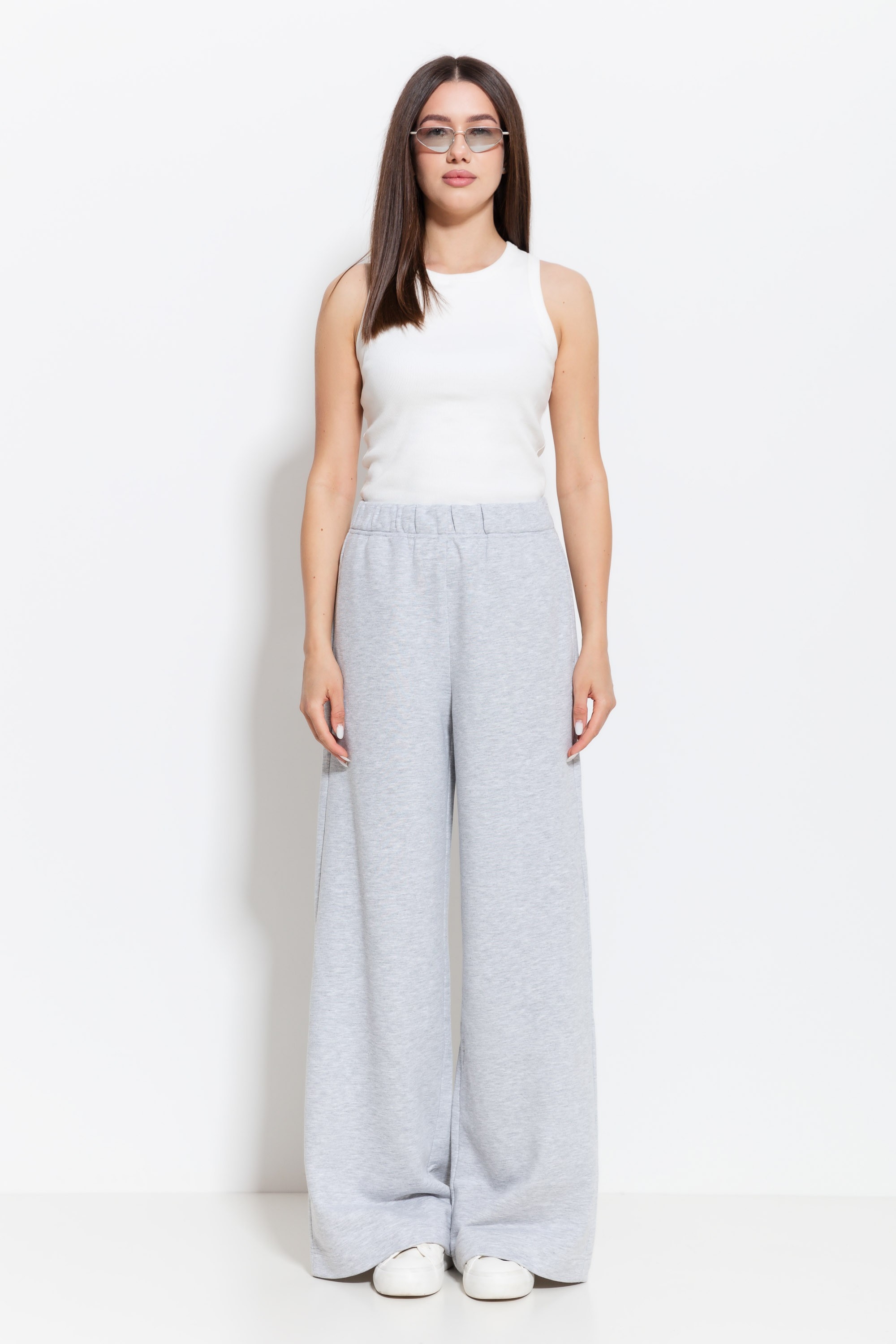 Брюки прямого кроя, расширенные ото линии бедер к низу. Посадка изделия средняя. Пояс на мягкой, эластичной резинке, которая обеспечивает комфортную посадку брюк. По бокам прорезные карманы. Базовая, универсальная модель, уоторая подойдет к любому типу гардероба и станет незаменимым помощником в создании ежедневных образов.