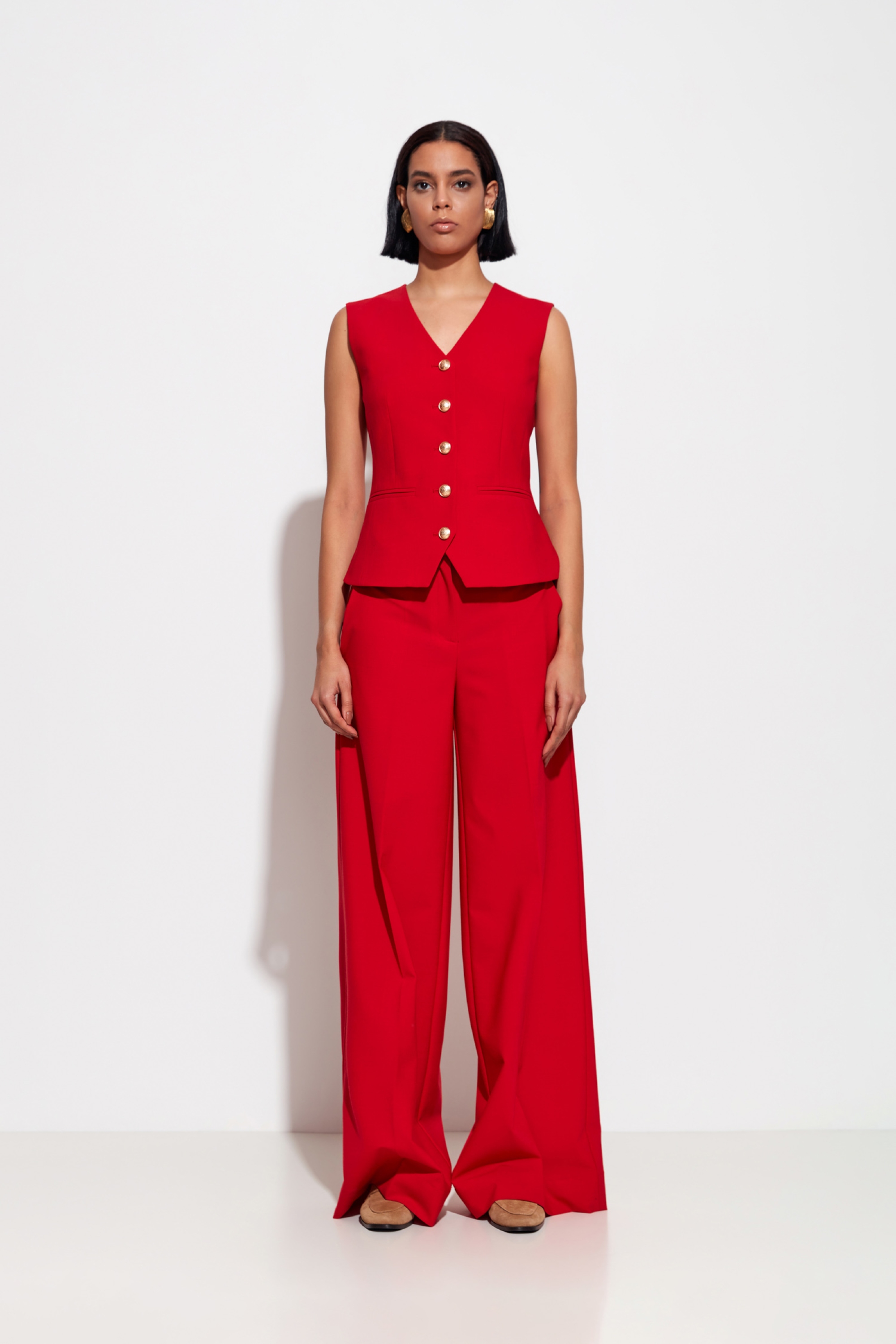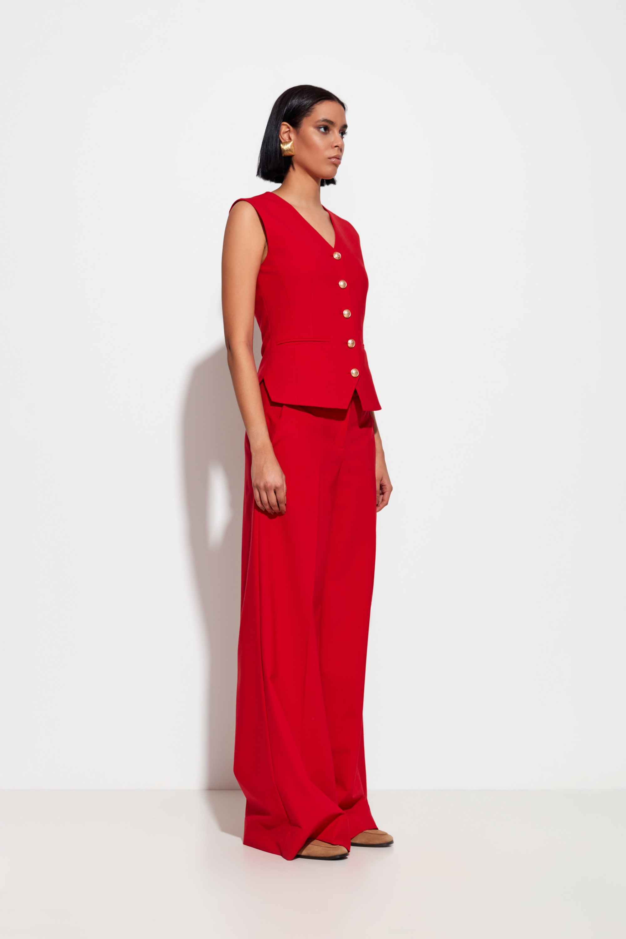 Материал: плотная, гладкая костюмная ткань с высоким содержанием шерсти — комфортна в носке, сохраняет форму, устойчива к износу.