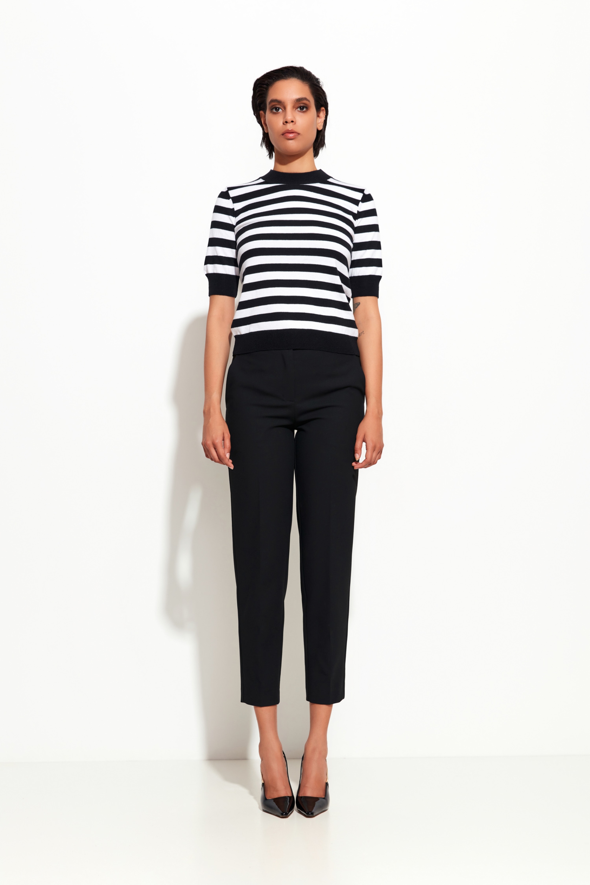 Джемпер Lakbi 55113 — стильная вязка и контрастная черно-белая полоска.
