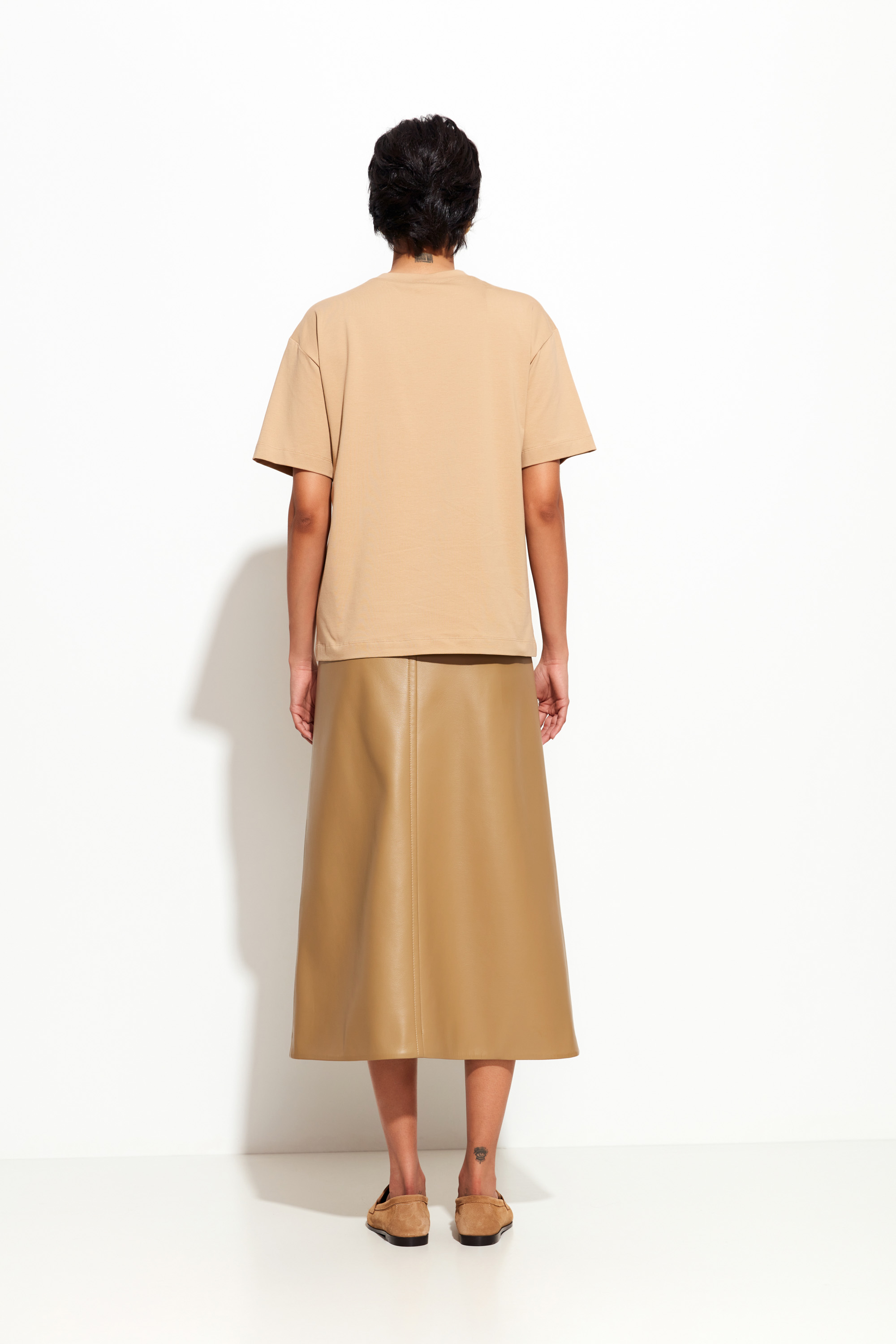 Детали: Круглый вырез горловины, спущенная линия плеч, минималистичный дизайн — элементы, придающие модели завершённый вид.