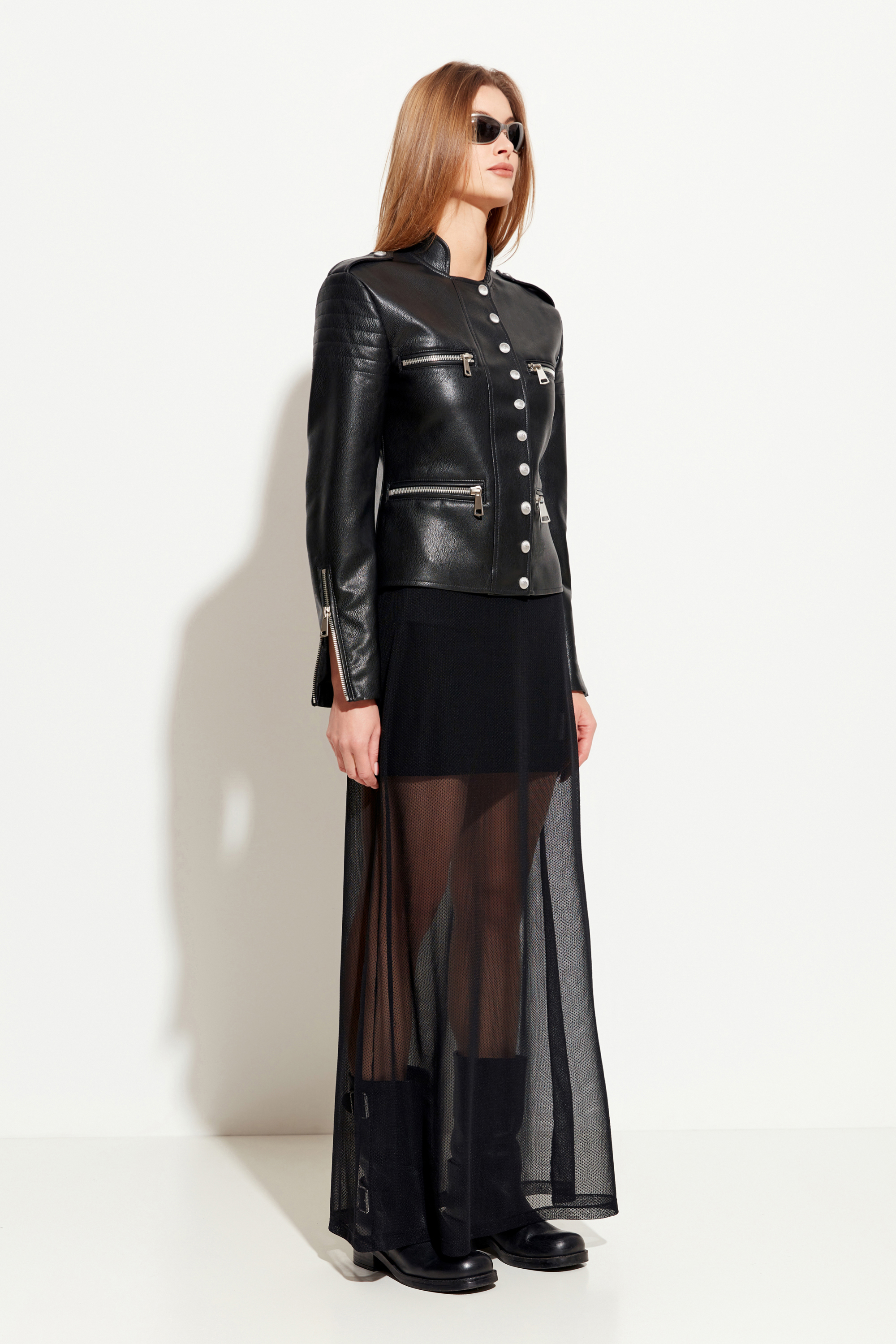 Состав: 50% вискоза, 50% полиэстер. Куртка из эко-кожи, длиной выше линии бедер. Полуприлегающий крой эффектно подчеркивает фигуру. Воротник стойка. Спереди прорезные карманы с акцентными молниями. Застегивается на металлические кнопки контрастного цвета. Стильная модель для создания эффектных весенних аутфитов. Ширина изделия по линии груди 47.4(42р) 49.2(44р) 51.1(46р) 53.0(48р) Ширина изделия по линии талии 41.6(42р) 43.5(44р) 45.5(46р) 47.5(48р) Ширина изделия по низу 47.9(42р) 49.8(44р) 51.8(46р) 53.8(48р) Ширина спинки 41.6(42р) 42.4(44р) 43.2(46р) 44.0(48р) Ширина плеча 14.9(42р) 15.1(44р) 15.3(46р) 15.5(48р) Длина изделия 55.3(42р) 55.4(44р) 55.5(46р) 55.6(48р) Длина рукава 62.9(42р) 62.9(44р) 62.9(46р) 62.9(48р)