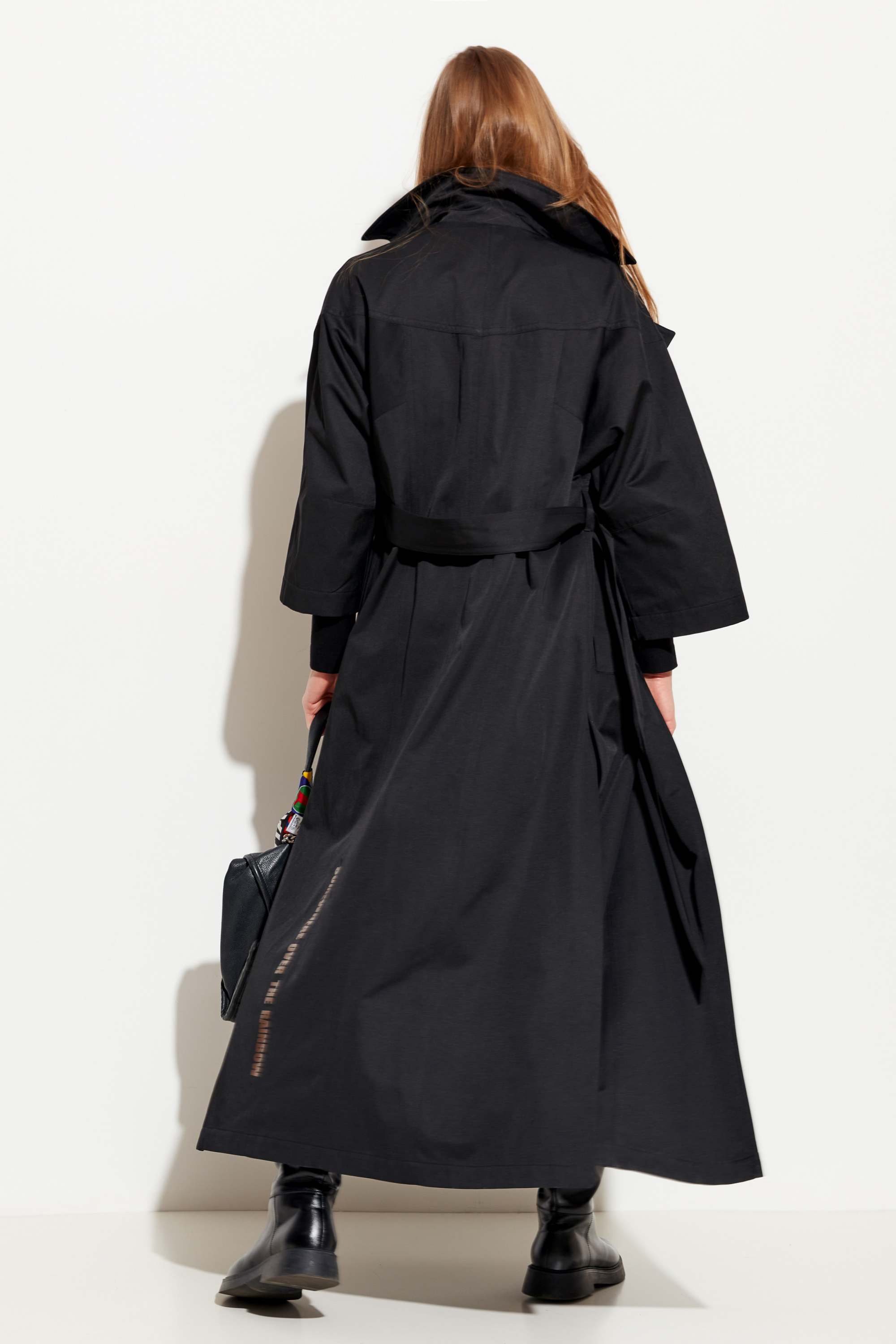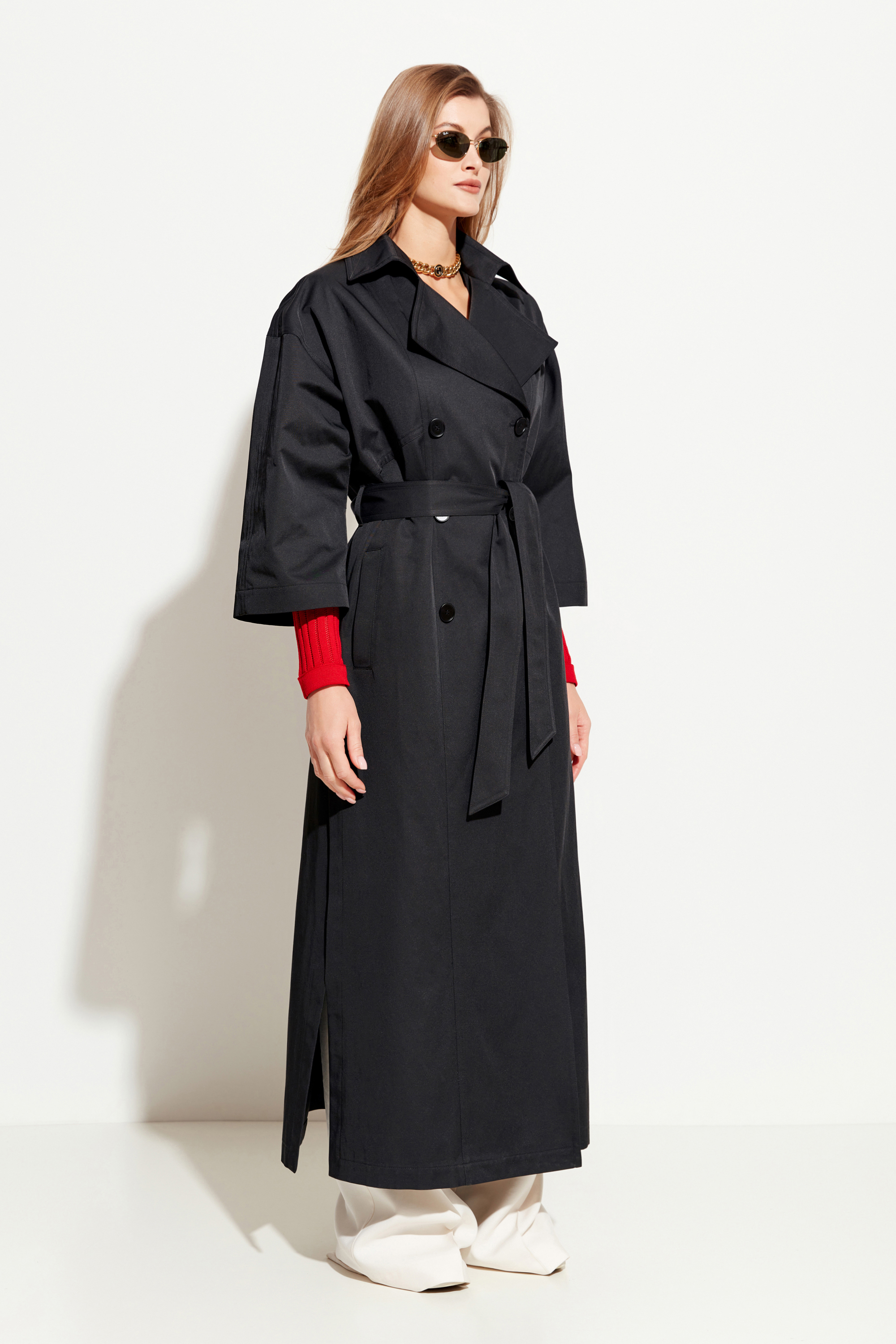 Состав: 48% ПЭ, 52% хлопок. Плащ А-образного силуэта, длиной ниже линии колен. Воротник стояче-отложной. Линия плеч спущена. Рукава укороченные, широкие. По бокам прорезные карманы. Объем изделия регулируется при помощи широкого пояса из аналогичной ткани. Задняя часть плаща декорирована принтом параллельно рельефному шву. Стильная, универсальная модель для создания ежедневных эффектных образов. Ширина изделия по линии груди 53.1(42р) 55.1(44р) 57.0(46р) 58.9(48р) Ширина изделия по бедрам 57.8(42р) 59.8(44р) 61.7(46р) 63.6 (48р) Ширина плеча 23.9(42р) 24.5(44р) 25.1(46р) 25.7(48р) Длина изделия 135.7(42р) 135.8(44р) 135.9(46р) 136.0(48р) Длина рукава 43.1(42р) 42.7(44р) 42.3(46р) 41.9(48р)