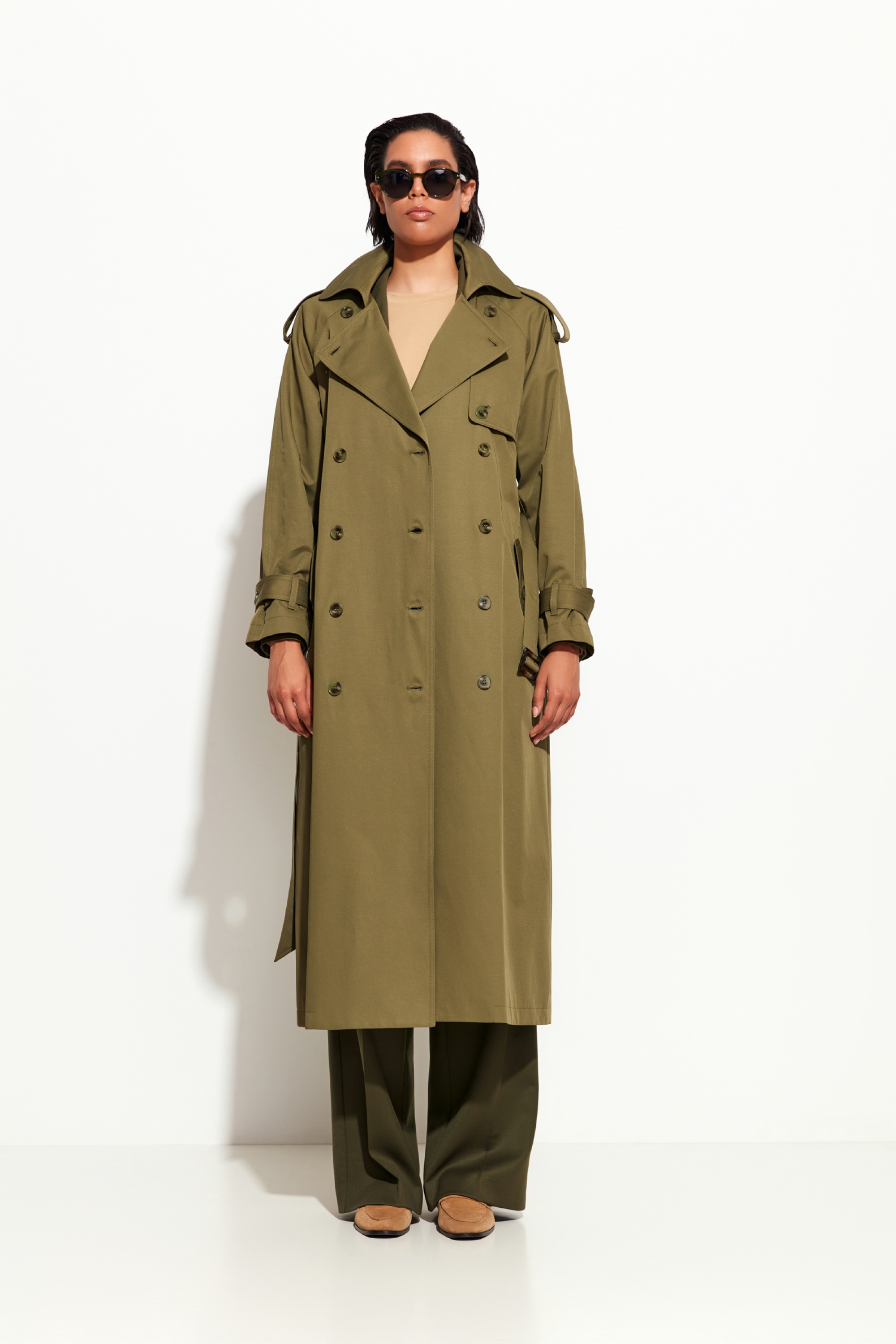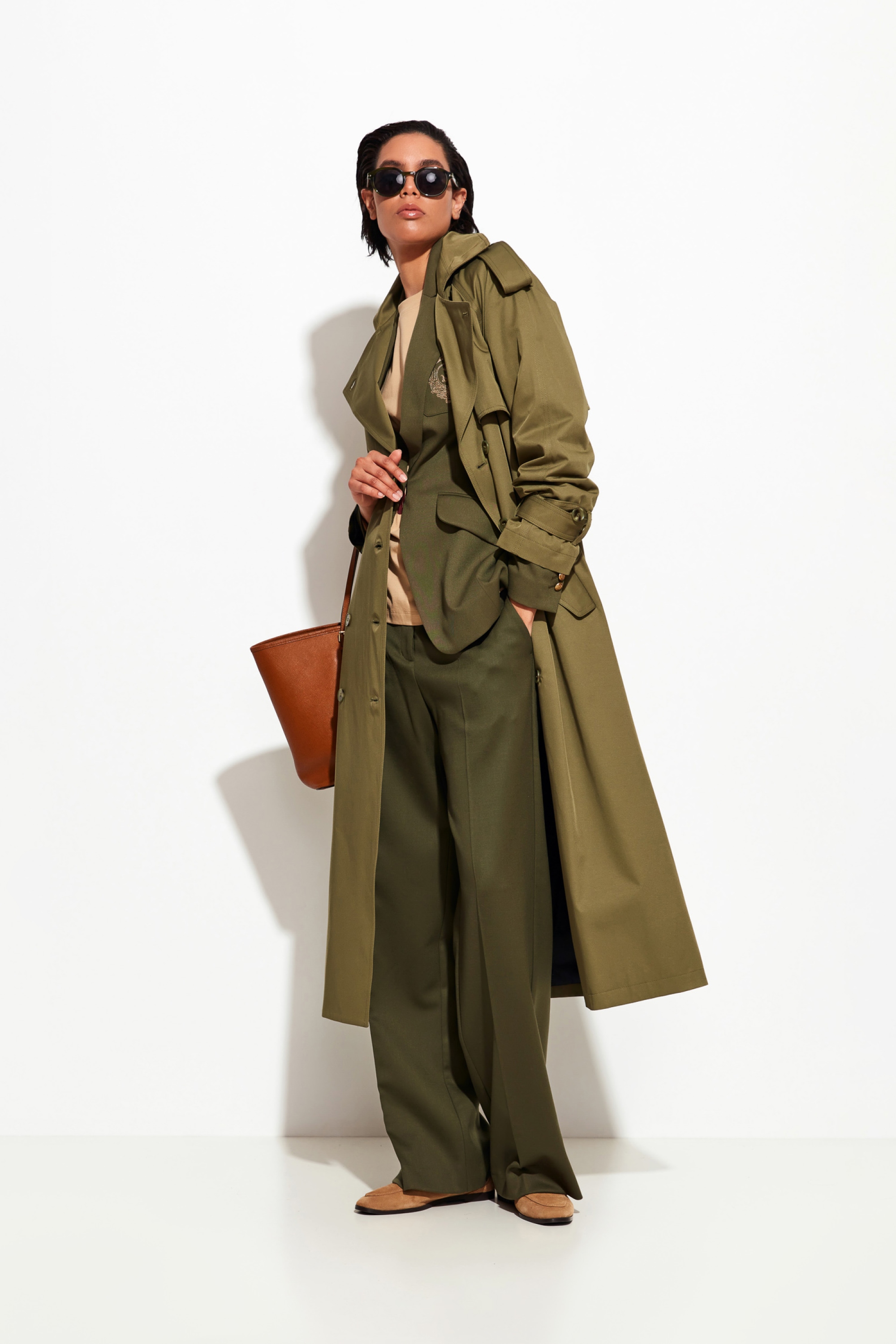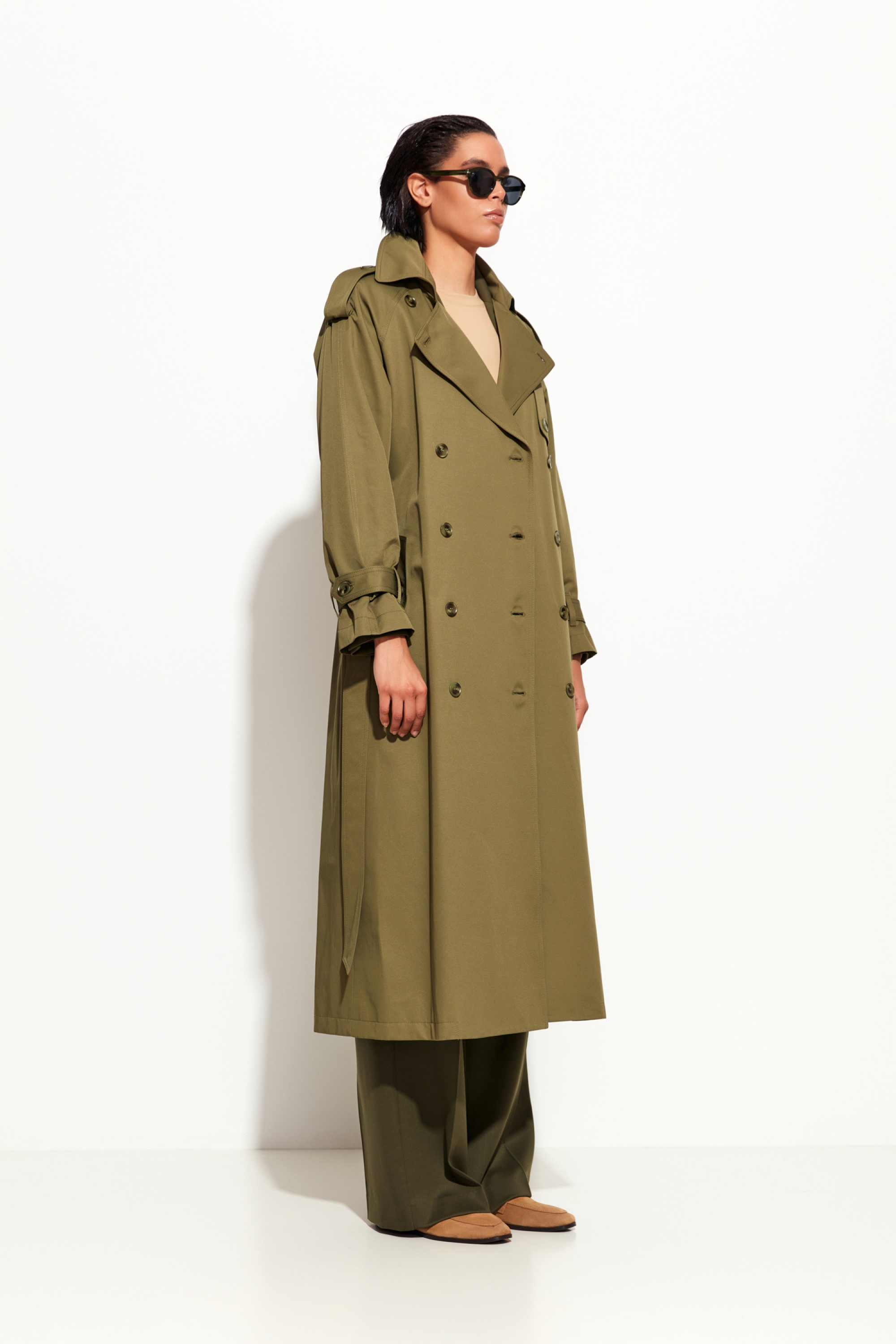 Плащ в оливковом и песочном цветах Lakbi из коллекции осень-зима 2025/26 — практичная и элегантная верхняя одежда для прохладной и дождливой погоды. Модель выполнена из качественного материала, который защищает от ветра и влаги, при этом остаётся лёгкой и комфортной в носке. Классический фасон с акцентом на аккуратные детали и современный крой делают плащ универсальным и модным элементом гардероба.