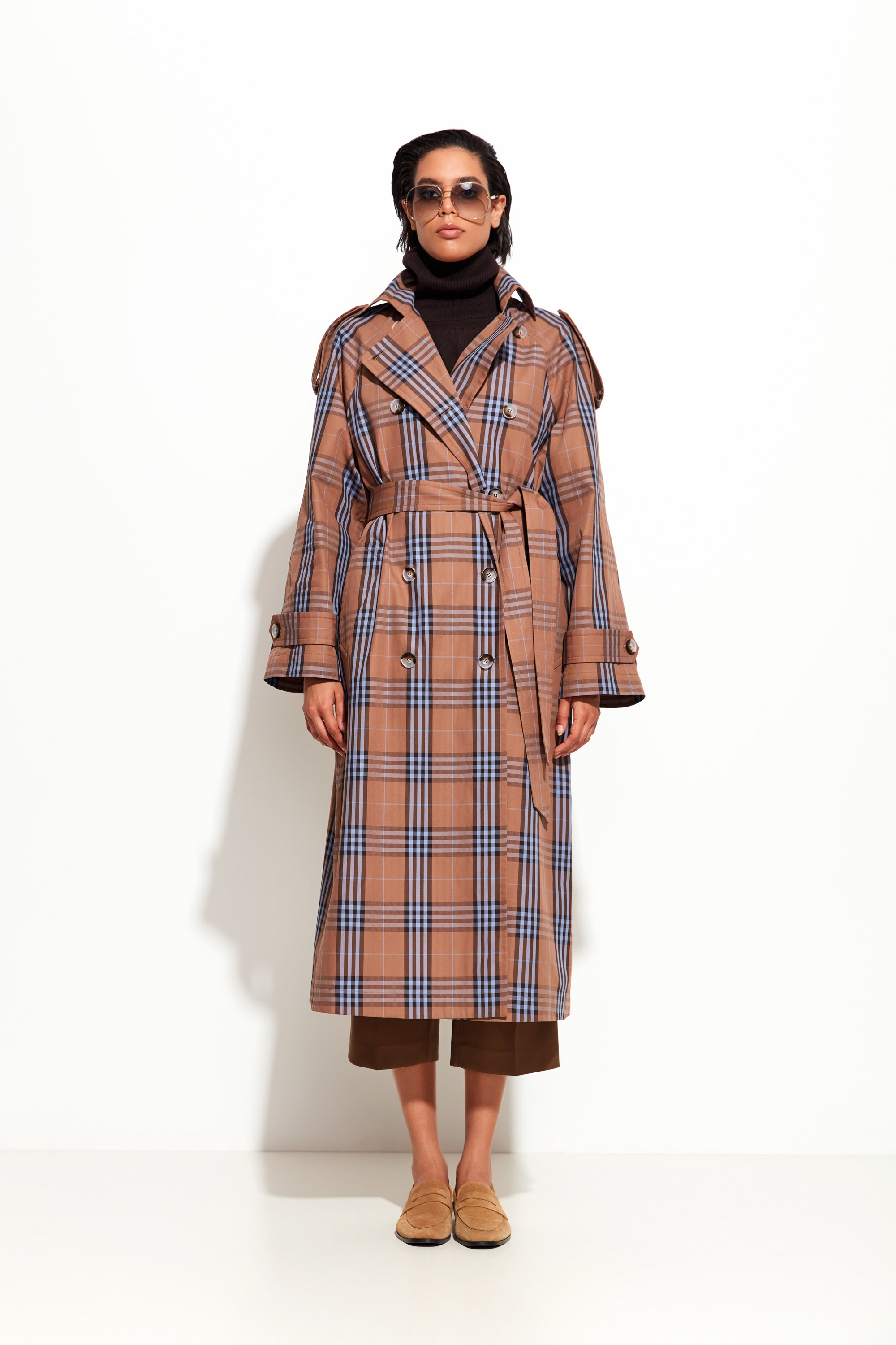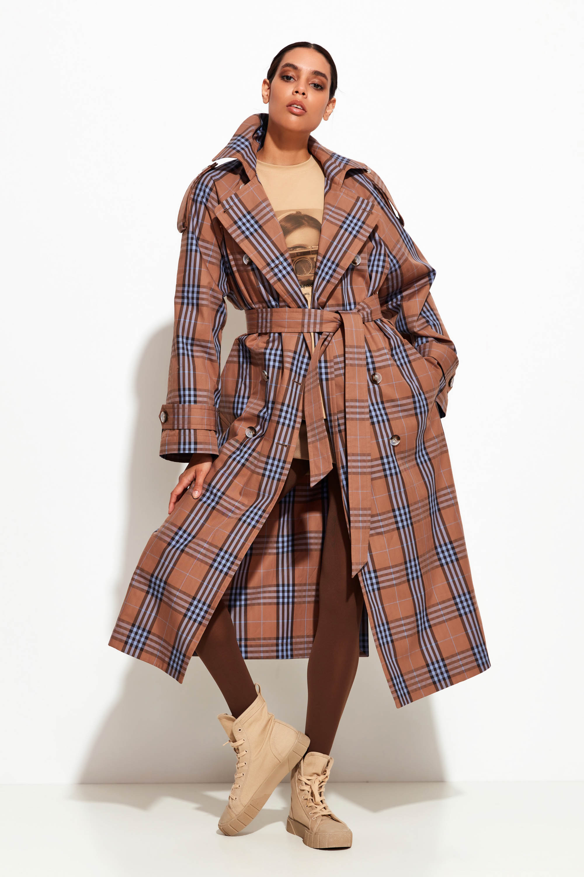 Плащ в клетку Lakbi из осенне-зимней коллекции 2025/26 — стильная и практичная модель с актуальным клетчатым принтом. Изготовлен из 100% хлопка, который обеспечивает натуральный комфорт и воздухопроницаемость. Классический прямой крой и длина ниже колена делают плащ универсальным элементом гардероба, подходящим для разных типов фигуры и случаев. Модель легко сочетается с разнообразной одеждой и аксессуарами, создавая как деловые, так и повседневные образы.
