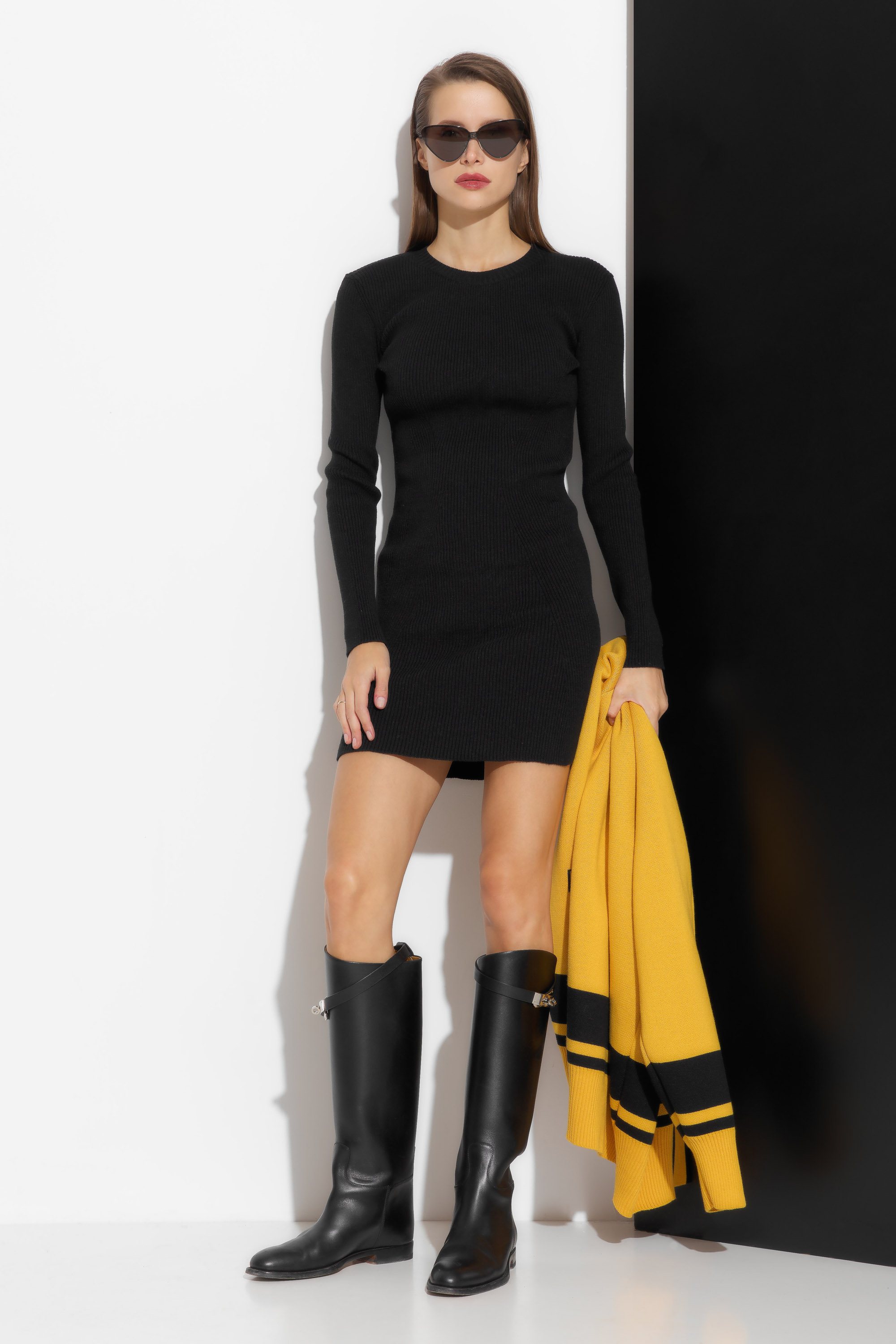 Платье вязаное прилегающего силуэта в длине мини. Округлый вырез горловины. Комфортная, теплая модель, которая идеально подойдет для создания стильных осенних и зимних образов.