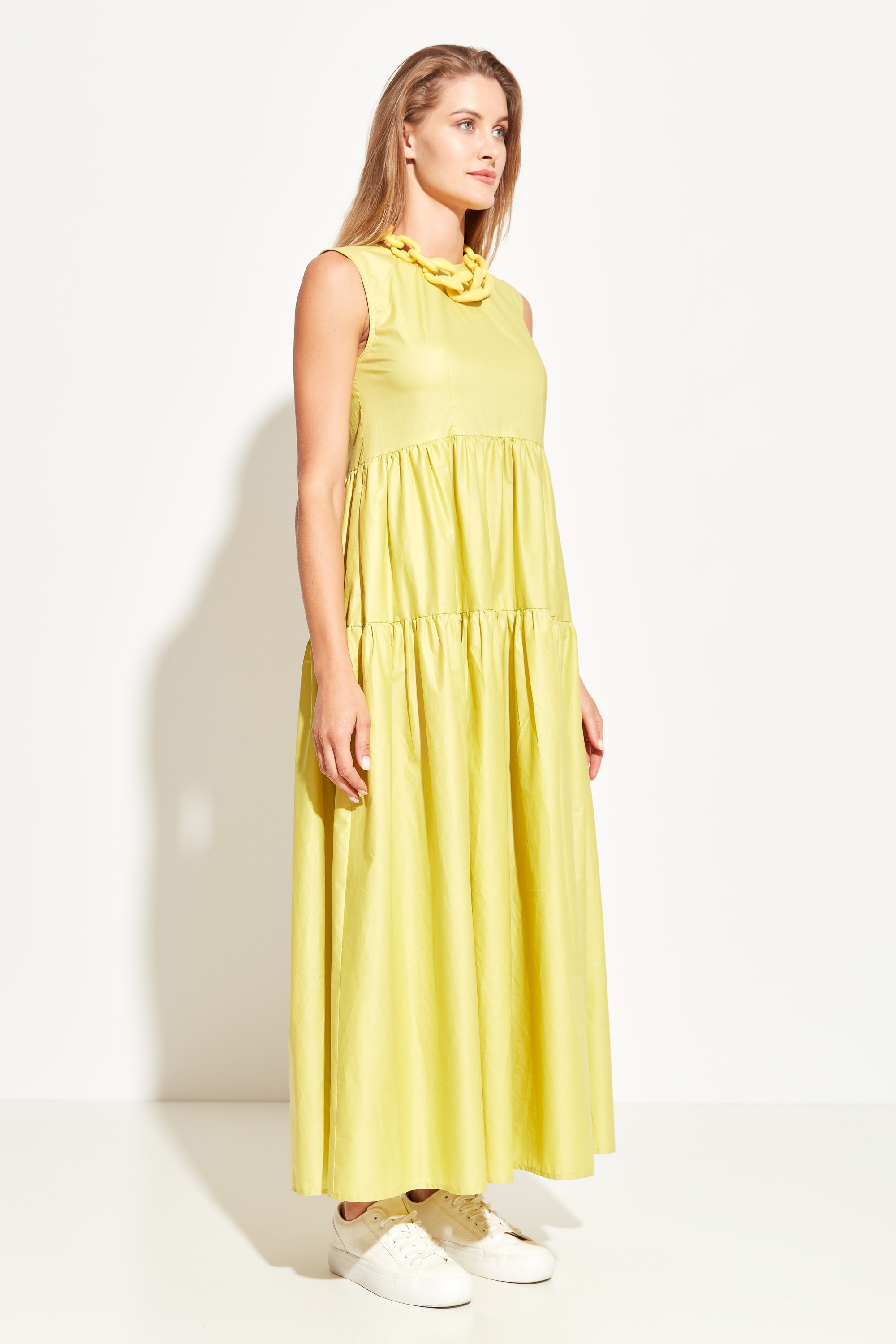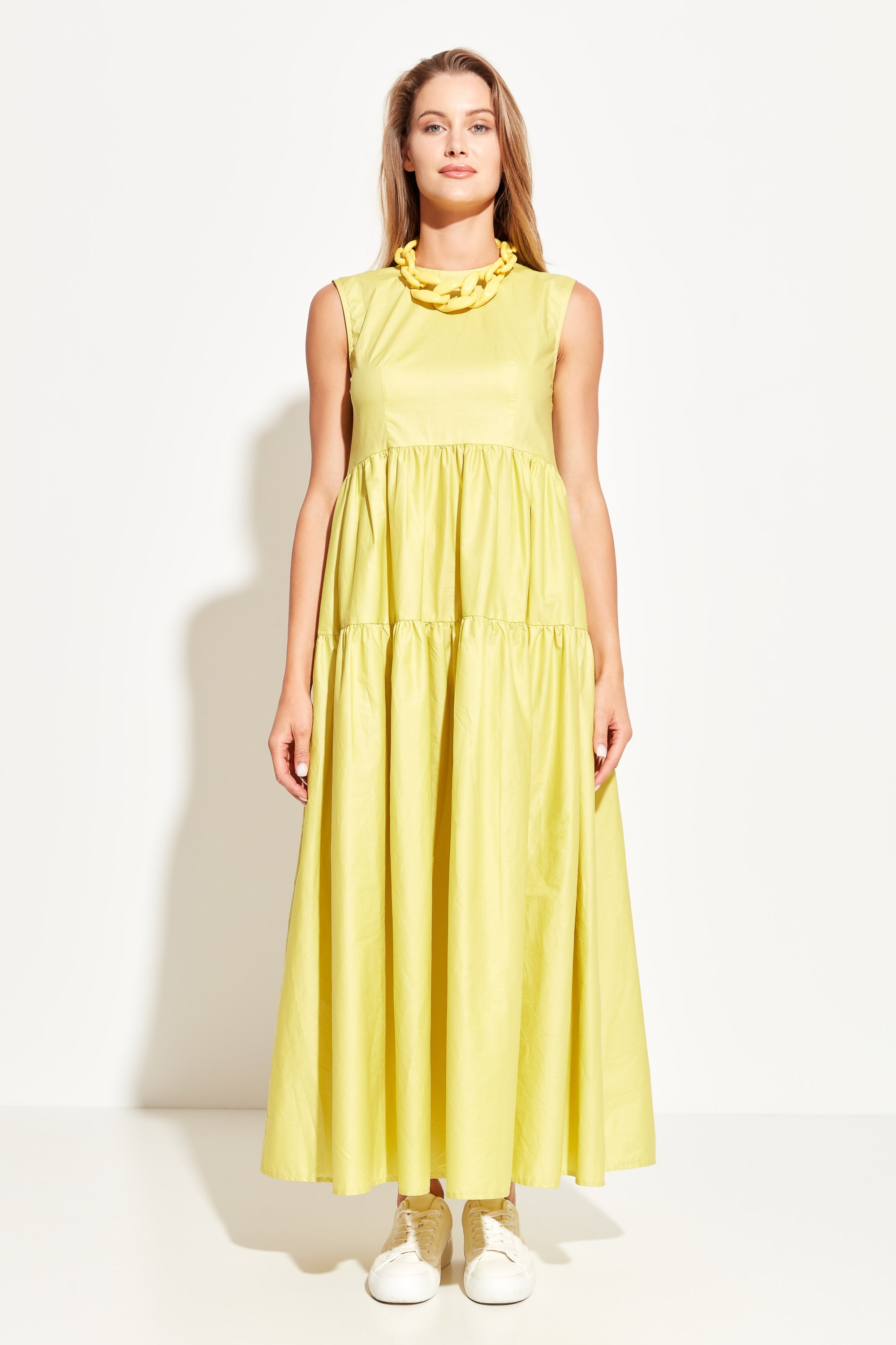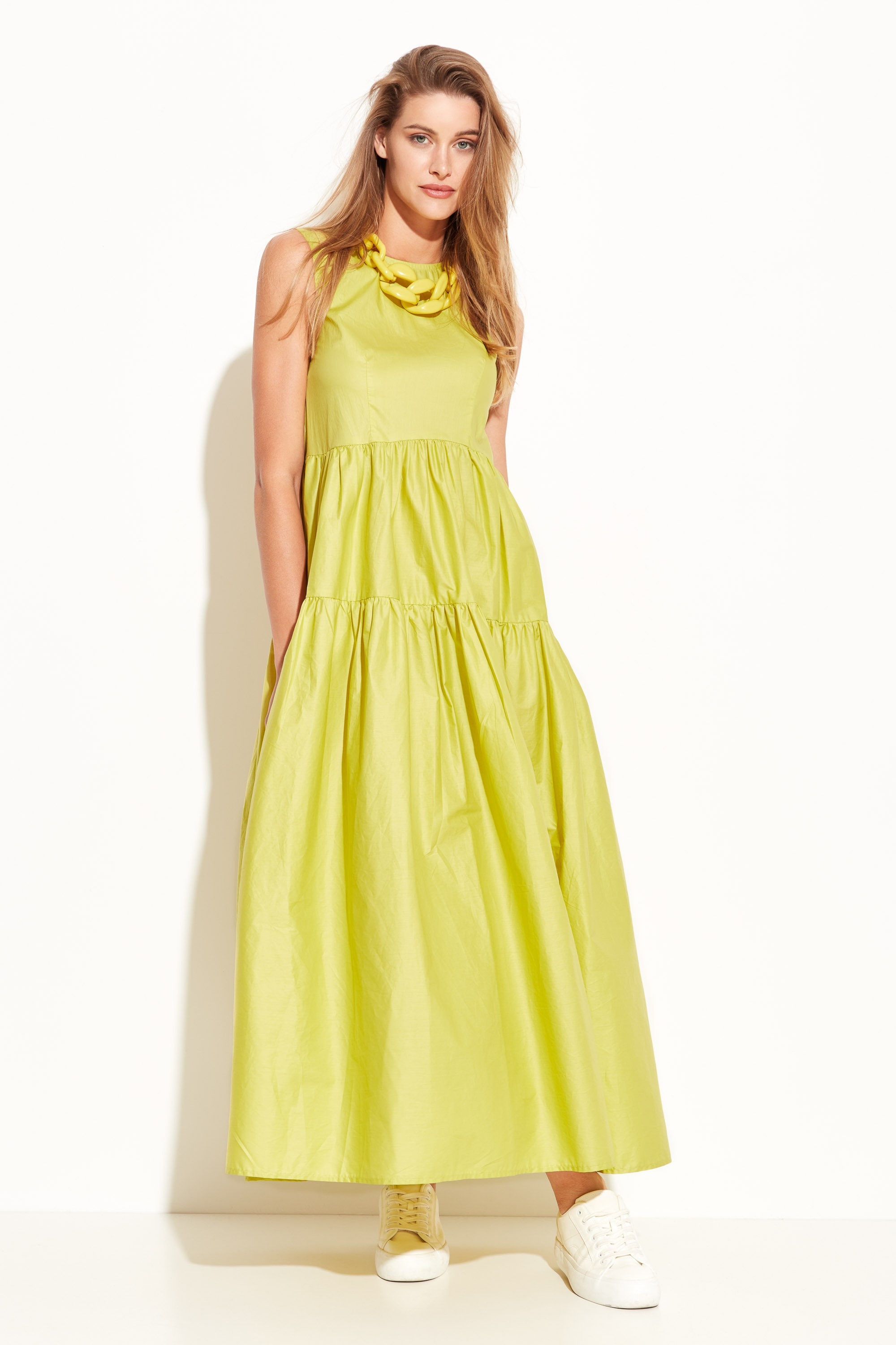 Платье А-образного силуэта в длине макси. Округлый вырез горловины. В боковых швах юбки карманы. Комфортная модель для создания стильных городских образов.