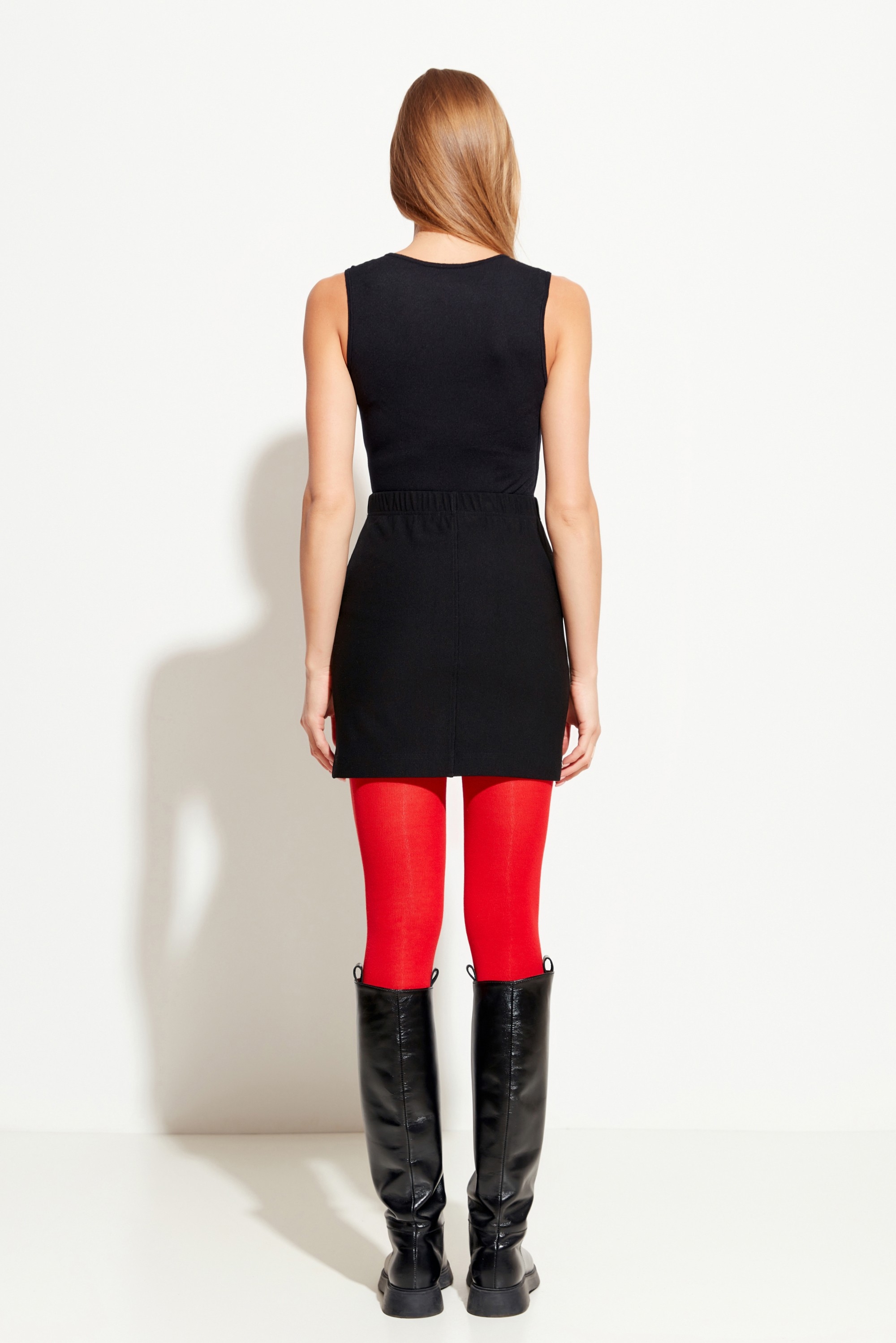 Юбка мини прилегающего силуэта. Посадка изделия высокая. Пояс на эластичной резинке, что обеспечивает комфортную посадку изделия. Передняя часть декорирована нашивкой. Универсальная модель, которая подойдет к любому типу гардероба и станет незаменимым помощником в создании стильных ежедневных образов.