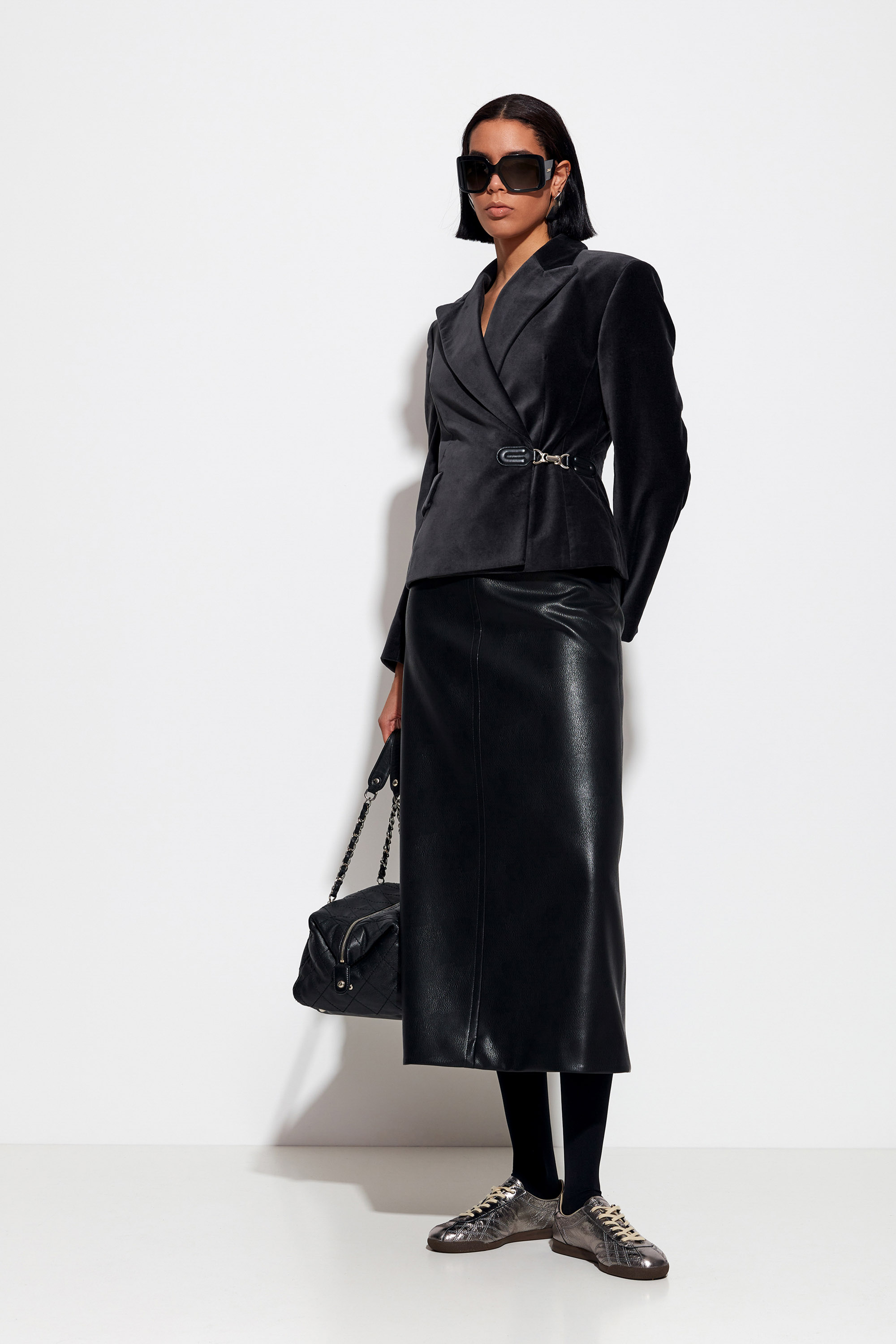 Бежевая юбка из эко-кожи Lakbi — сдержанная и стильная модель из коллекции Fall‑Winter 2025/26. Выполнена из 100 % полиэстера, она обеспечивает аккуратный внешний вид, лёгкость в уходе и сохранение формы. Эта базовая модель представлена в универсальных бежевых оттенках, которые идеально впишутся в офисные и повседневные гардеробы.