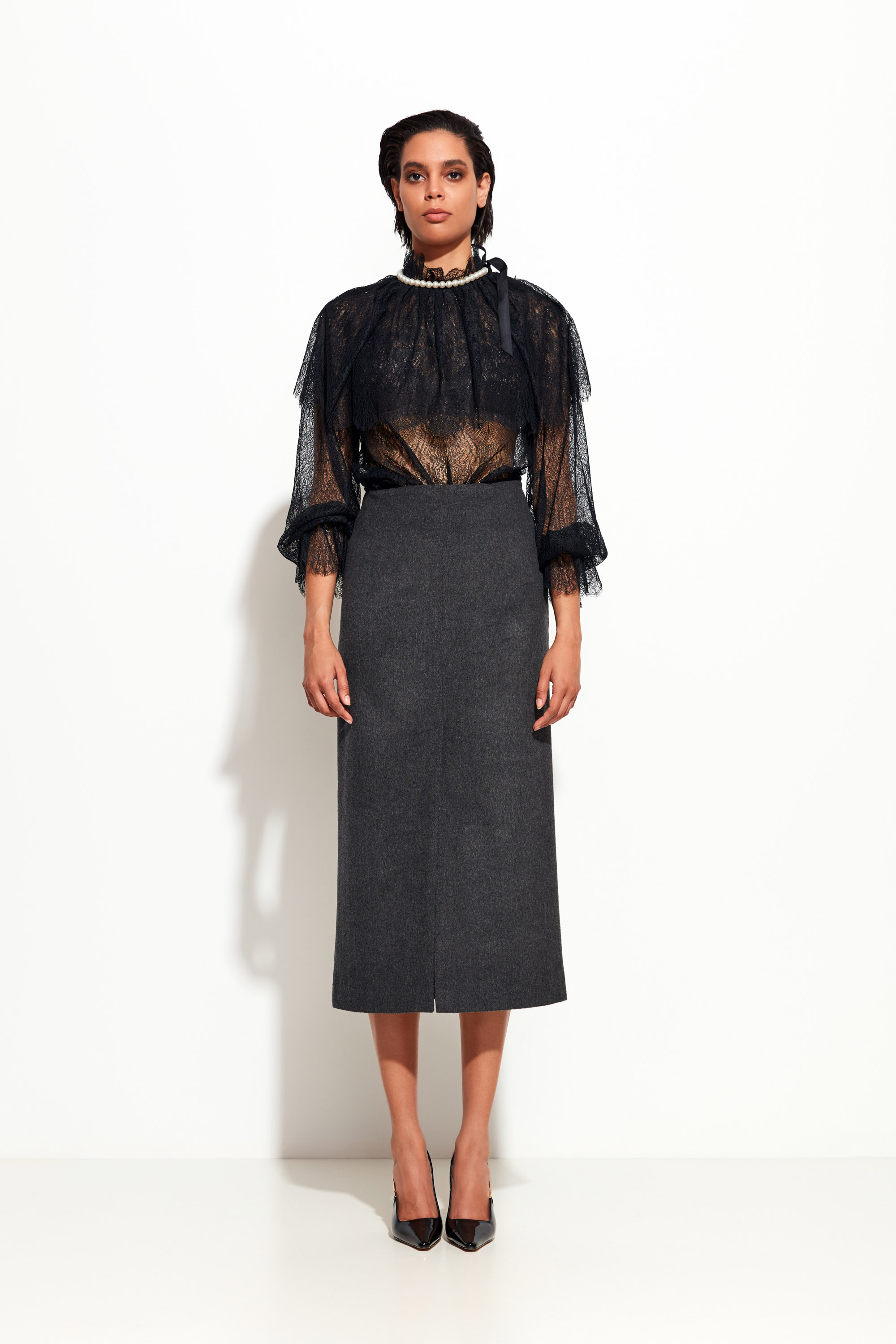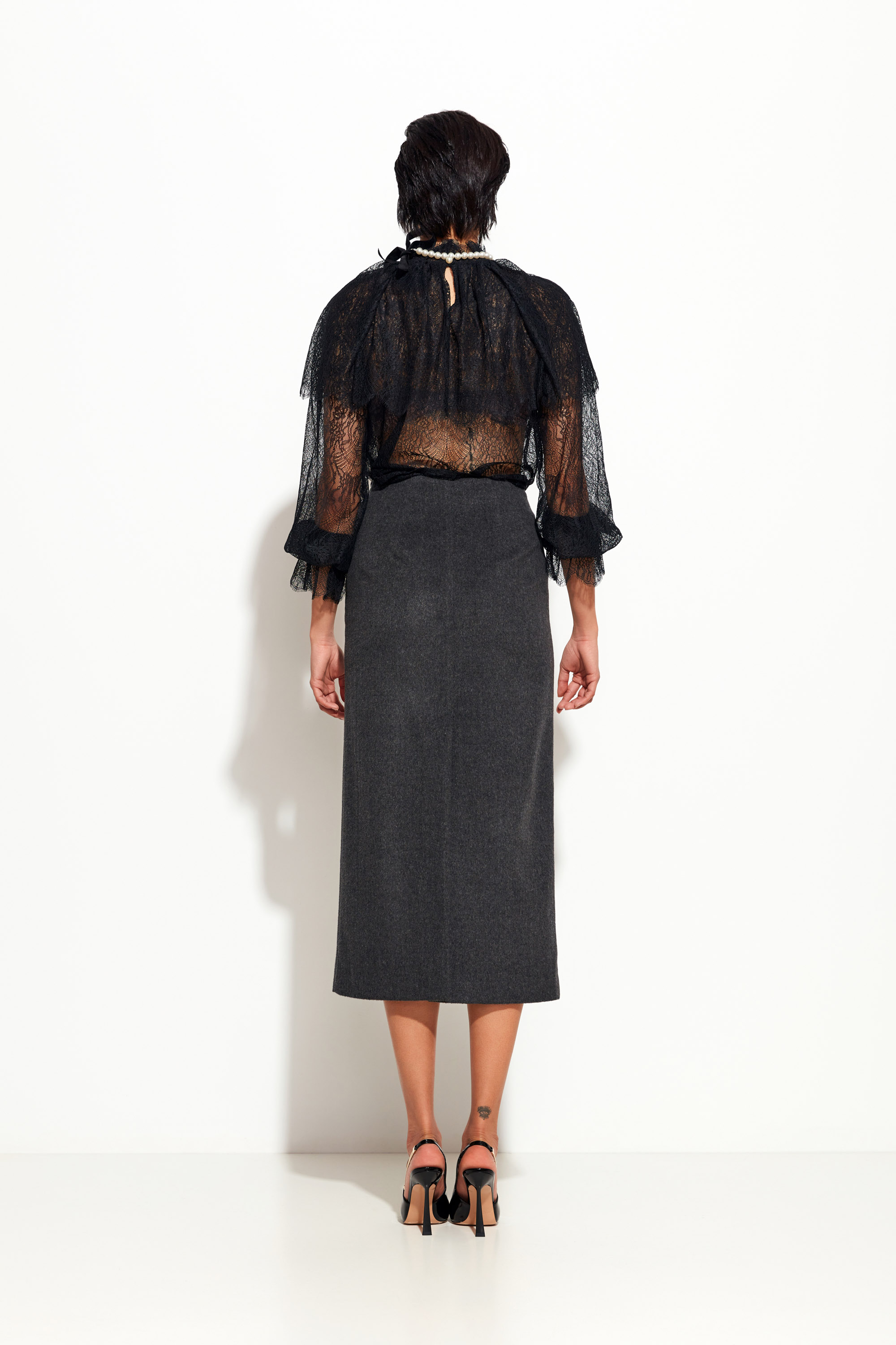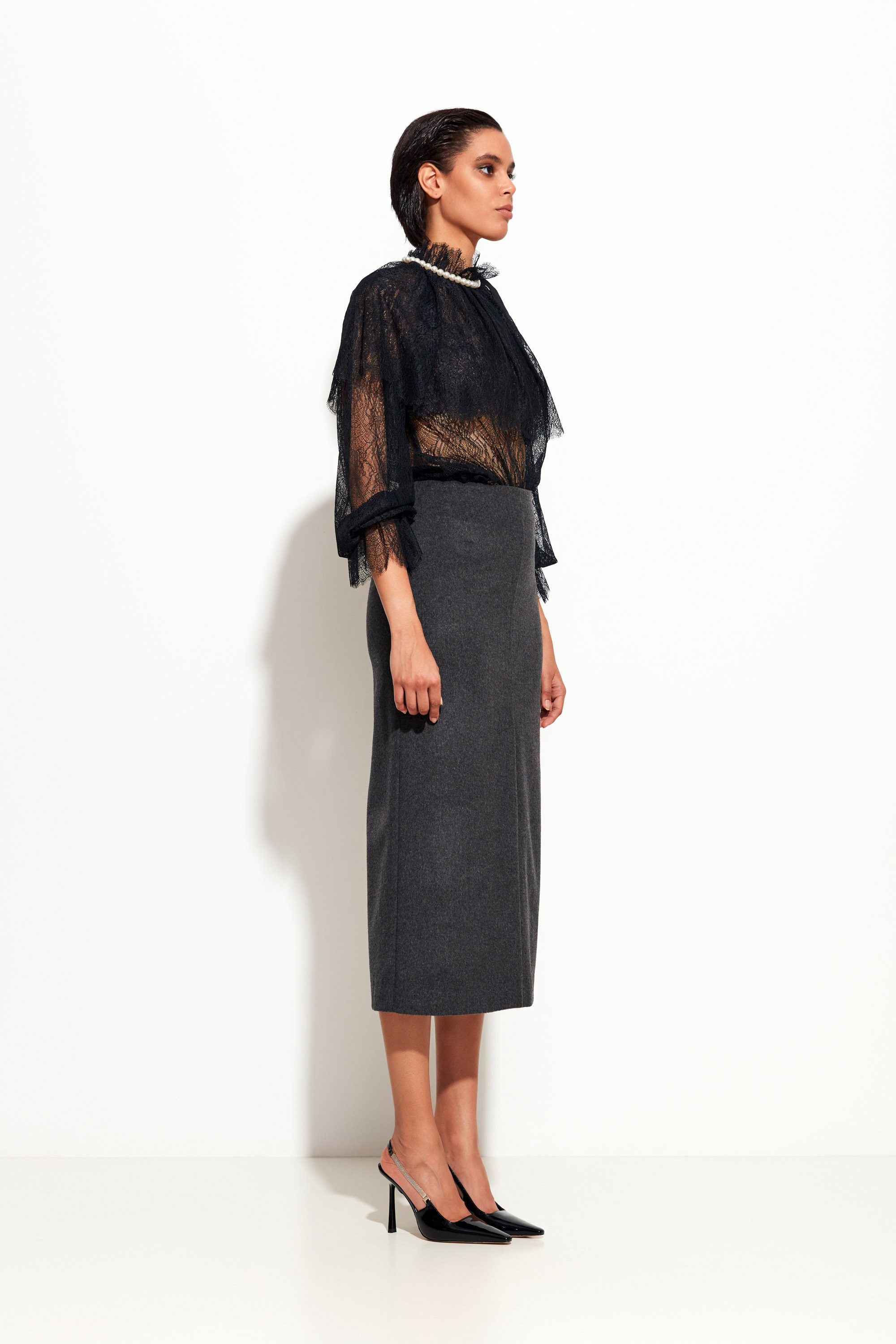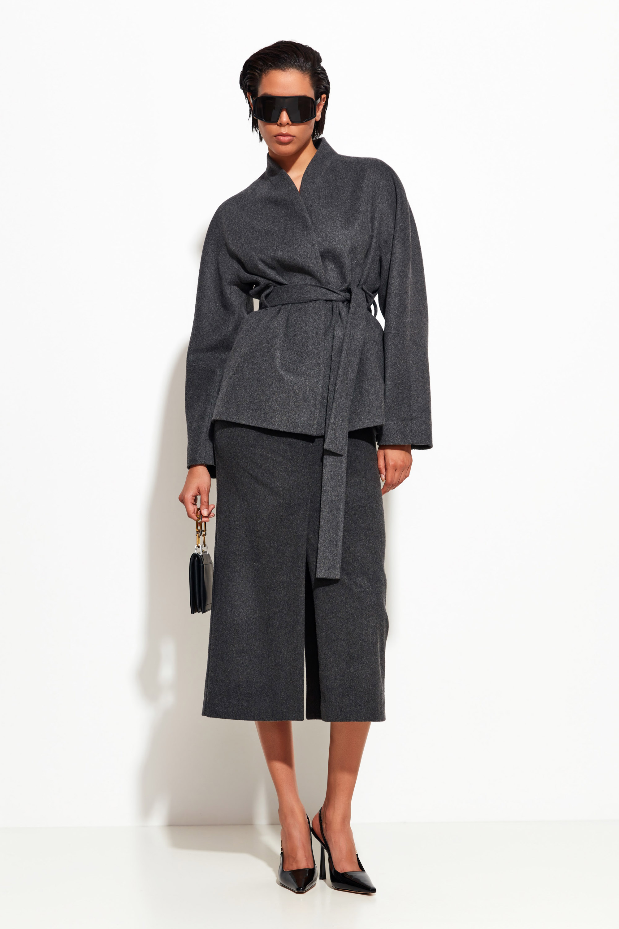 Детали: разрезы спереди и сзади — визуальная лёгкость и свобода шагов.