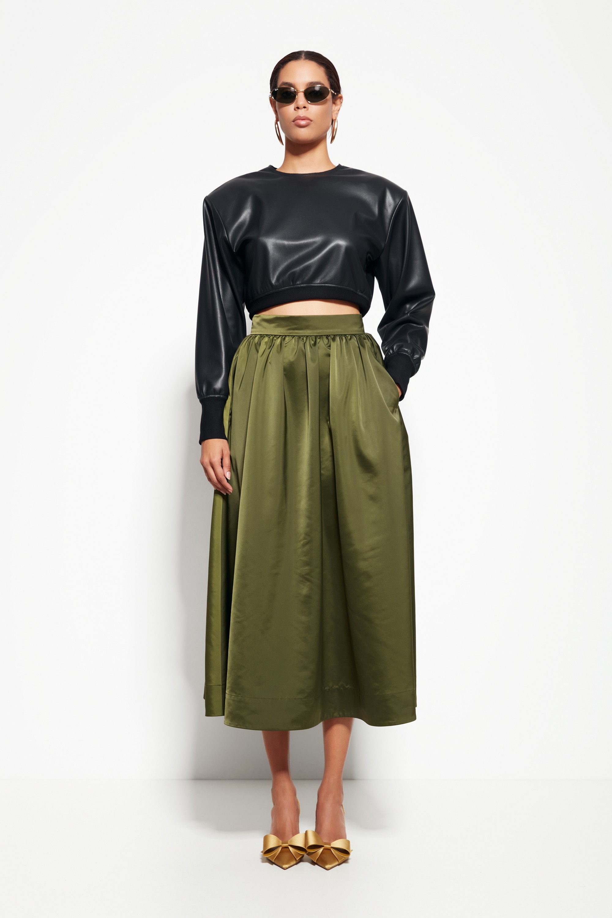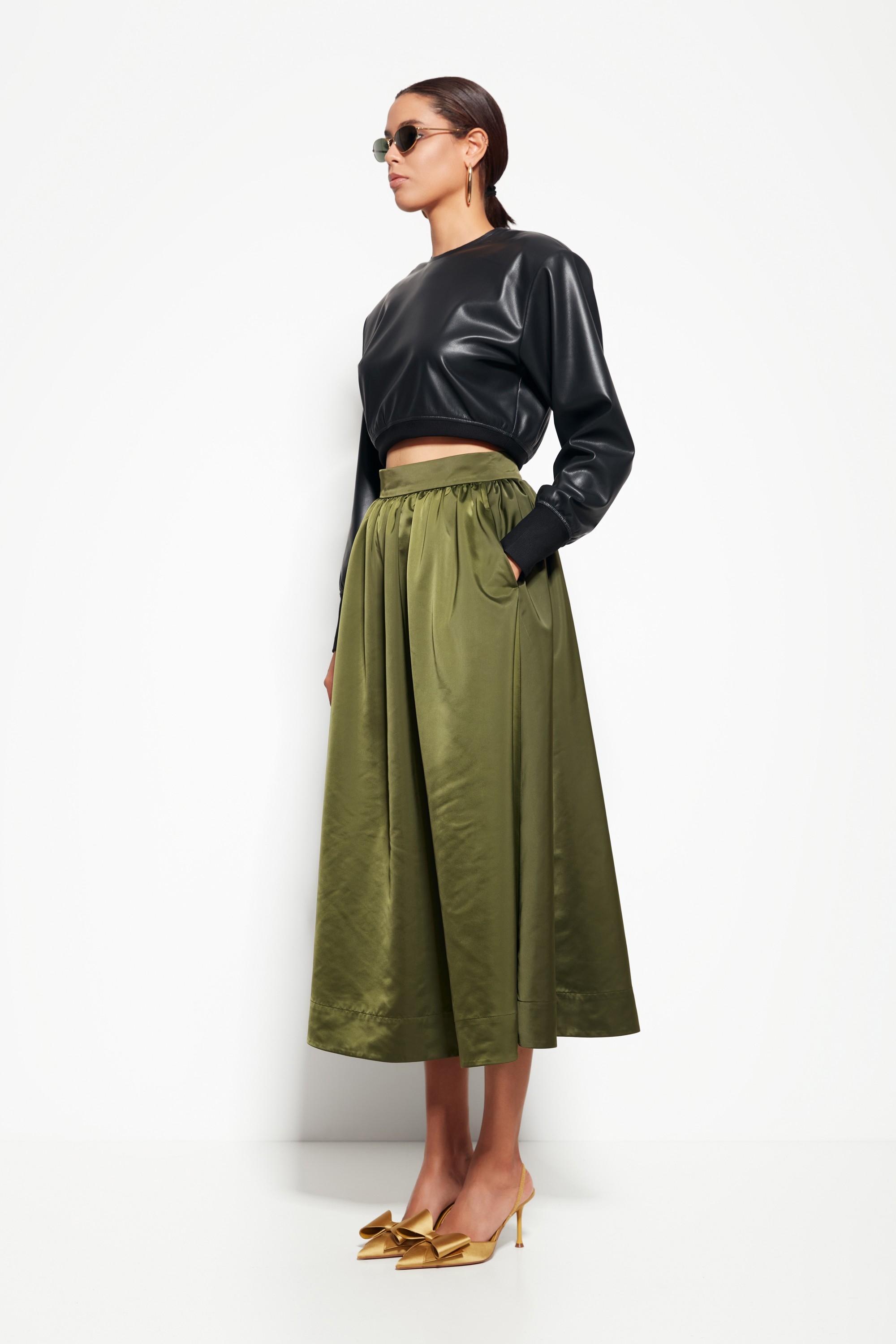 Модель из коллекции Party 2026 — юбка миди длины с боковыми карманами, сочетающая женственность и практичность. Лаконичный силуэт, строгие линии и удобные детали делают эту модель универсальным выбором для вечерних и дневных образов.