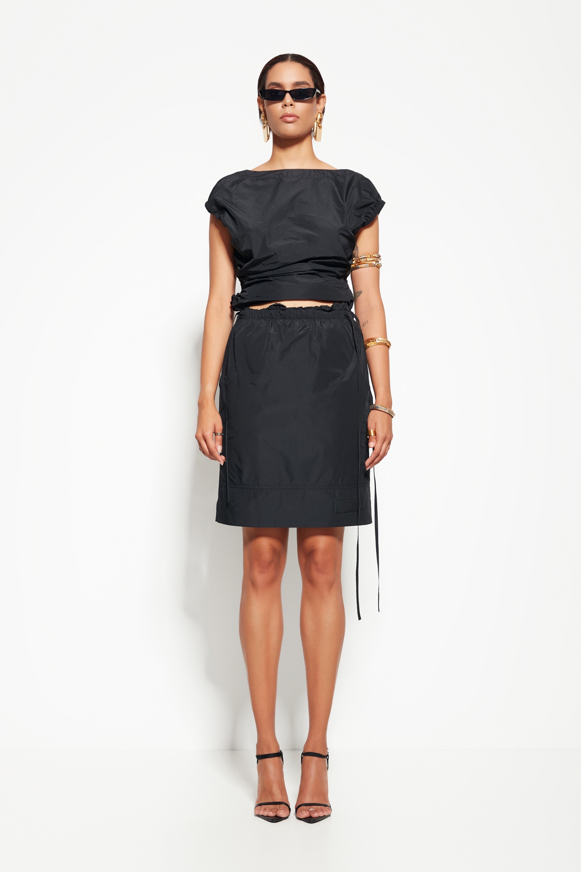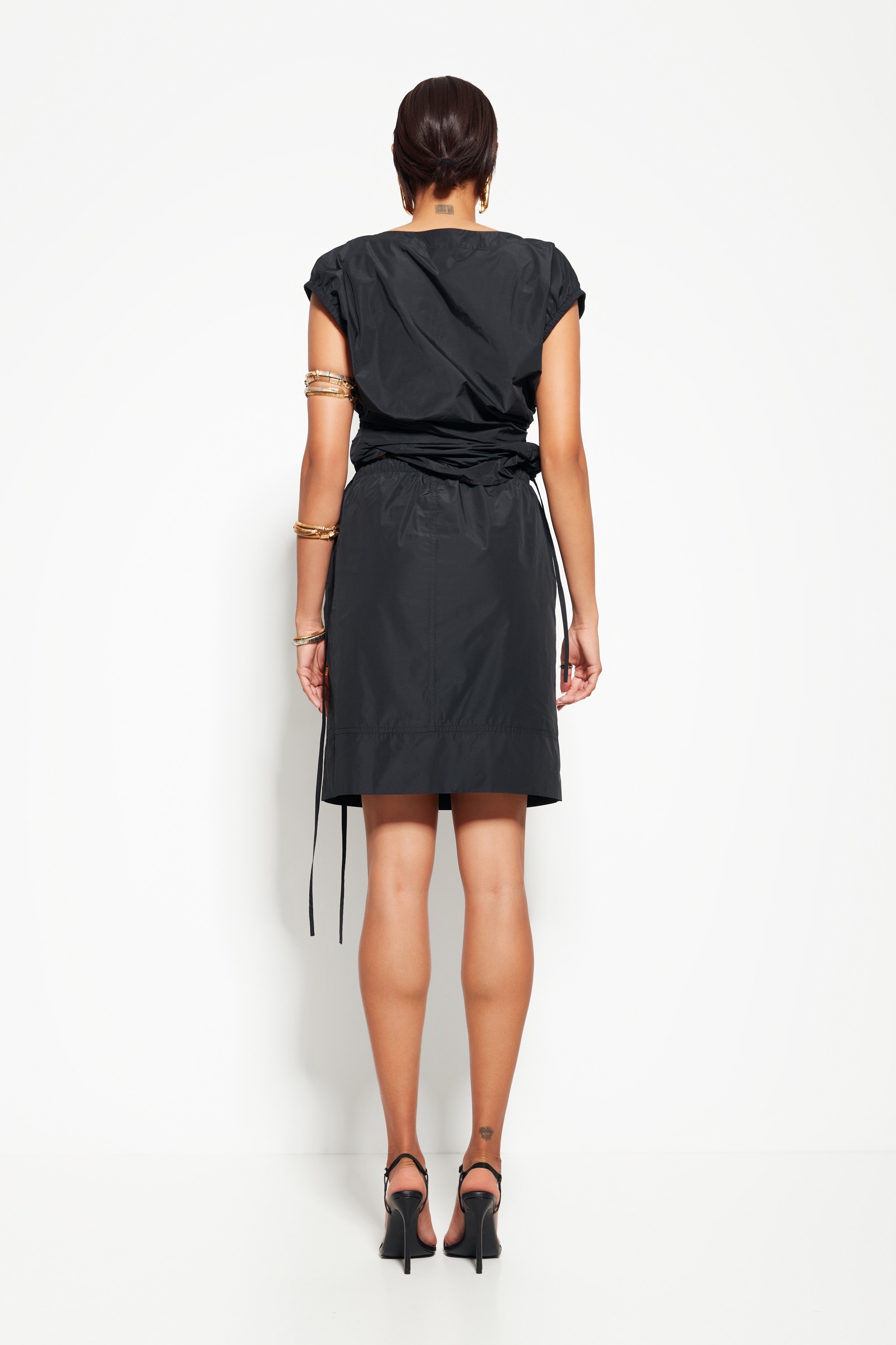 Модель из коллекции Party 2026 — юбка выше колена с прямым силуэтом, создающая сдержанный и стильный образ. Лаконичный дизайн делает акцент на чистых линиях и элегантности.