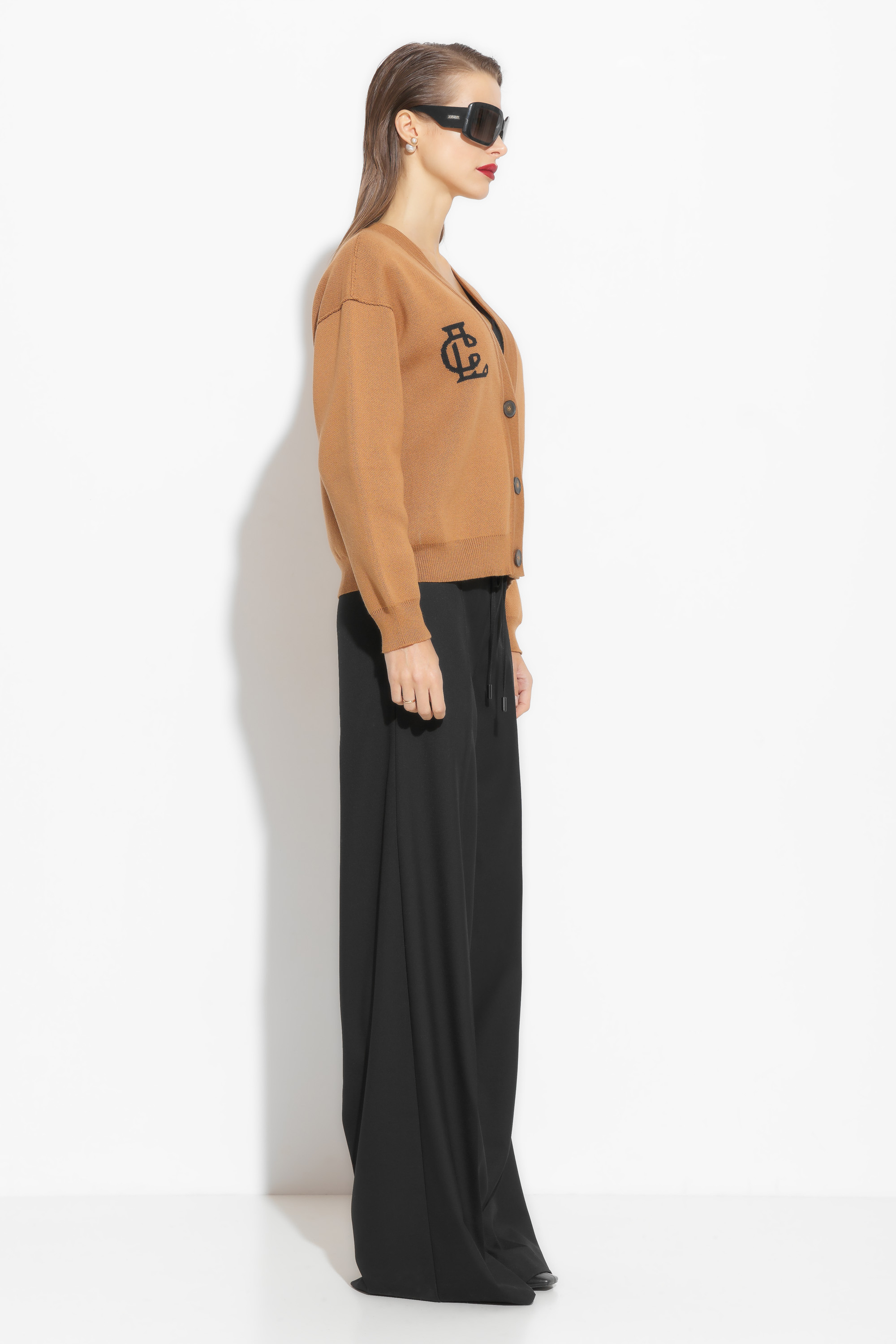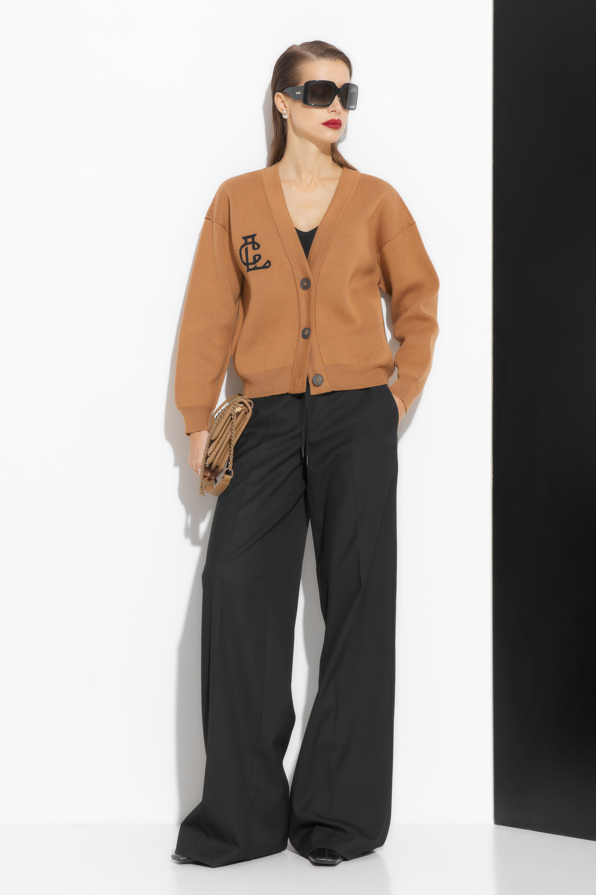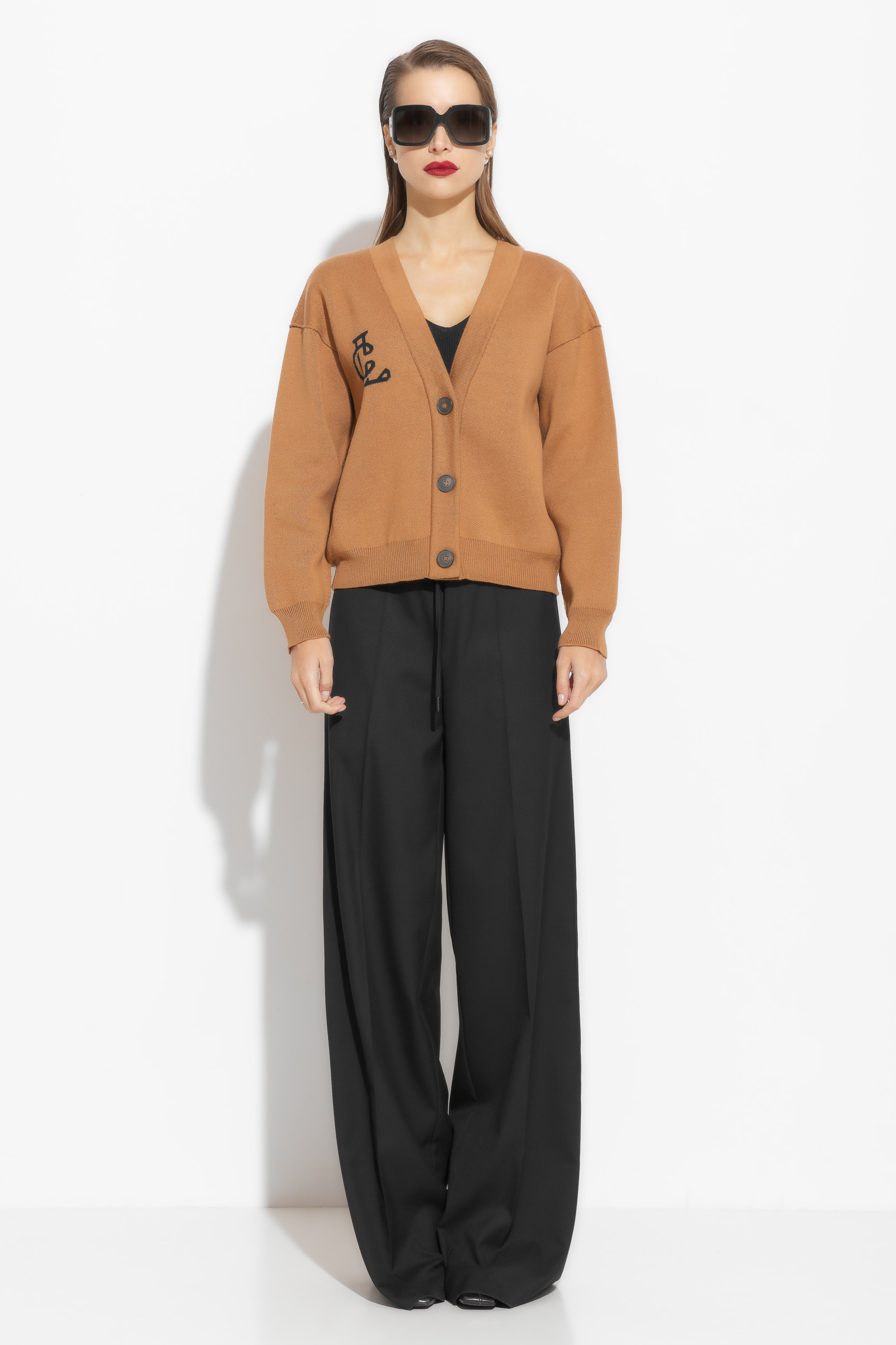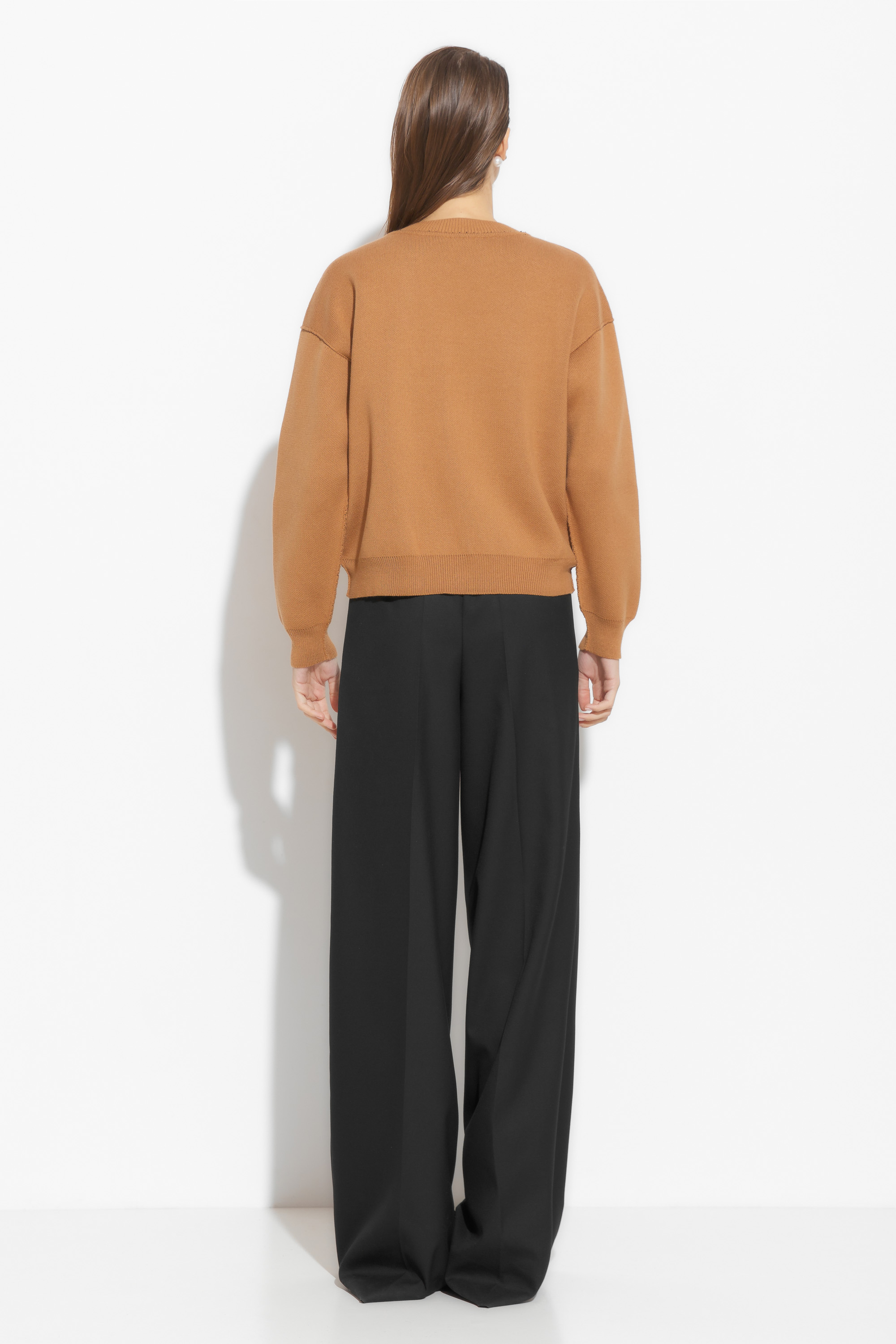 Жакет вязаный свободного кроя, длиной выше линии бедер. V-образный вырез горловины выигрышно подчеркивает зону декольте. Линия плеч спущена. Низ изделия и рукава на мягких эластичных манжетах. Базовая модель, которая необходима в любом гардеробе.