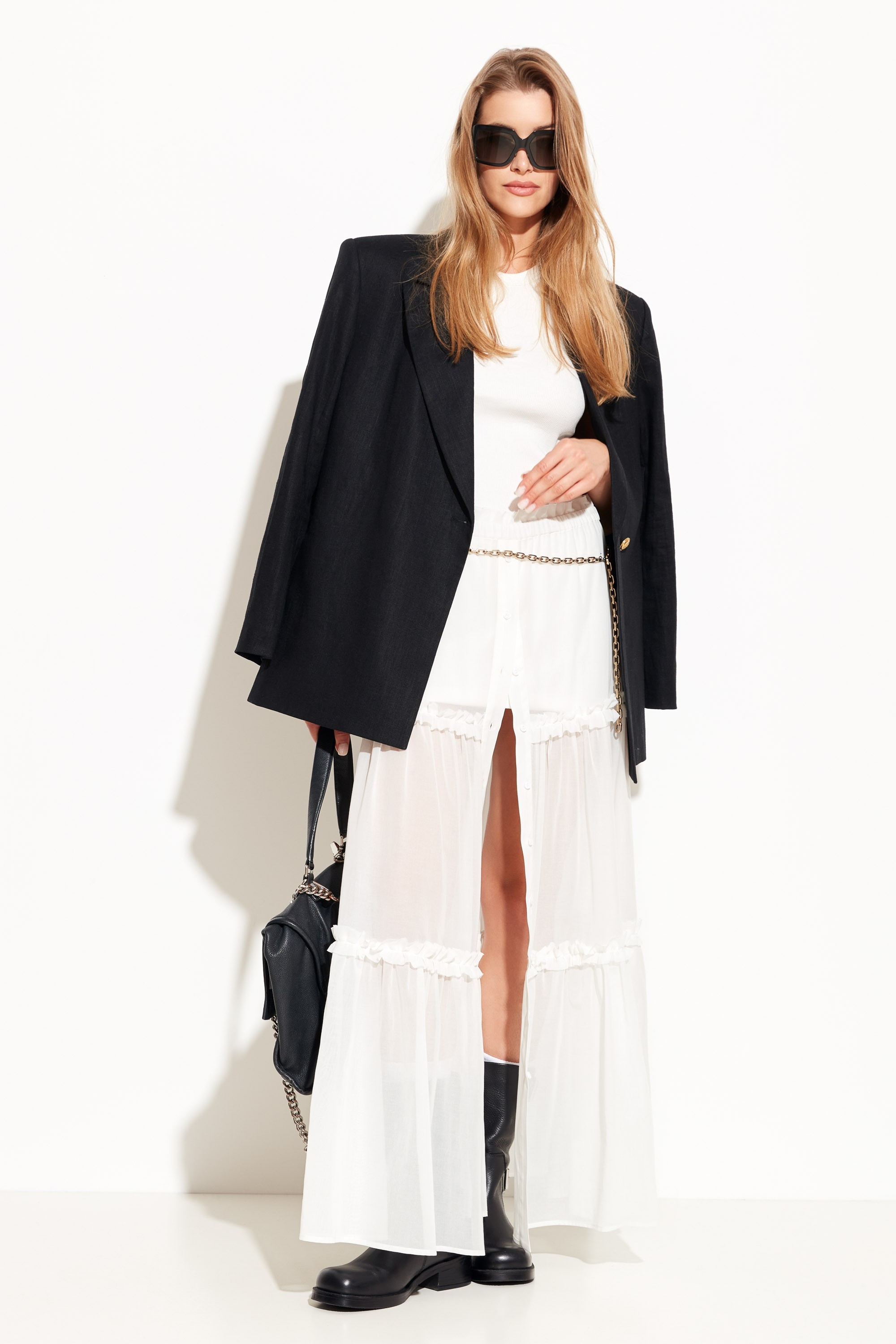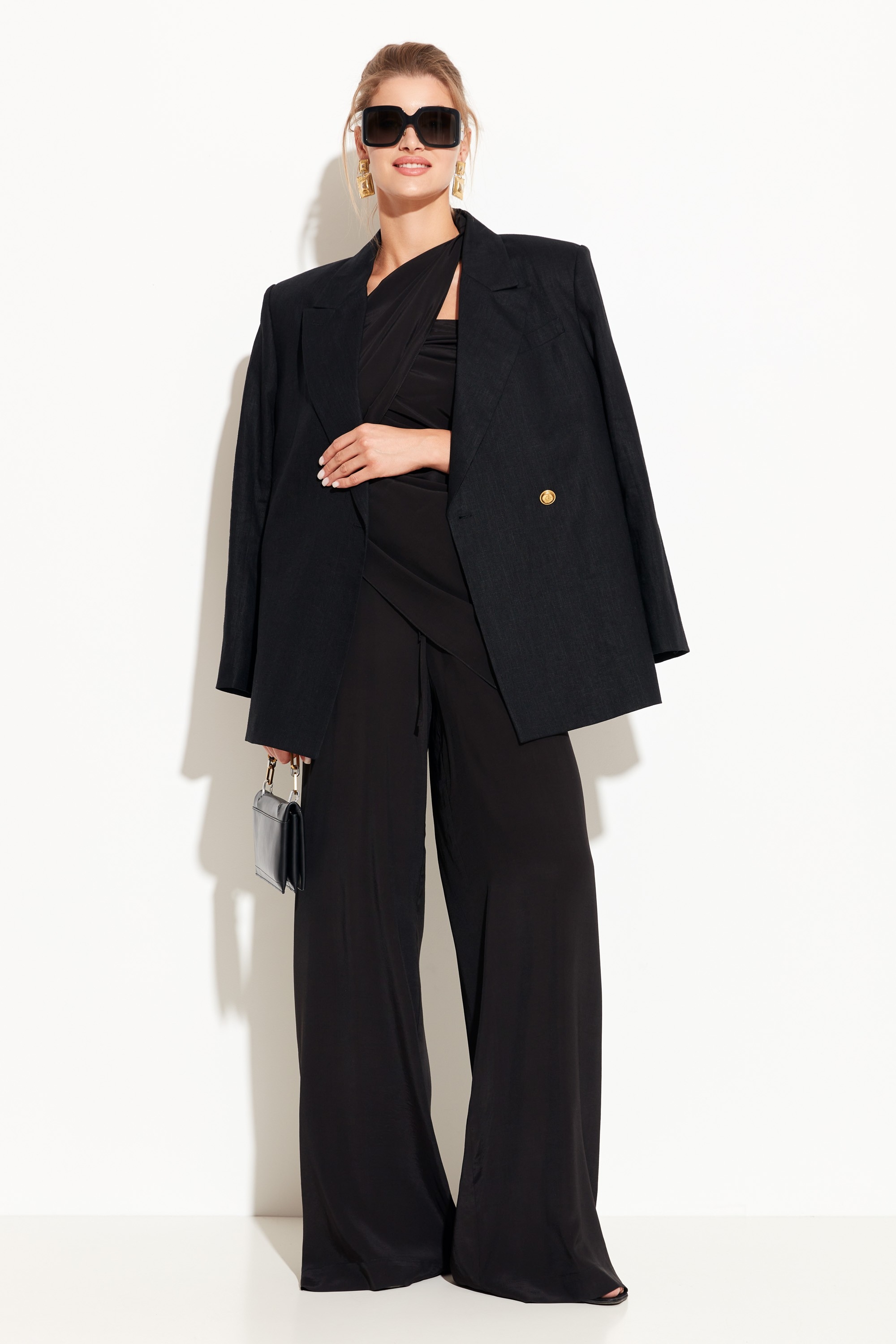 Жакет прямого кроя, длиной ниже линии бедер. Воротник отложной. Застегивается на акцентную пуговицу. Линия плеч расширена. Жакет на подкладке, с плечевыми накладками. Универсальная, классическая модель, которая подойдет к любому типу гардероба.