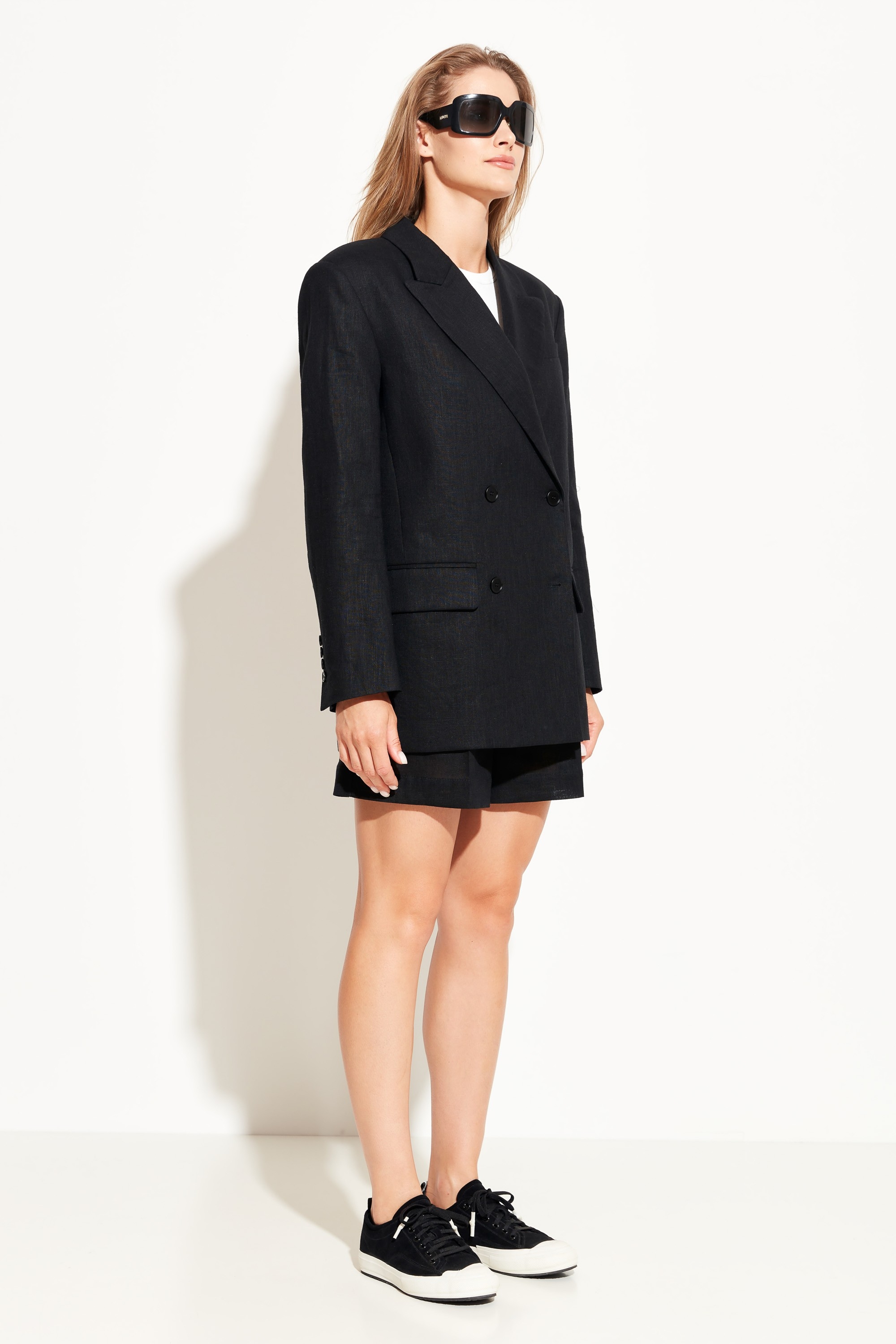 Жакет полуприлегающего силуэта, длиной ниже линии бедер. Воротник отложной. По бокам прорезные карманы с клапанами. Линия плеч расширена. Жакет на подкладке, с плечевыми накладками.