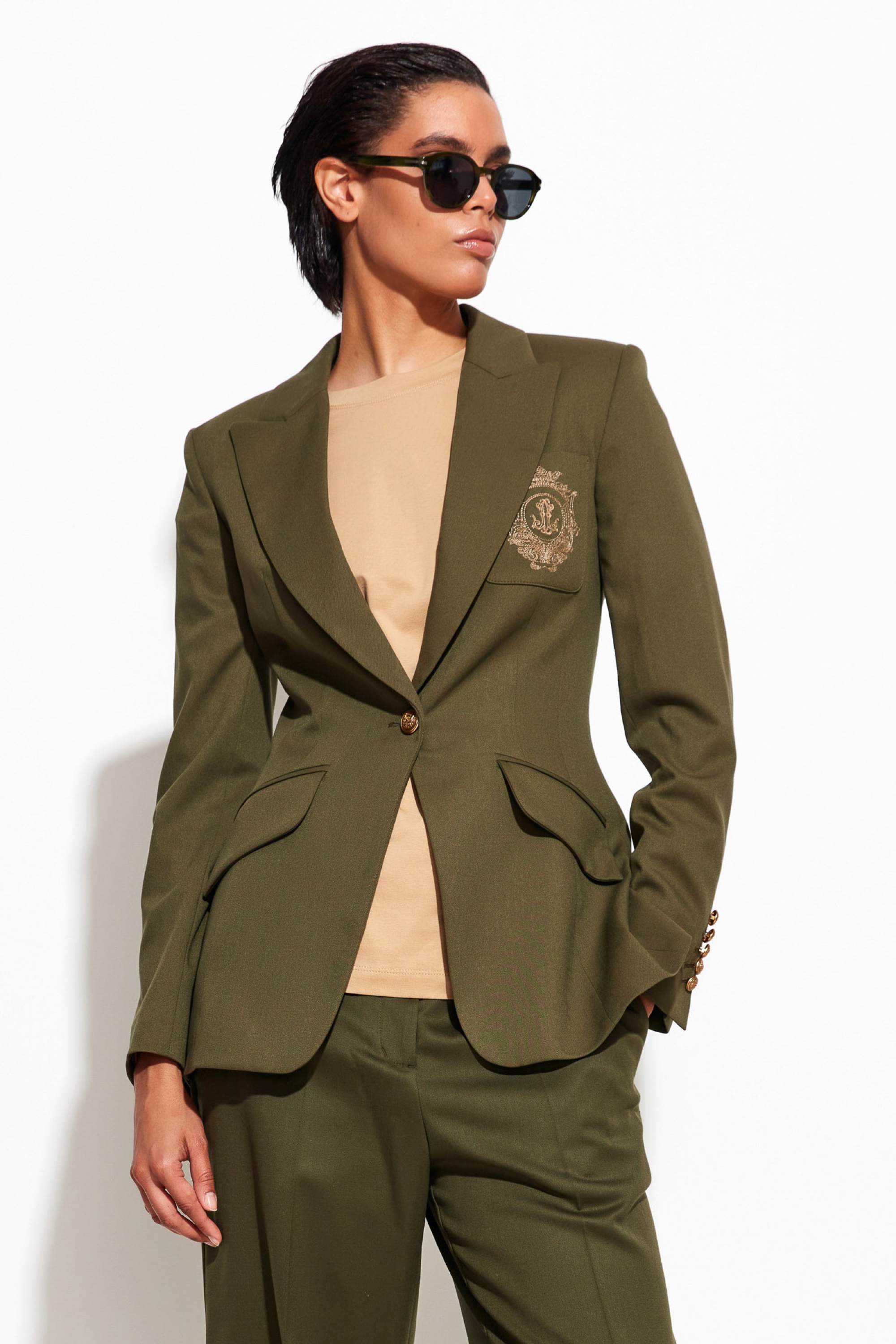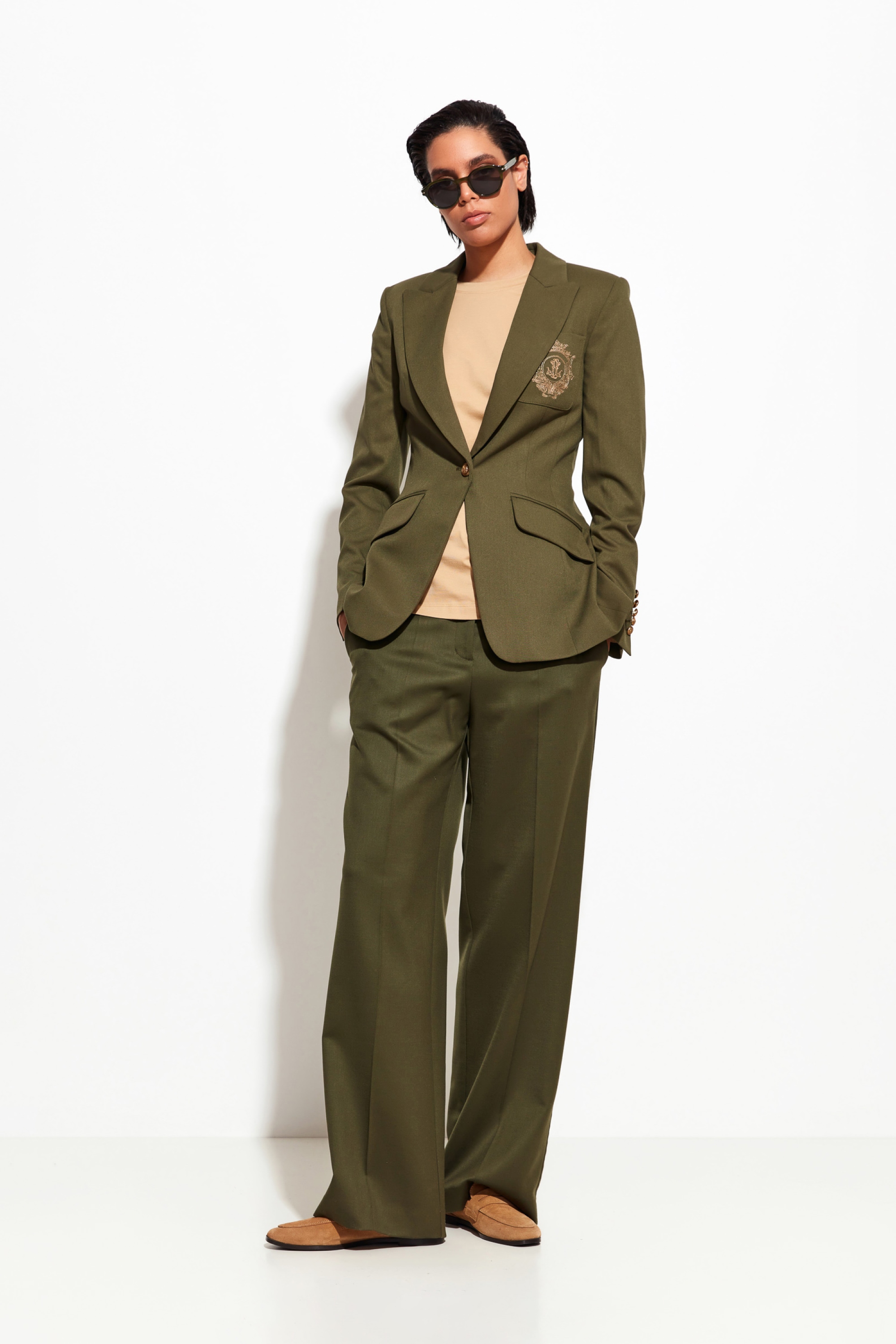 Жакет в оливковом цвете Lakbi из коллекции осень-зима 2025/26 выполнен из высококачественного материала, состоящего из 69% полиэстера, 29% вискозы и 2% спандекса. Такая комбинация тканей обеспечивает приятную мягкость, эластичность и отличную посадку по фигуре. Классический приталенный крой подчёркивает женственность и создаёт аккуратный, элегантный образ
