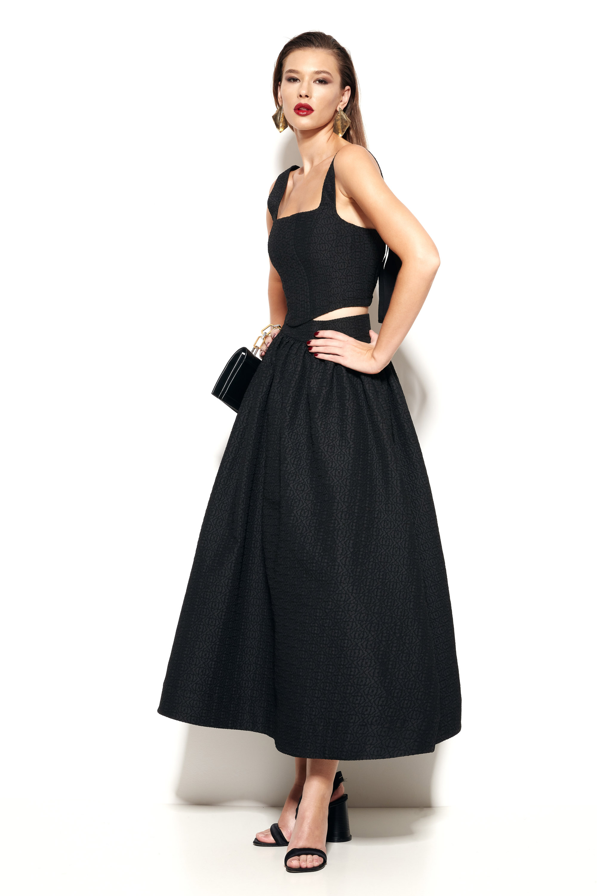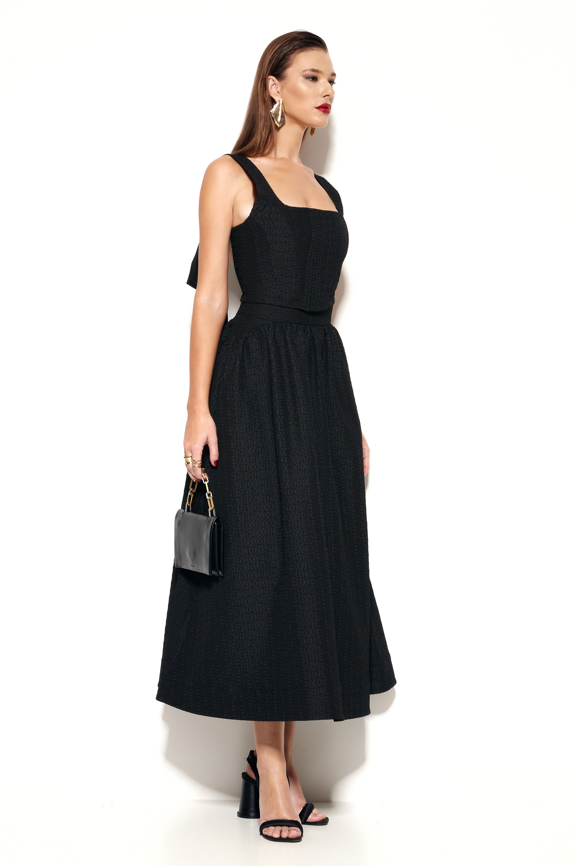 Блуза прилегающего силуэта, укороченной длины. Фигурный лиф гармонично подчеркивает зону декольте. Блуза застегивается на спине на металлическую молнию контрастного цвета. Стильная, эффектная модель для создания романтичных образов. Блуза сочетается как с юбками, так с брюками и джинсами.