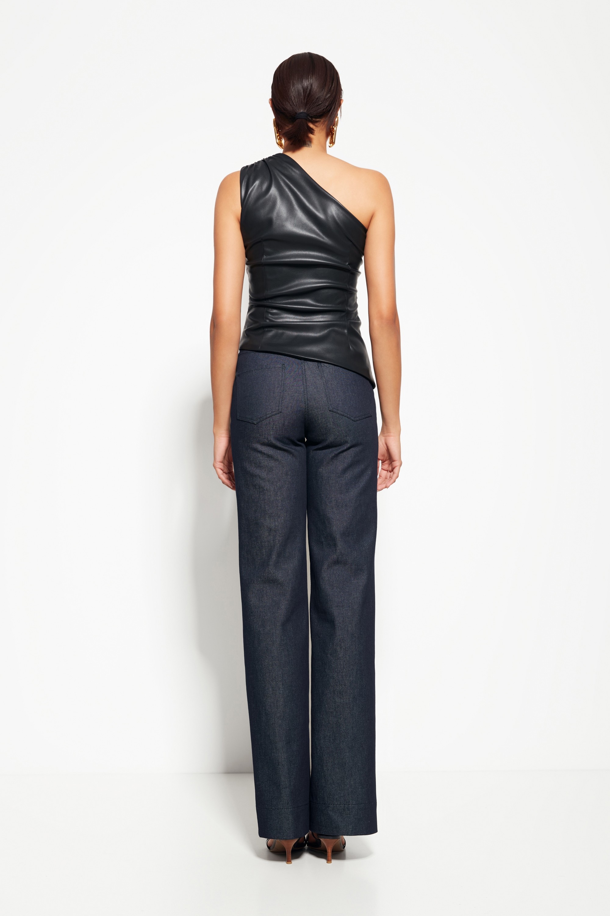 Блуза Lakbi 55305: эко-кожа, одно плечо — смелый акцент для вечернего образа.