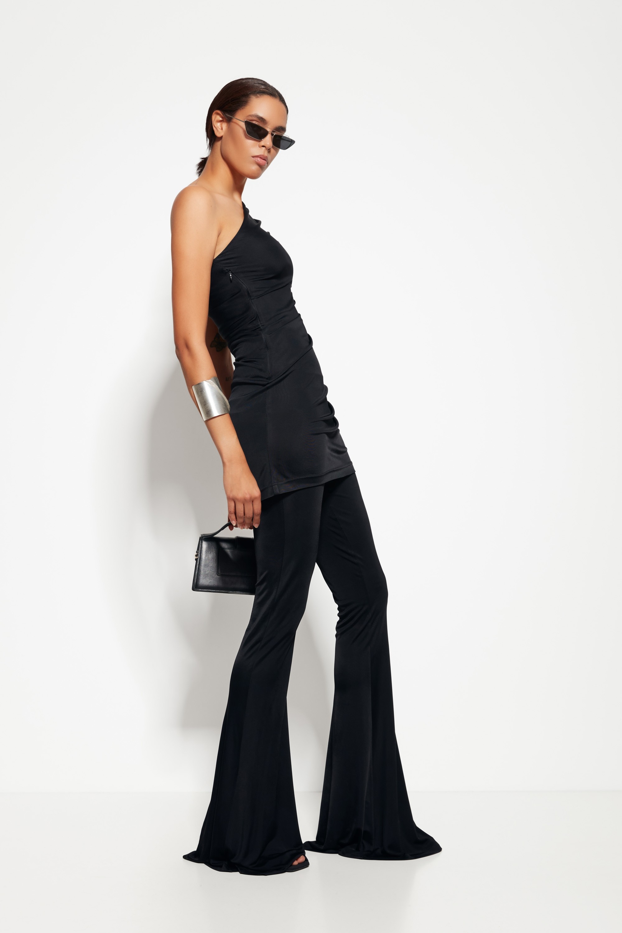 Модель из коллекции Party 2026 — брюки из струящейся ткани с прилегающим верхом и эффектным клёшем от колена, создающие выразительный и современный образ.