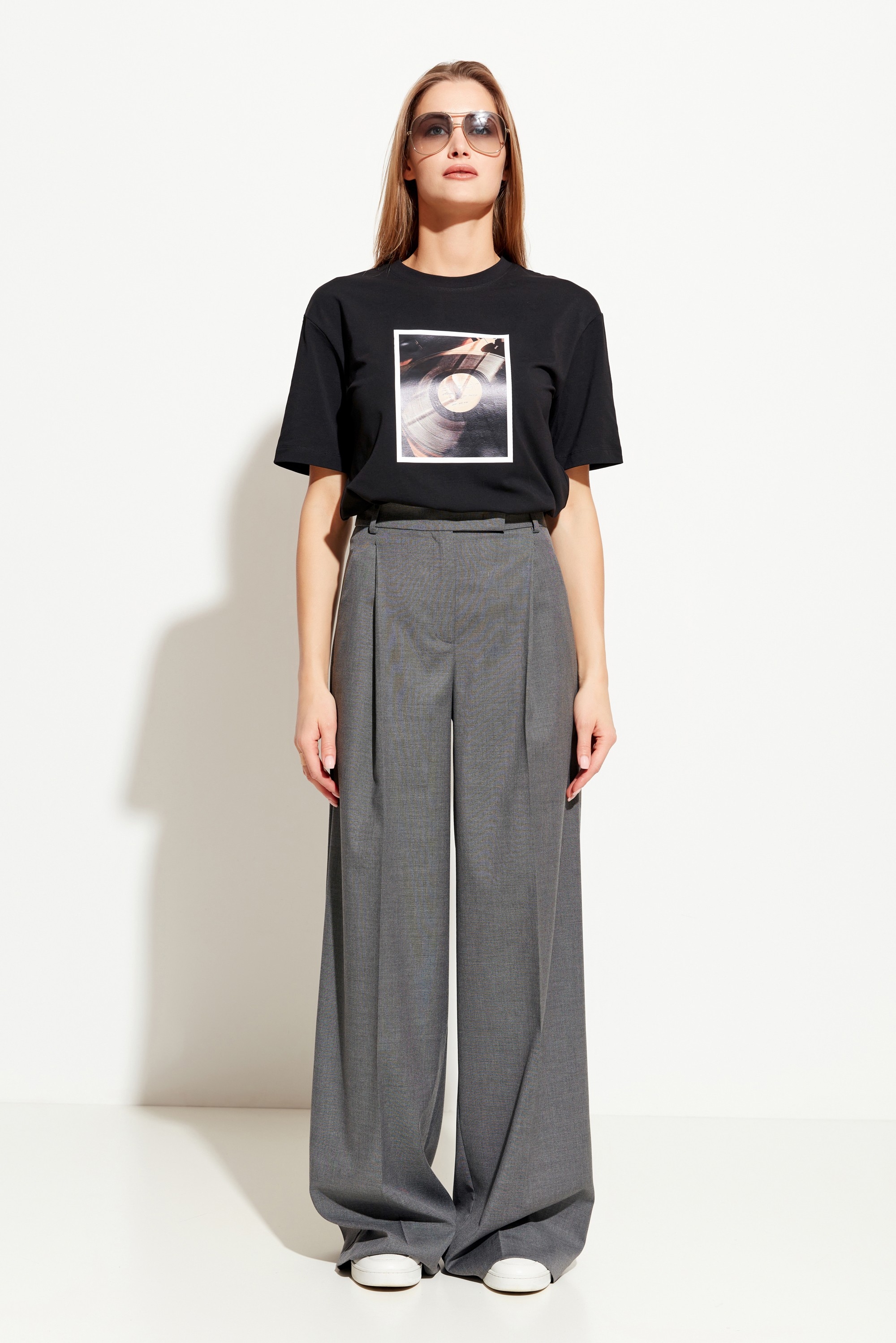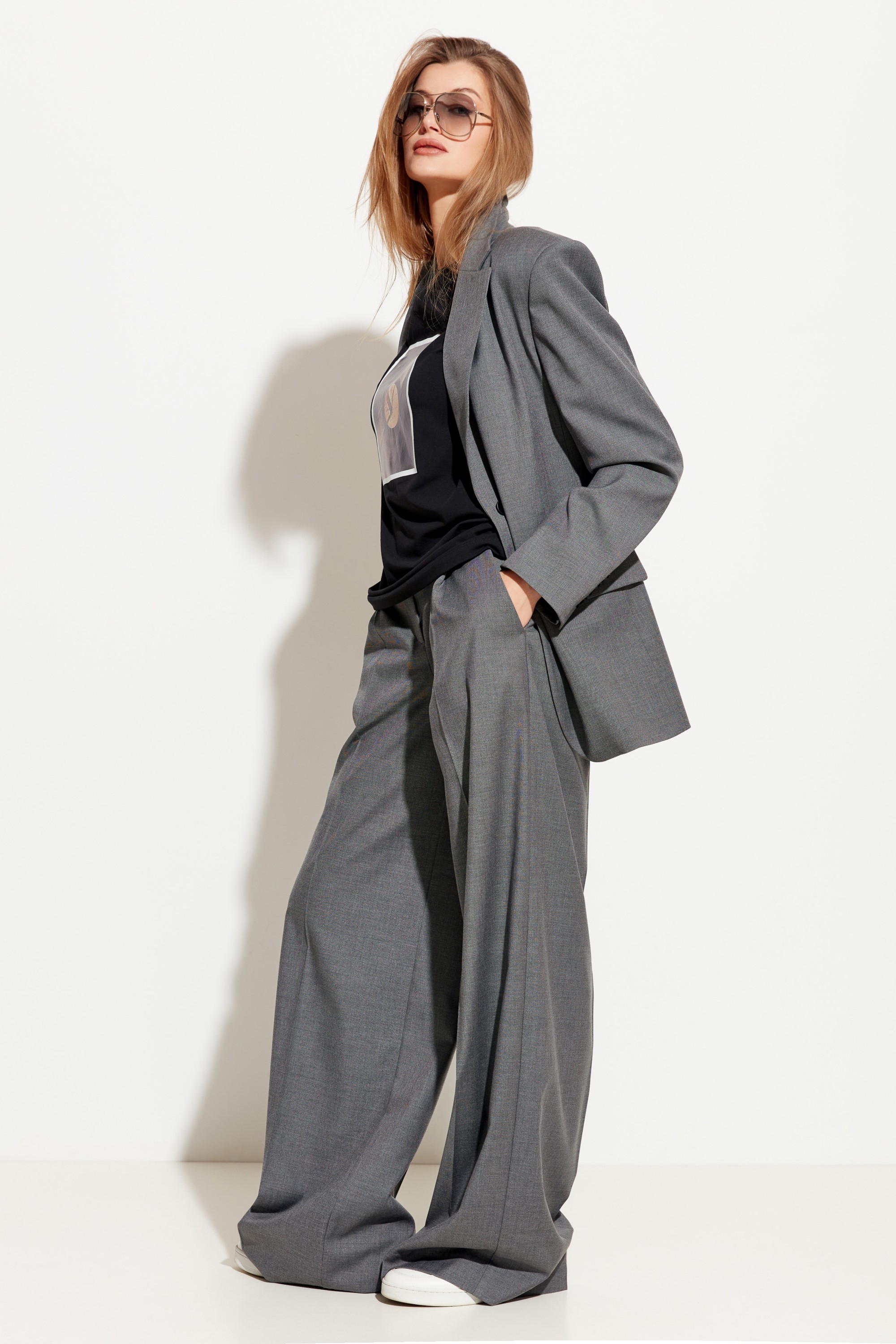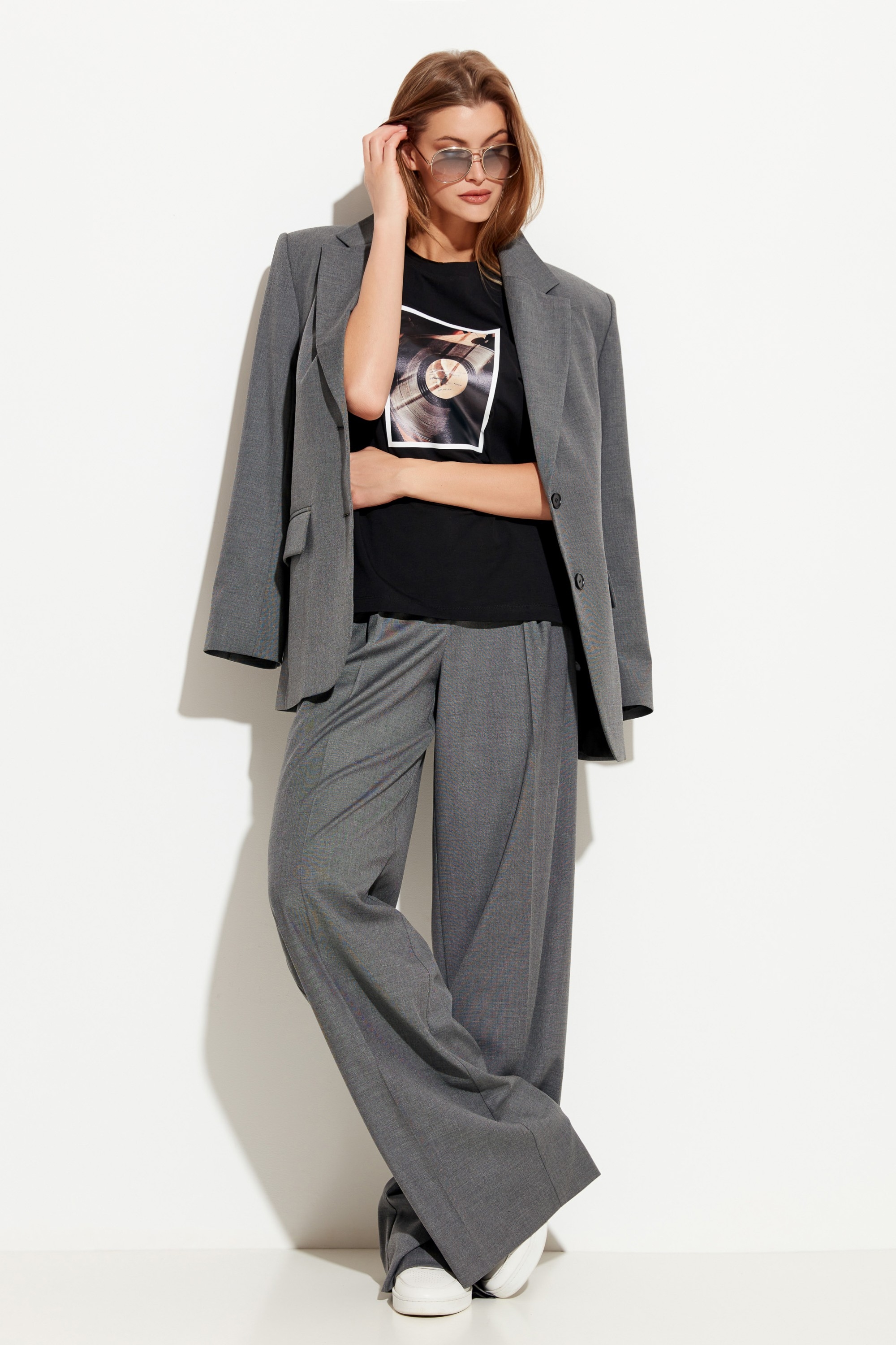 Состав: 68% ПЭ, 29% вискоза, 3% спандекс. Брюки полуприлегающего силуэта, расширенные от линии бедер к низу. Посадка изделия высокая. По бокам обрезные карманы. Передняя часть с заутюженными кантами. Классическая, универсальная модель, которая подойдет для создания эффектных образов по любому случаю. Ширина по линии талии 36.2(42р) 38.3(44р) 40.4(46р) 42.4(48р) Ширина изделия по бедрам 54.4(42р) 56.4(44р) 58.4(46р) 60.4(48р) Длина бокового шва 114.3(42р) 114.5(44р) 114.6(46р) 114.8(48р) Длина шагового шва 84.4(42р) 84.2(44р) 84.0(46р) 83.8(48р)
