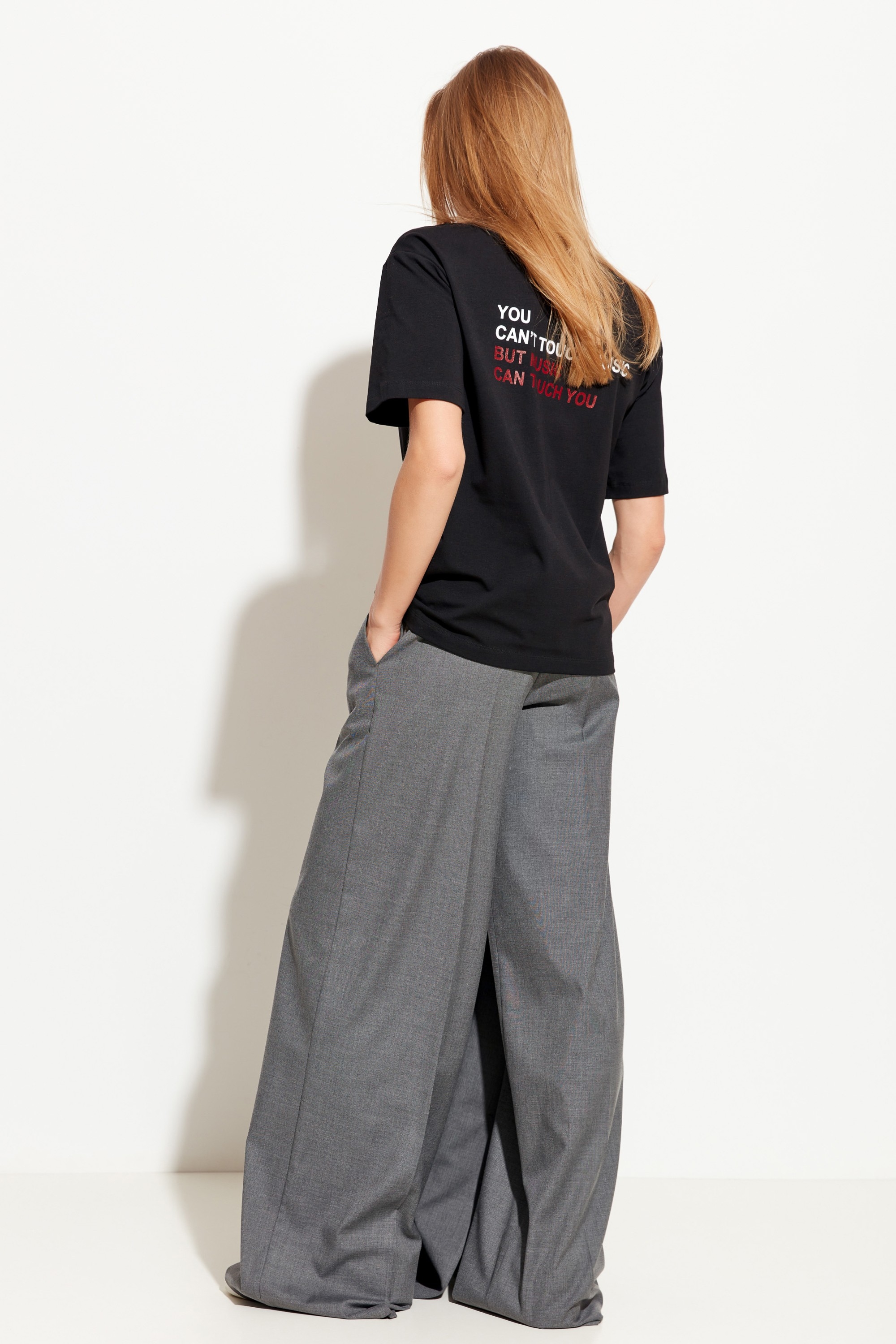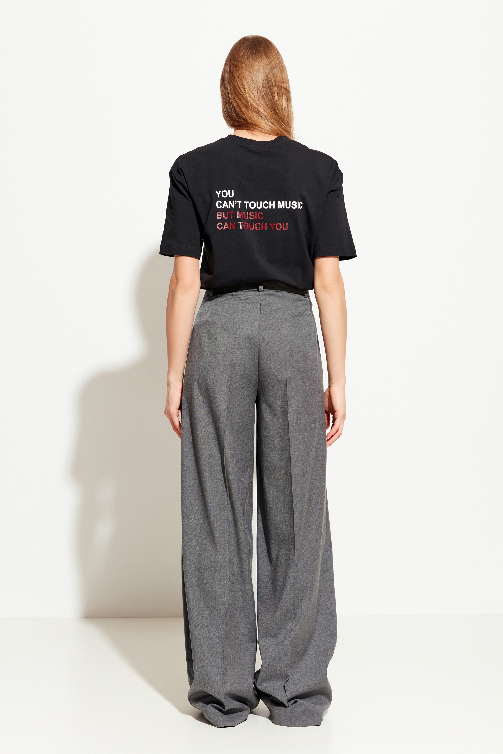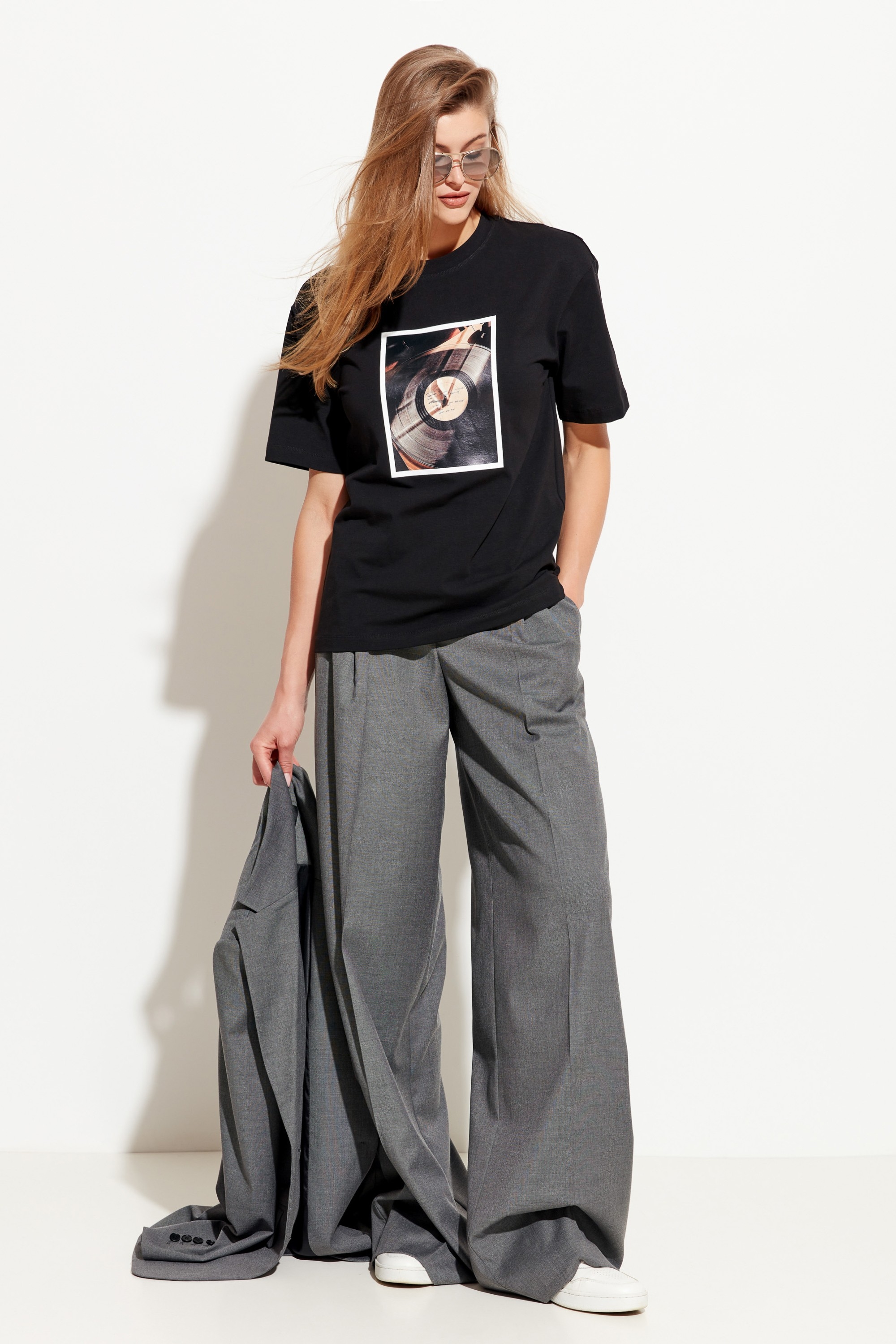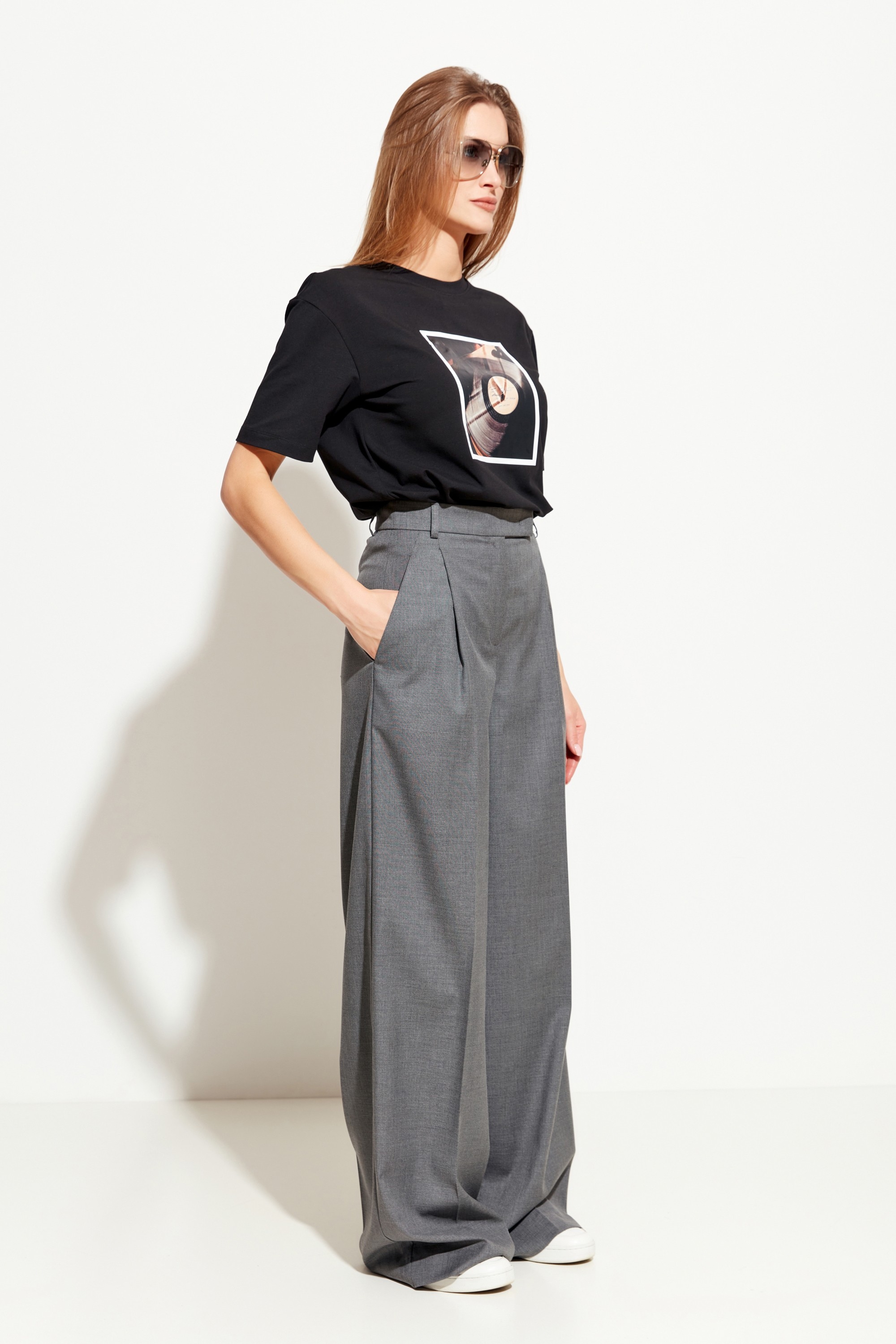 Состав: 68% ПЭ, 29% вискоза, 3% спандекс. Брюки полуприлегающего силуэта, расширенные от линии бедер к низу. Посадка изделия высокая. По бокам обрезные карманы. Передняя часть с заутюженными кантами. Классическая, универсальная модель, которая подойдет для создания эффектных образов по любому случаю. Ширина по линии талии 36.2(42р) 38.3(44р) 40.4(46р) 42.4(48р) Ширина изделия по бедрам 54.4(42р) 56.4(44р) 58.4(46р) 60.4(48р) Длина бокового шва 114.3(42р) 114.5(44р) 114.6(46р) 114.8(48р) Длина шагового шва 84.4(42р) 84.2(44р) 84.0(46р) 83.8(48р)