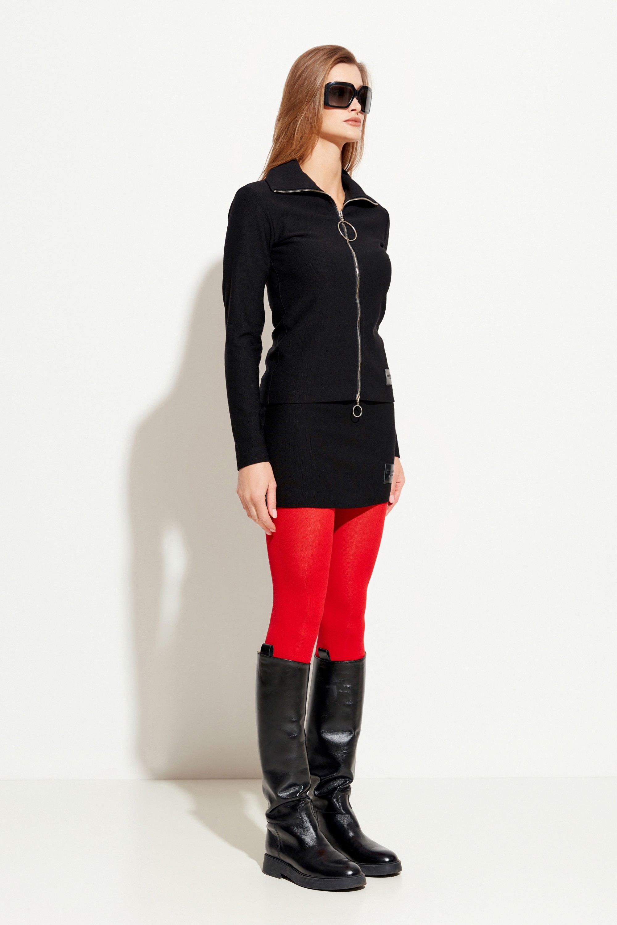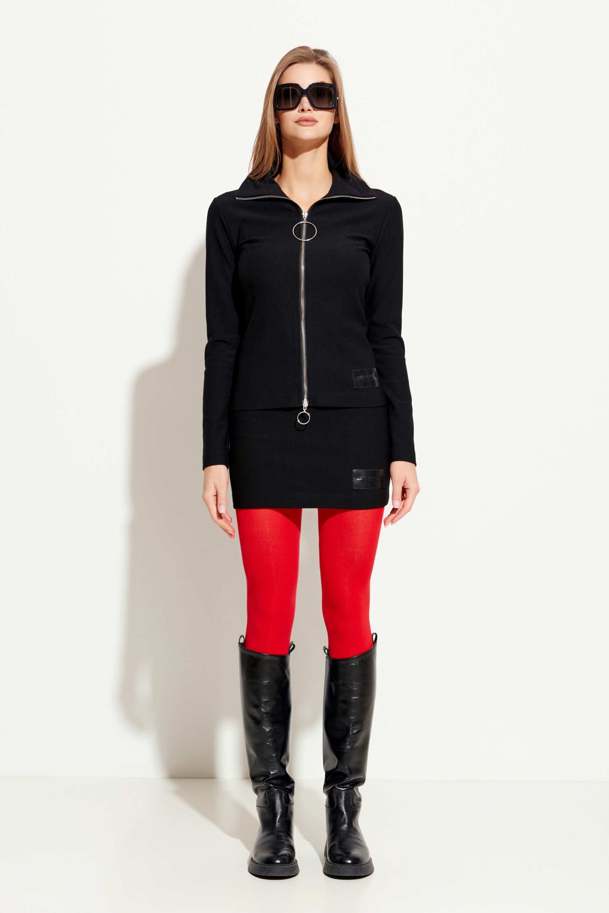 Джемпер прилегающего силуэта, длиной до середины линии бедер. Воротник отложной. Изделие застегивается на акцентную металлическую молнию. Длинные, узкие рукава. Передняя часть декорирована нашивкой. Универсальная модель, которая подойдет к любому типу гардероба и станет незаменимым помощником в создании стильных ежедневных образов.